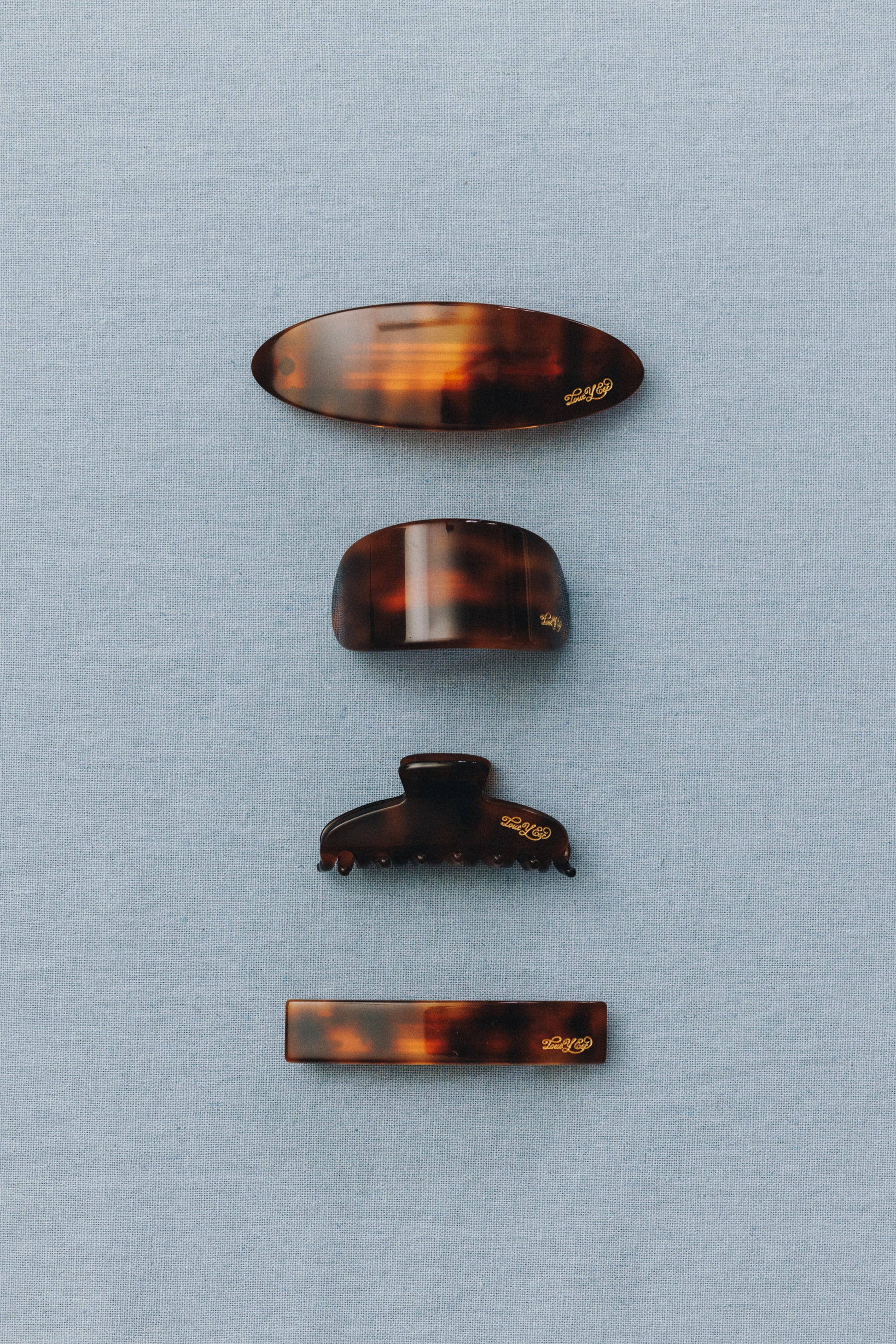 コレクションは、バレッタ・ヘアバンド・クリップなど、さまざまな形とサイズで構成されており、各スタイルはブラック・ブラウン・レオパードの3色展開となっております。