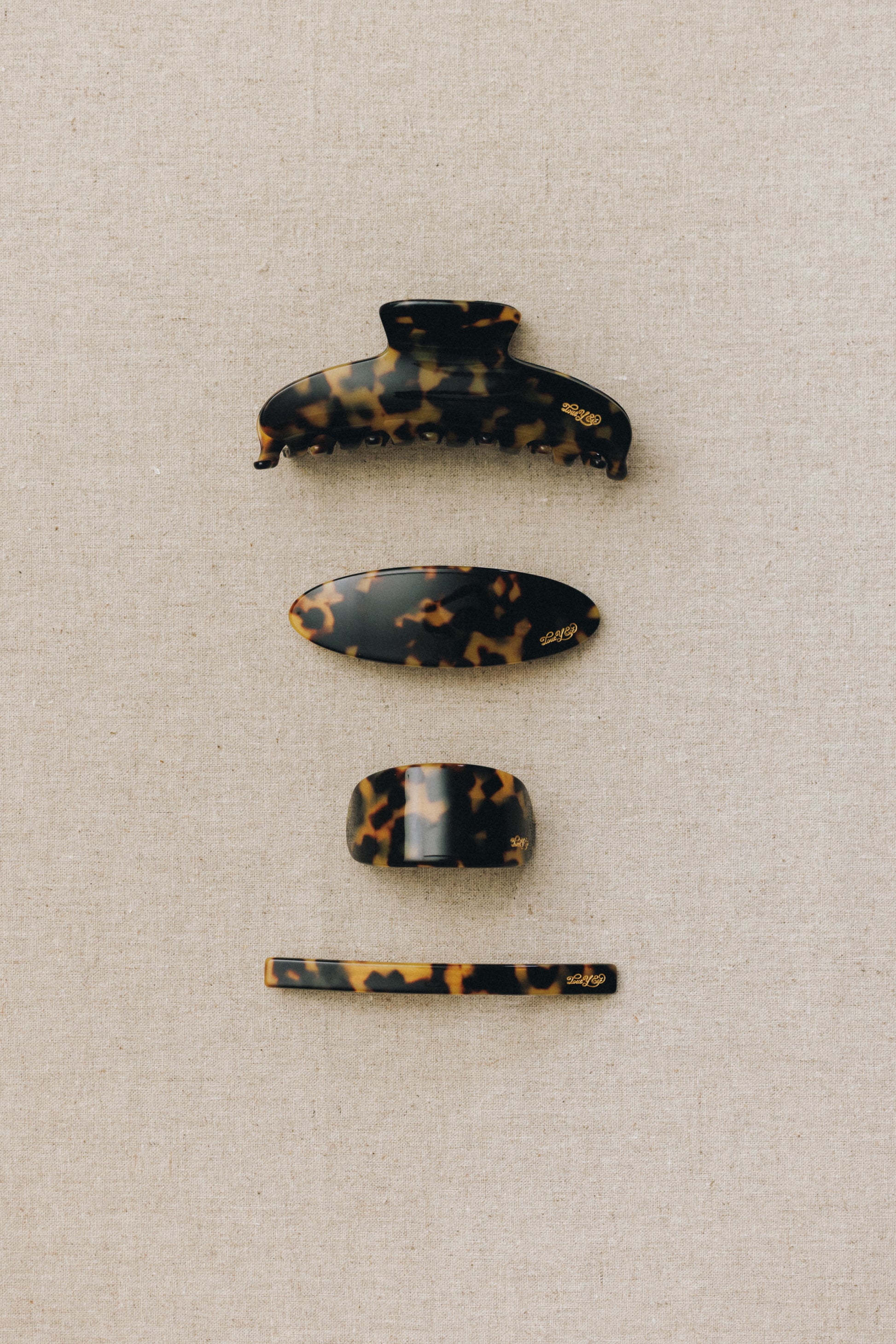 コレクションは、バレッタ・ヘアバンド・クリップなど、さまざまな形とサイズで構成されており、各スタイルはブラック・ブラウン・レオパードの3色展開となっております。