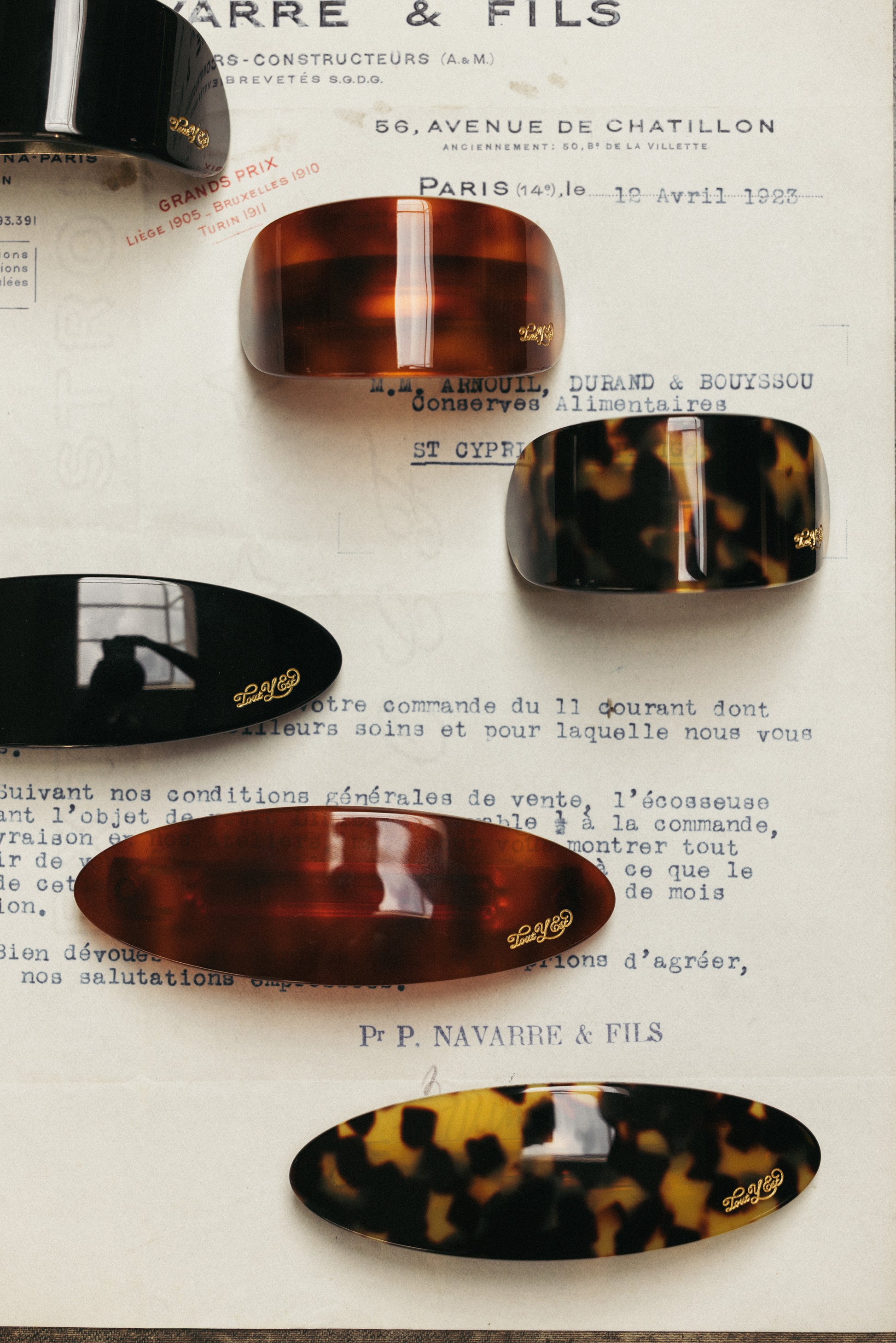 本コレクションは「アセテートの街」として知られるフランス・オヨナ(Oyonnax)で生産されたプレミアムアセテートを使用し、現地で丁寧に製作されました。 オヨナは19世紀後半より、角やセルロイド、アセテートを扱いながら眼鏡やアクセサリー産業を発展させてきた地域であり、繊細な成形技術と完璧な仕上げによって世界的な評価を得ています。