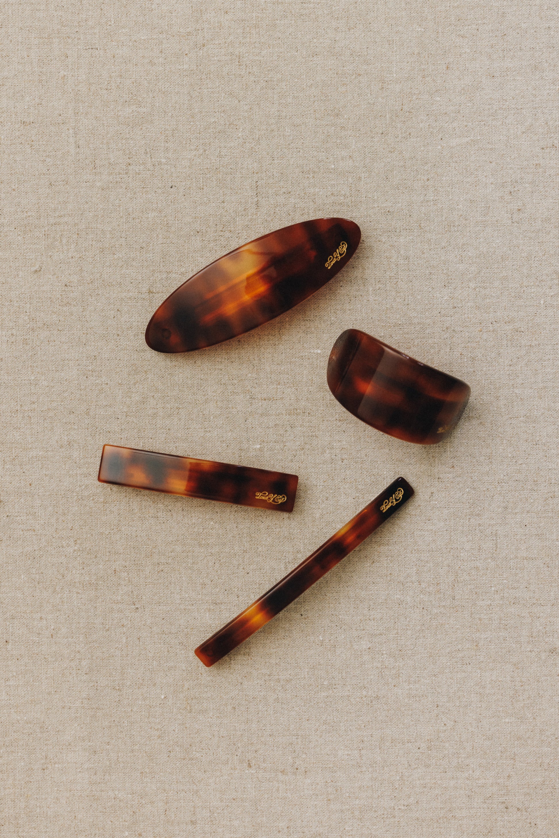 コレクションは、バレッタ・ヘアバンド・クリップなど、さまざまな形とサイズで構成されており、各スタイルはブラック・ブラウン・レオパードの3色展開となっております。