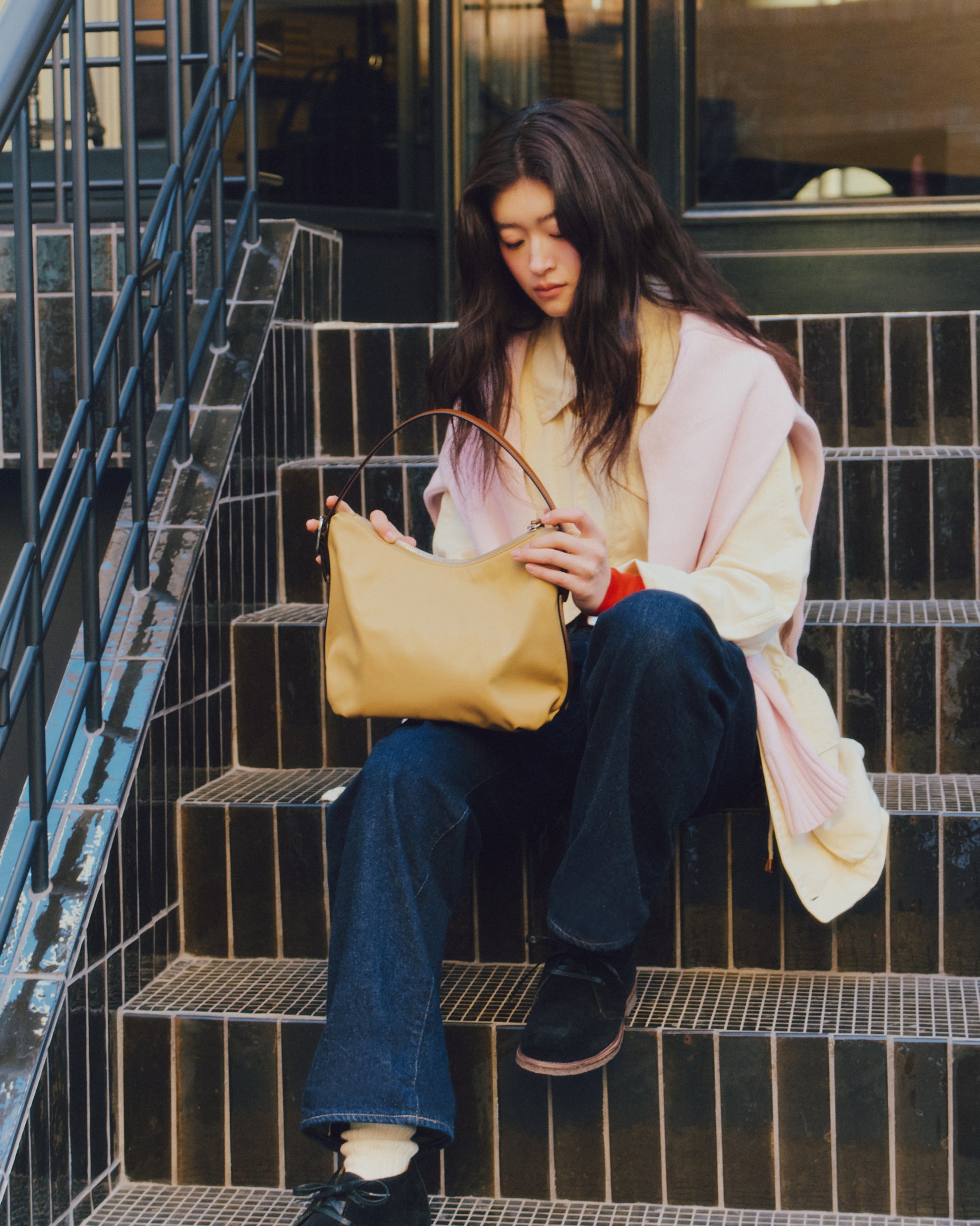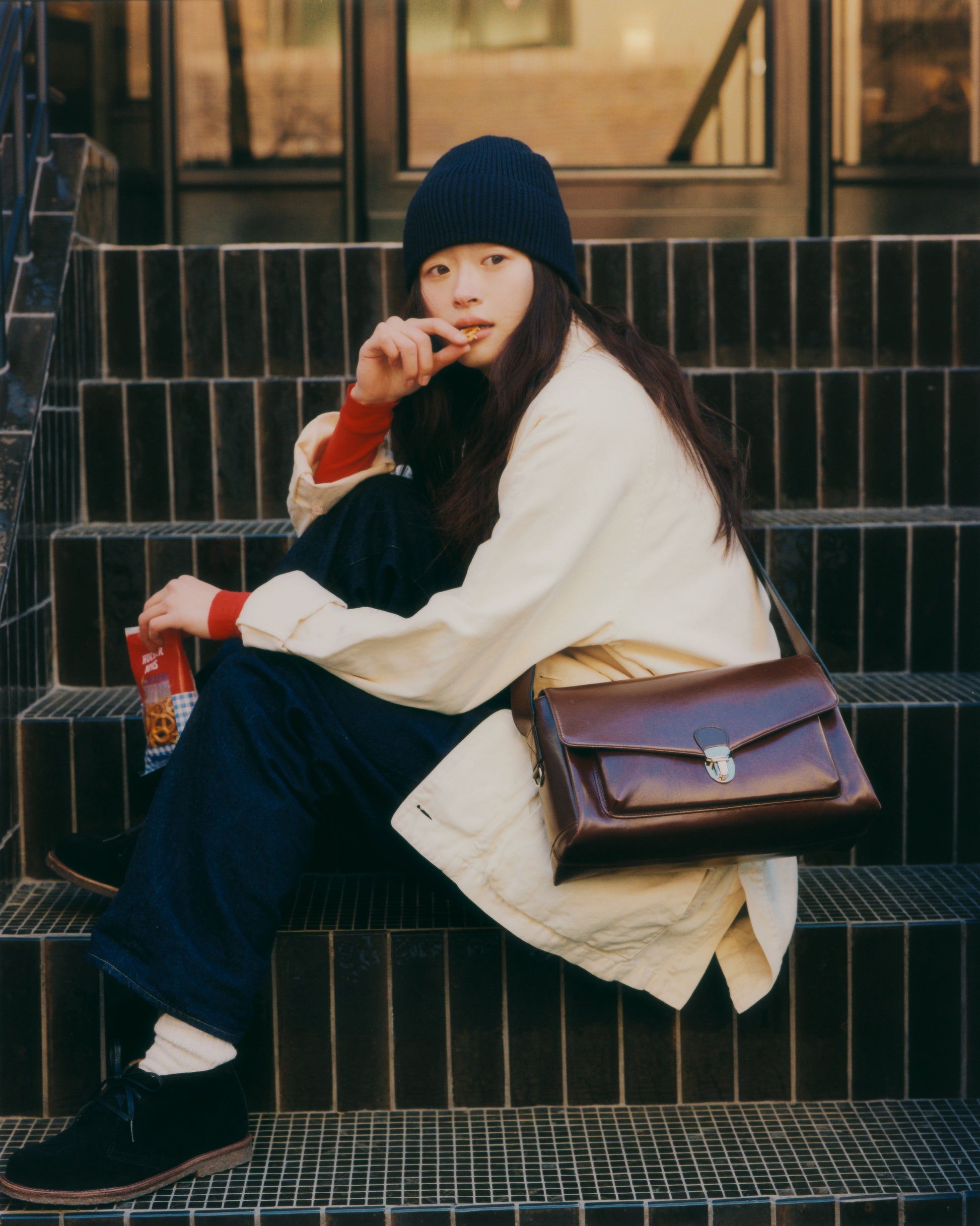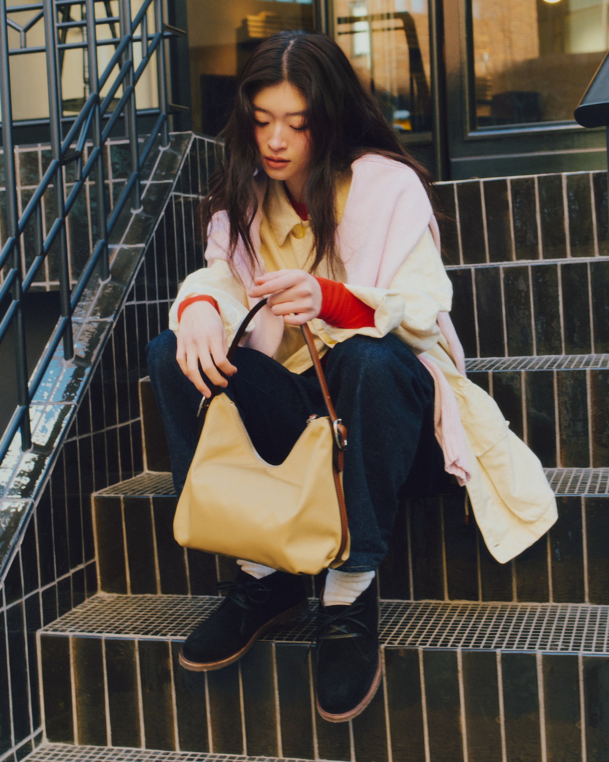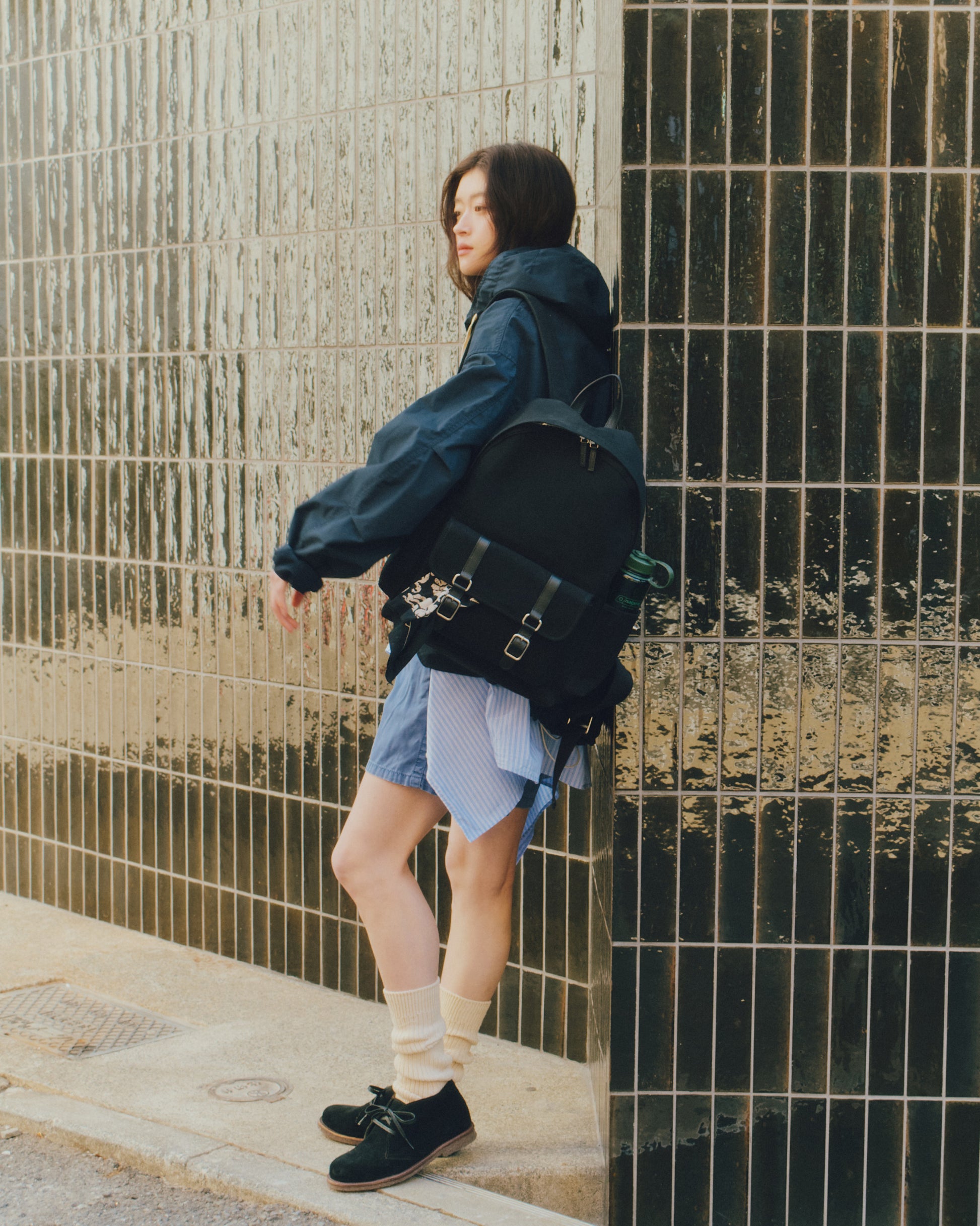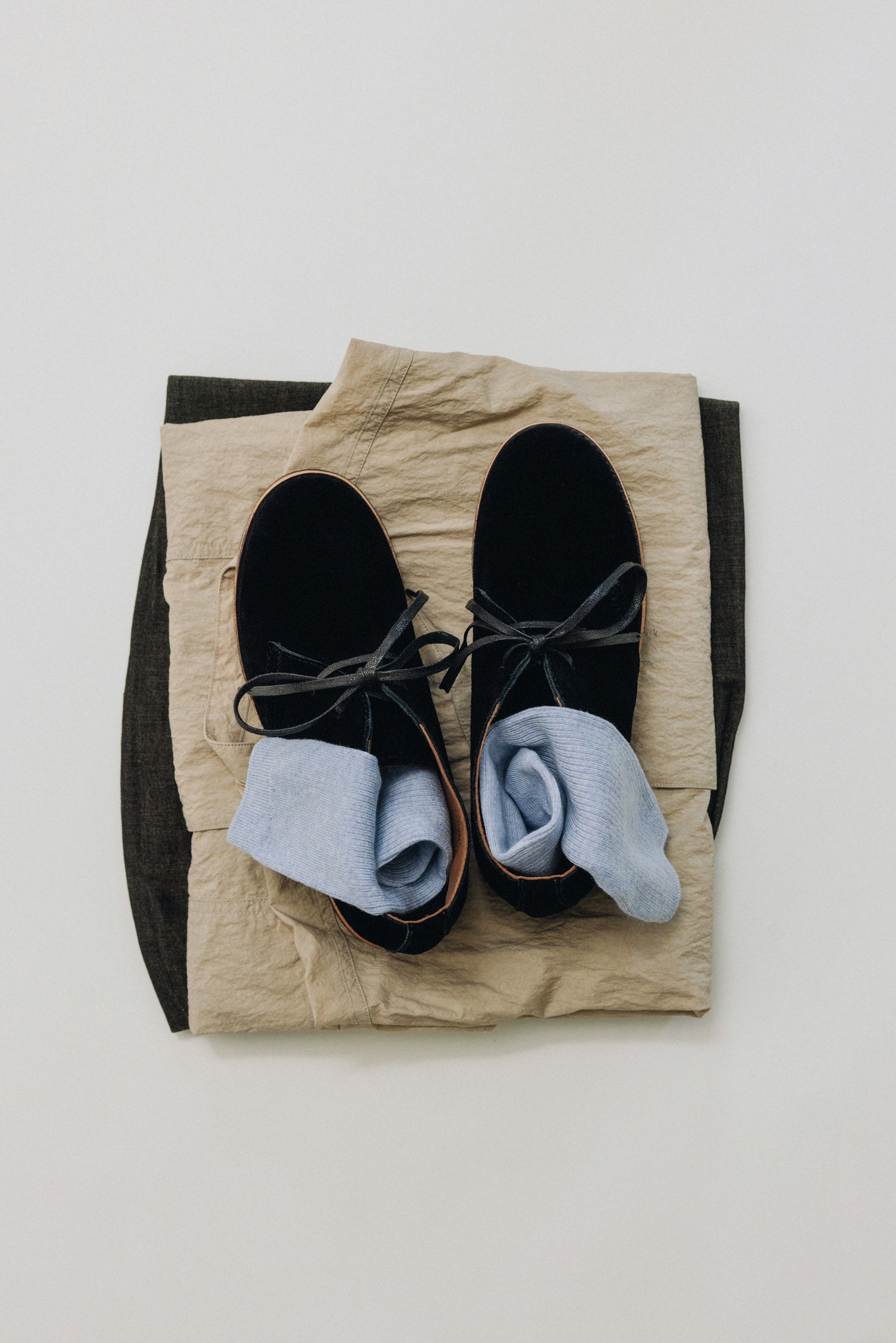 ステッチを活かした構造がフォルムを安定させ、ワックスコーティングシューレースで結ぶ仕様が、端正さと程よい抜け感のあるシルエットを生み出します。