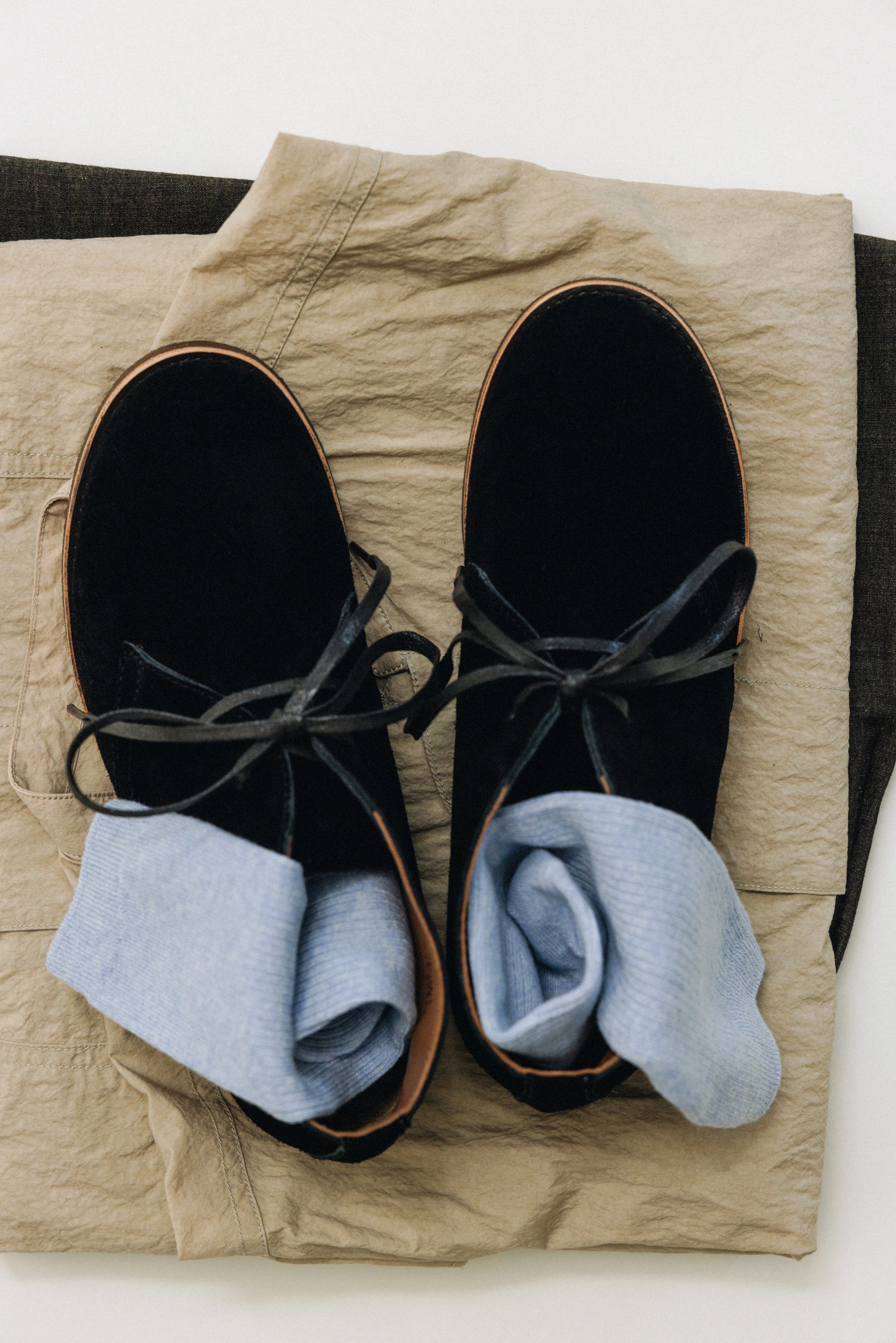 ライニングには柔らかな牛革を使用し、履くほどに足に馴染んでいきます。クレープソールは安定感のある快適な履き心地を支えます。