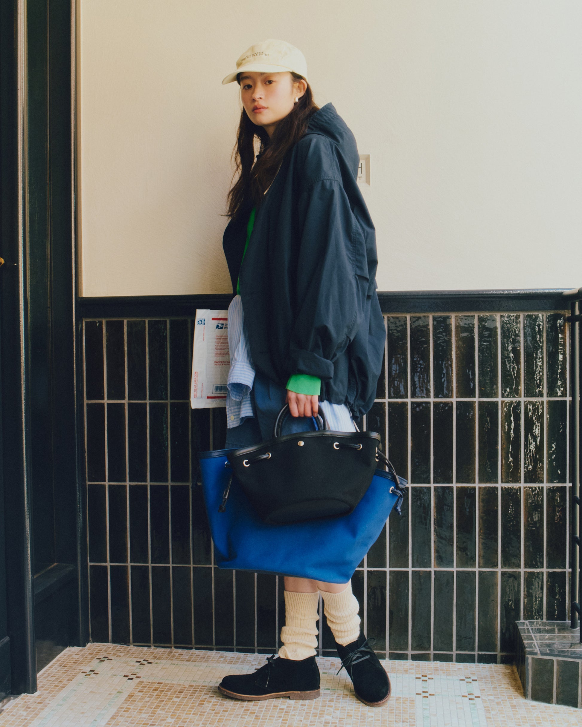 • 素材の特性上、色移りや色落ちが発生する場合があります。明るい色の衣類との着用にはご注意ください。