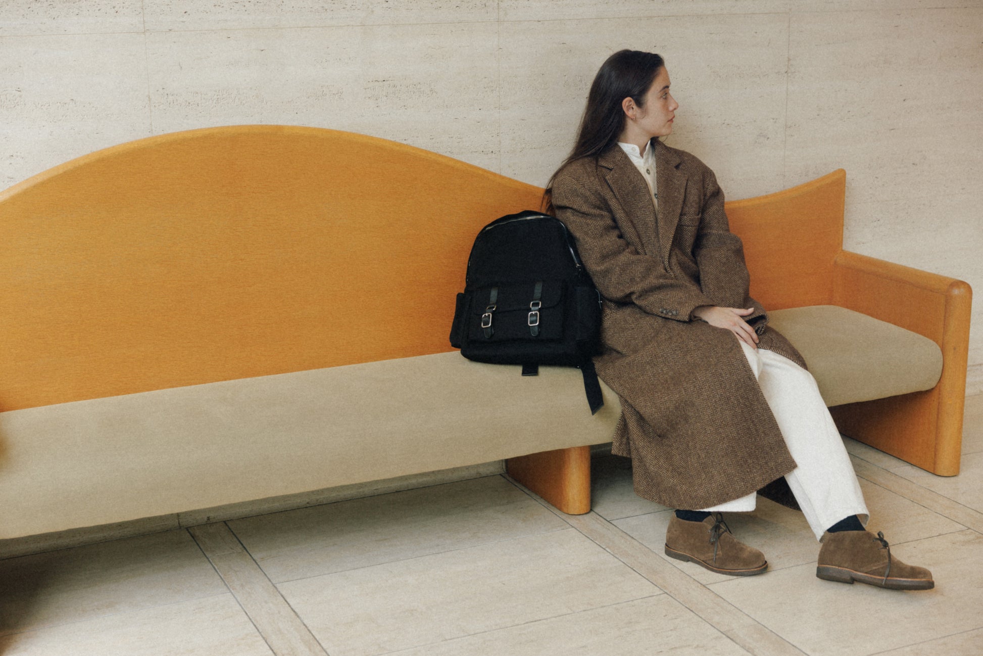 ステッチを活かした構造がフォルムを安定させ、ワックスコーティングシューレースで結ぶ仕様が、端正さと程よい抜け感のあるシルエットを生み出します。