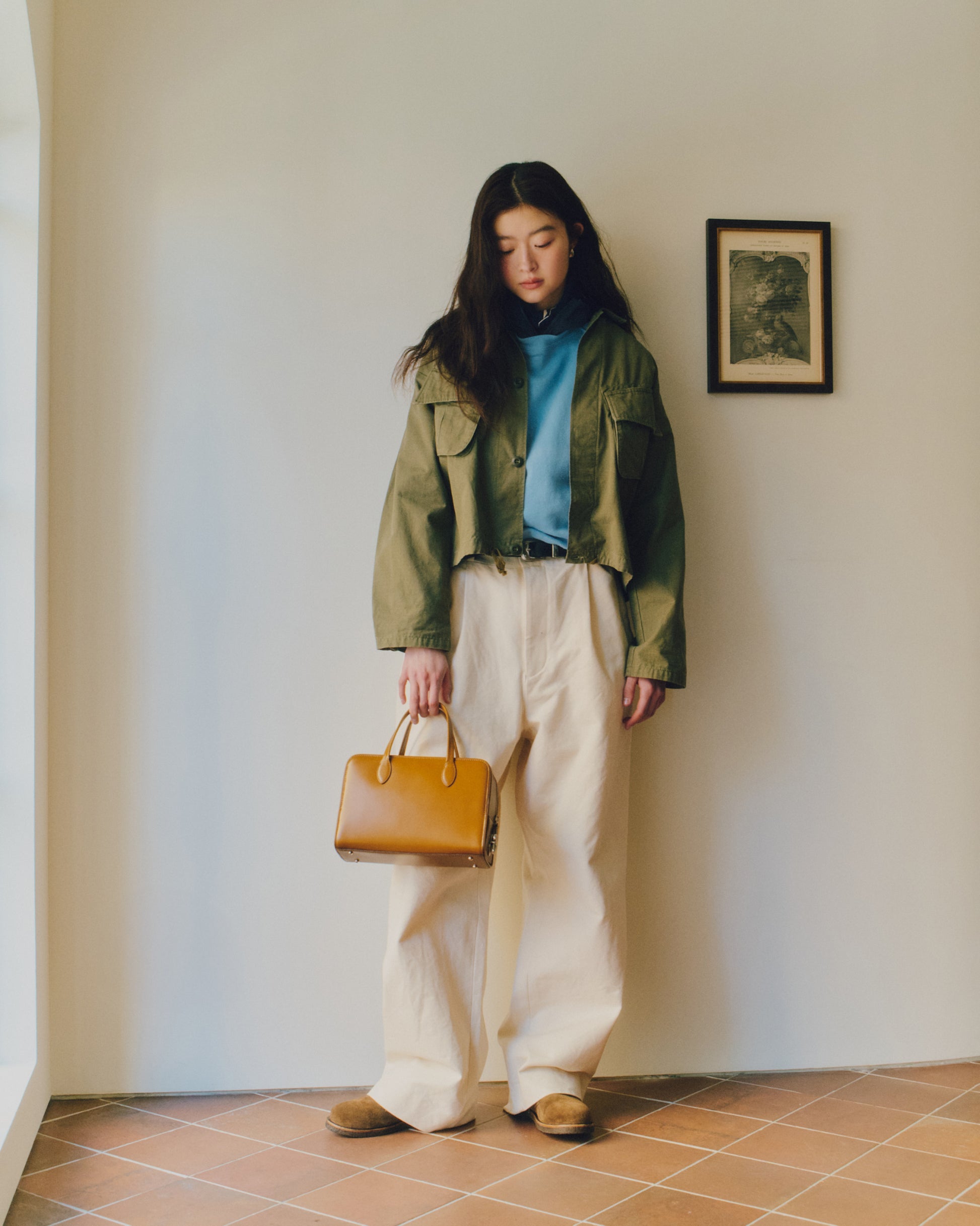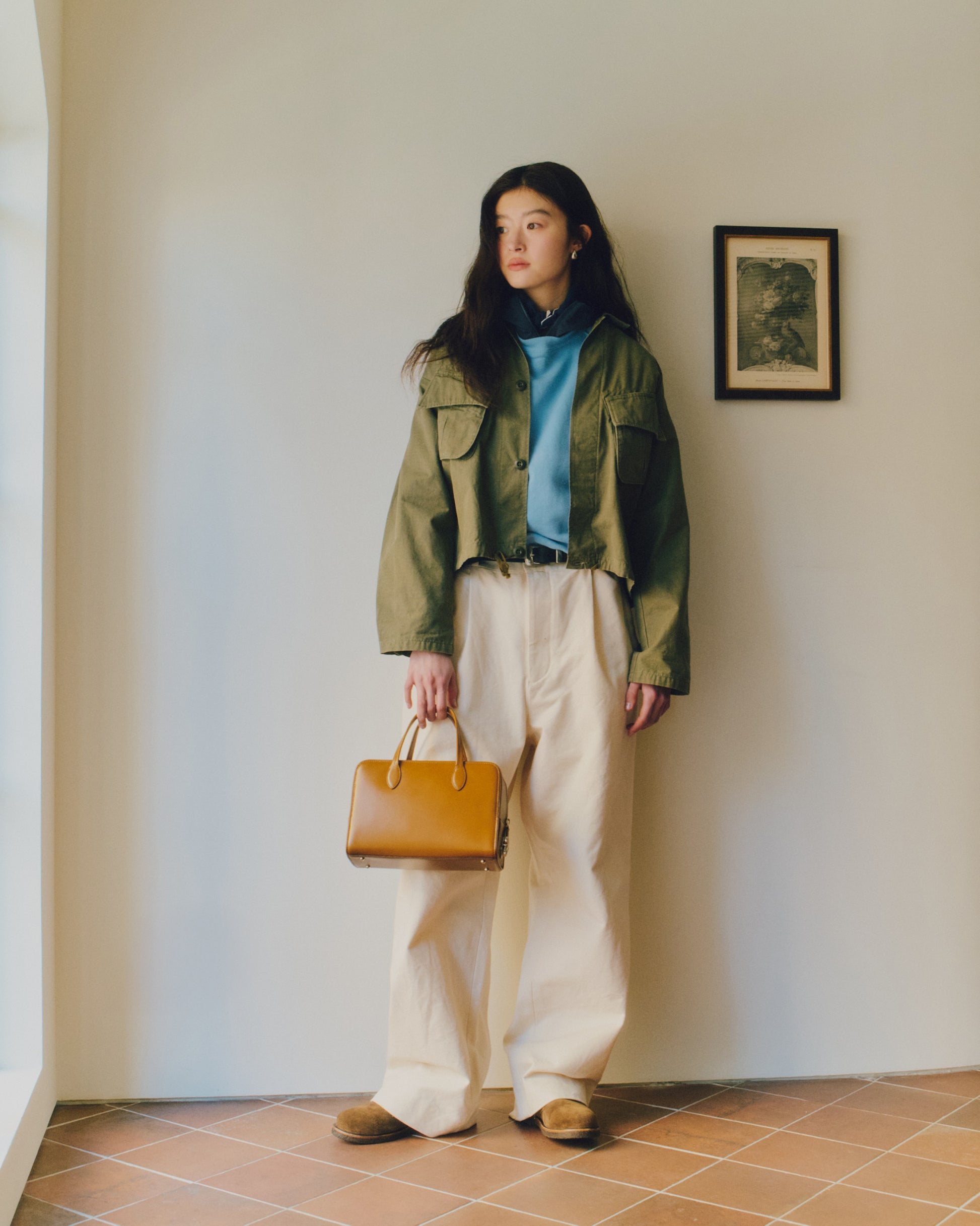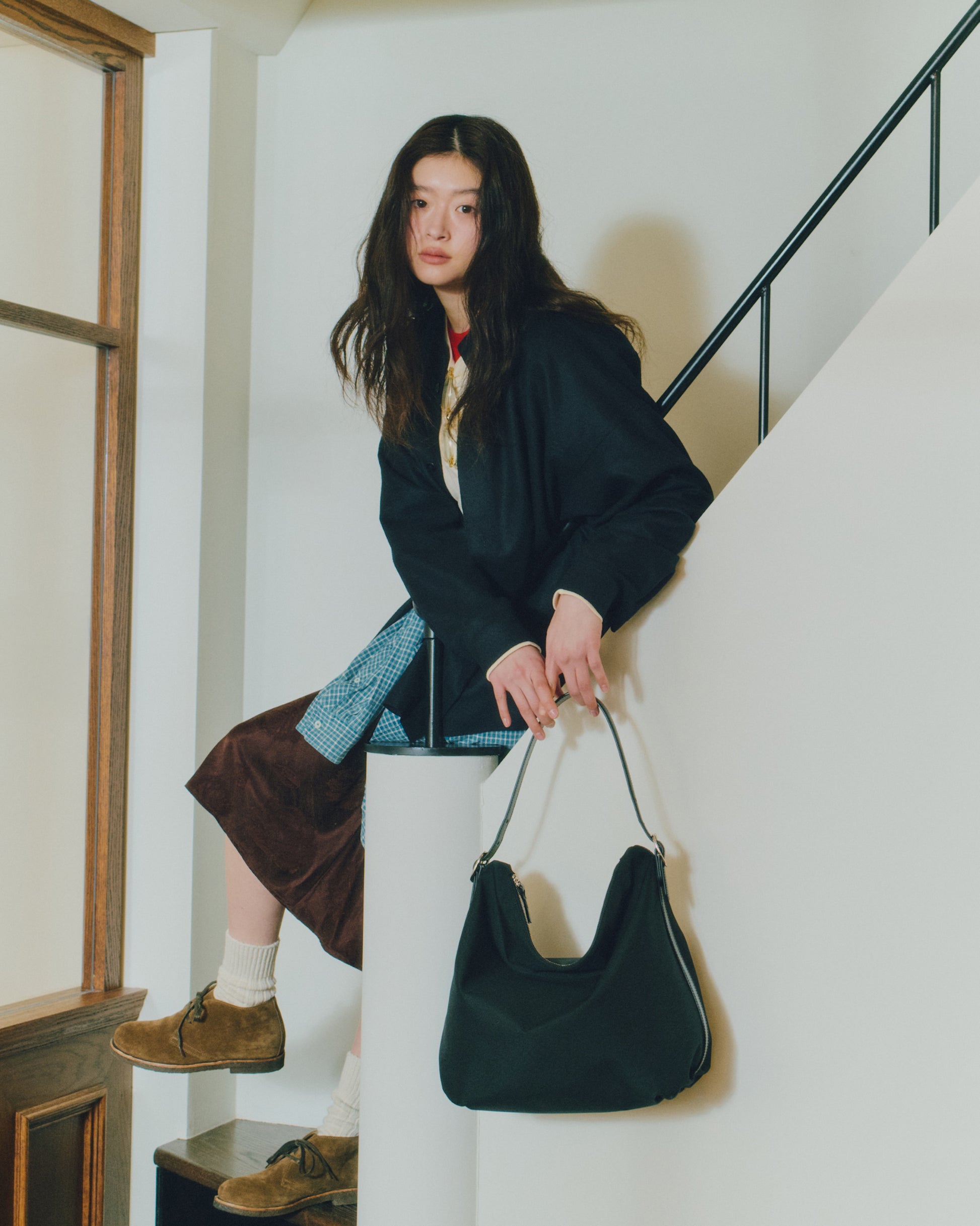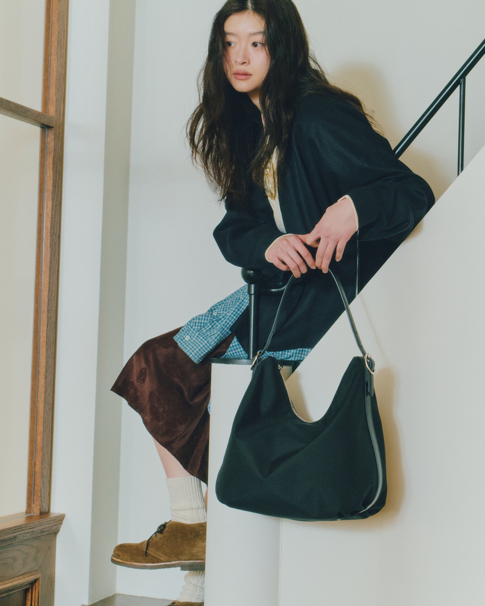 スエードの牛革を使用し、革の表情に応じて色味がほのかに変化する、奥行きのある質感が特徴です。