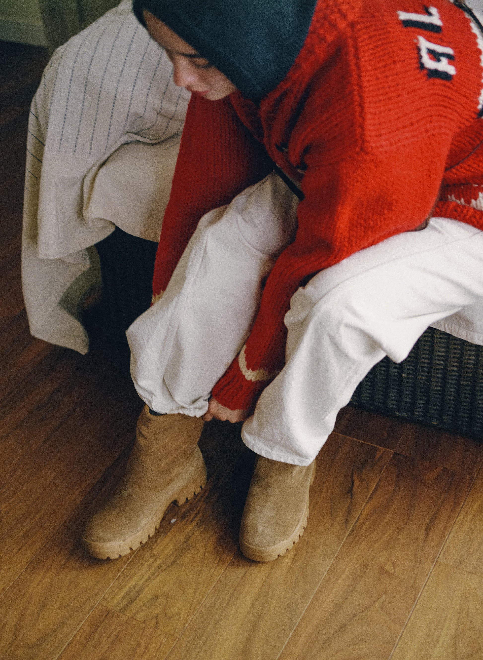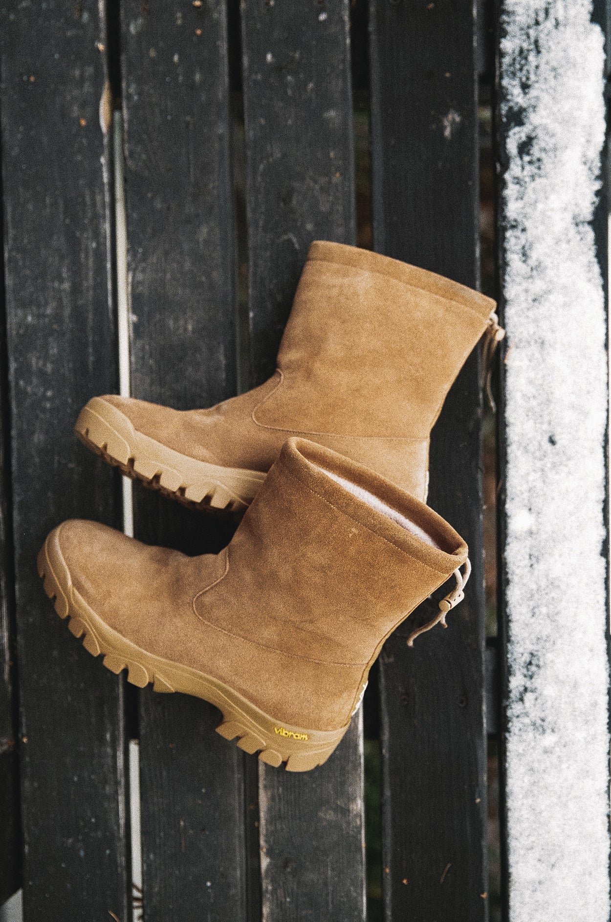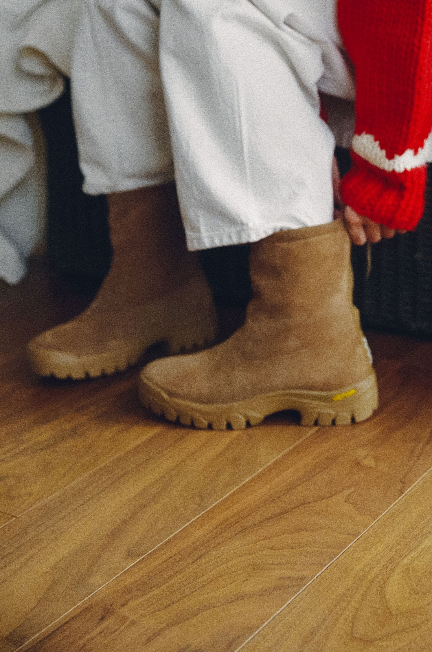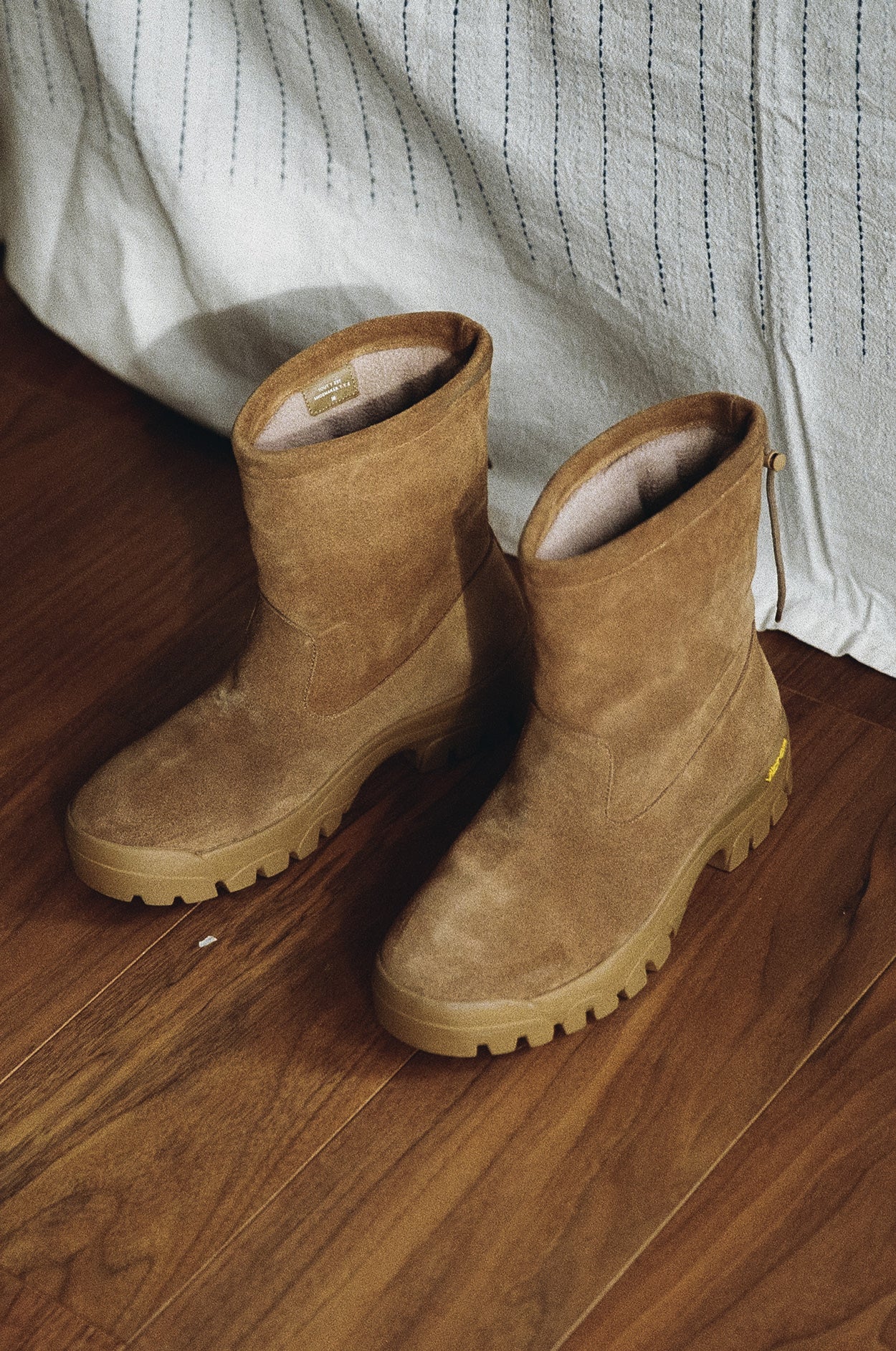 保温性とディテールが引き立つマソット ブーツは冬の様々な環境で信頼できるスノーブーツです。 柔らかくしなやかなスエードの革で製作され、足を柔らかく包み込むほど快適さを増し、目や雨に強い特性で実用性を兼ね備えています。 表地のスエードと裏地のフランネルの間には、シンシュレートという機能性保温素材が層を成しており、軽くて優れた断熱効果を提供し、真冬でも足を暖かく保ちます。 後軸にはコードロックドローストリングを適用し、足首に合わせて締めることができ、繊細なステッチディテールが加わってデザイン的完成度を高めました。 靴の底から足首まで全体を温かく包み込むフランネル裏地は保温性と柔らかさを提供し、ビブラムソールは滑りを防止して雪道でも安定した履き心地をお届けします。 マソット ブーツは機能性とデザインの両方を兼ね備えたスノーブーツで、寒い季節でも暖かく安定したスタイルに仕上げます。