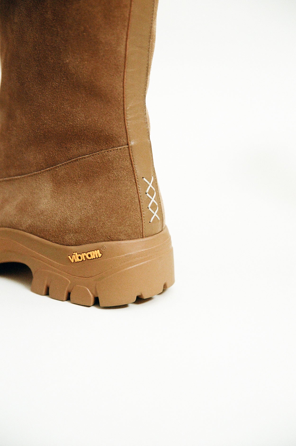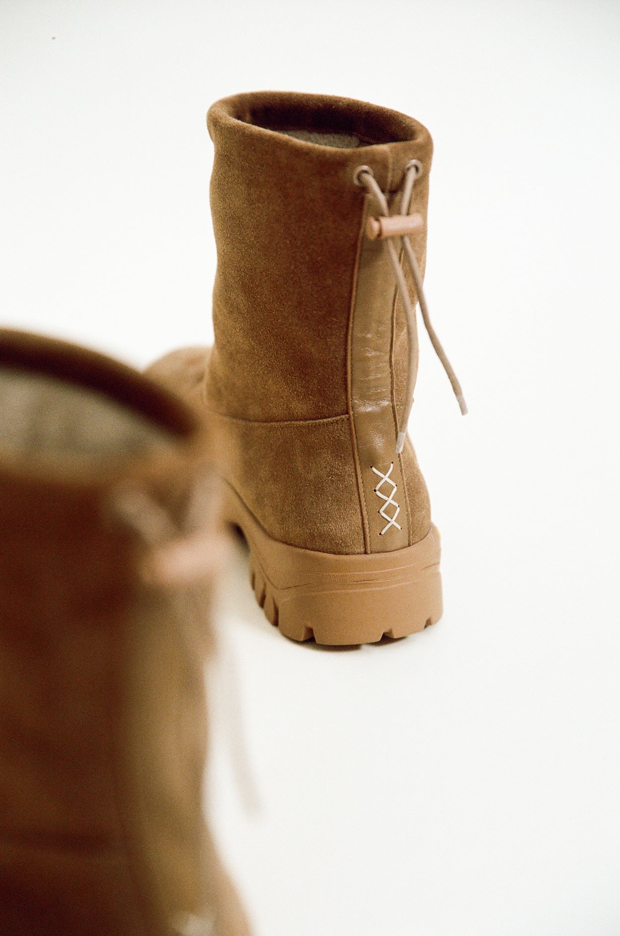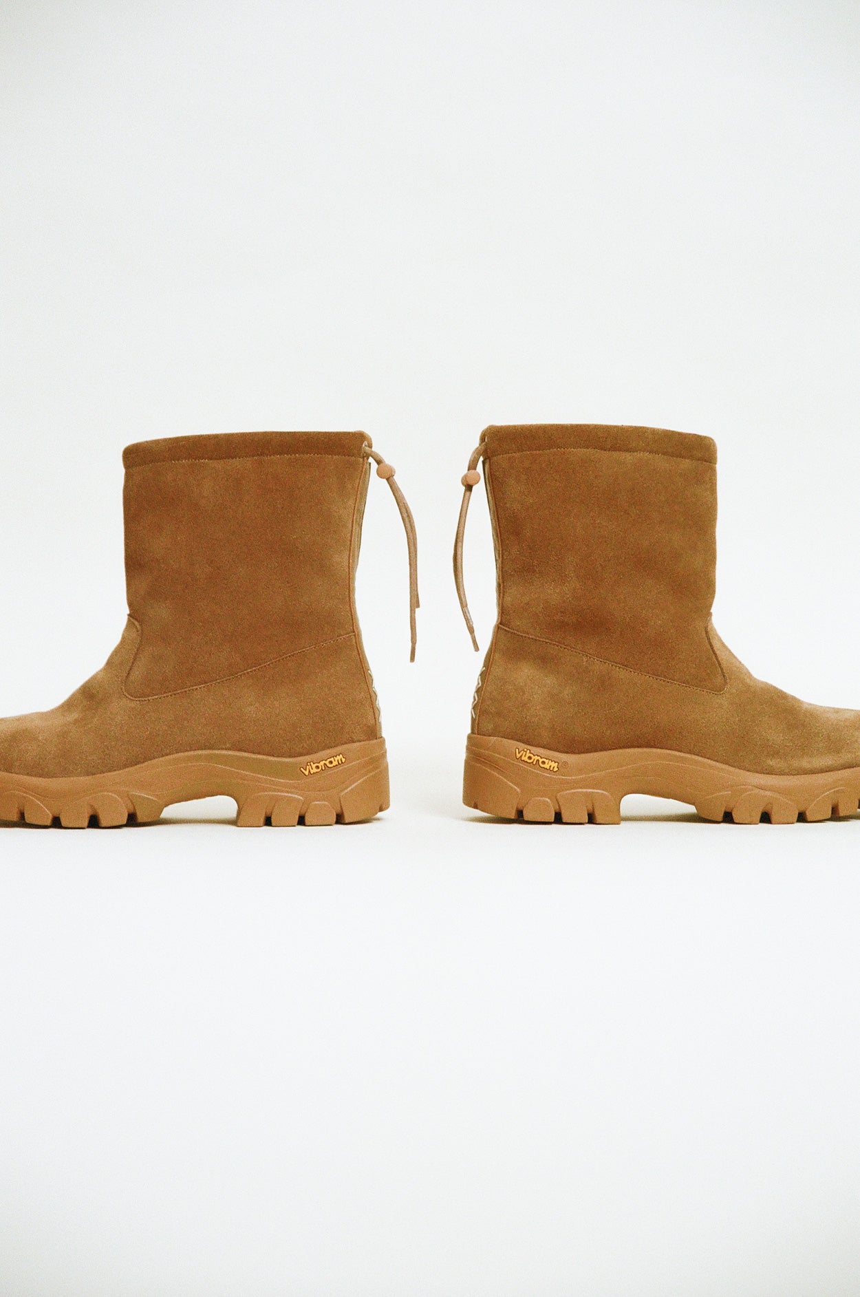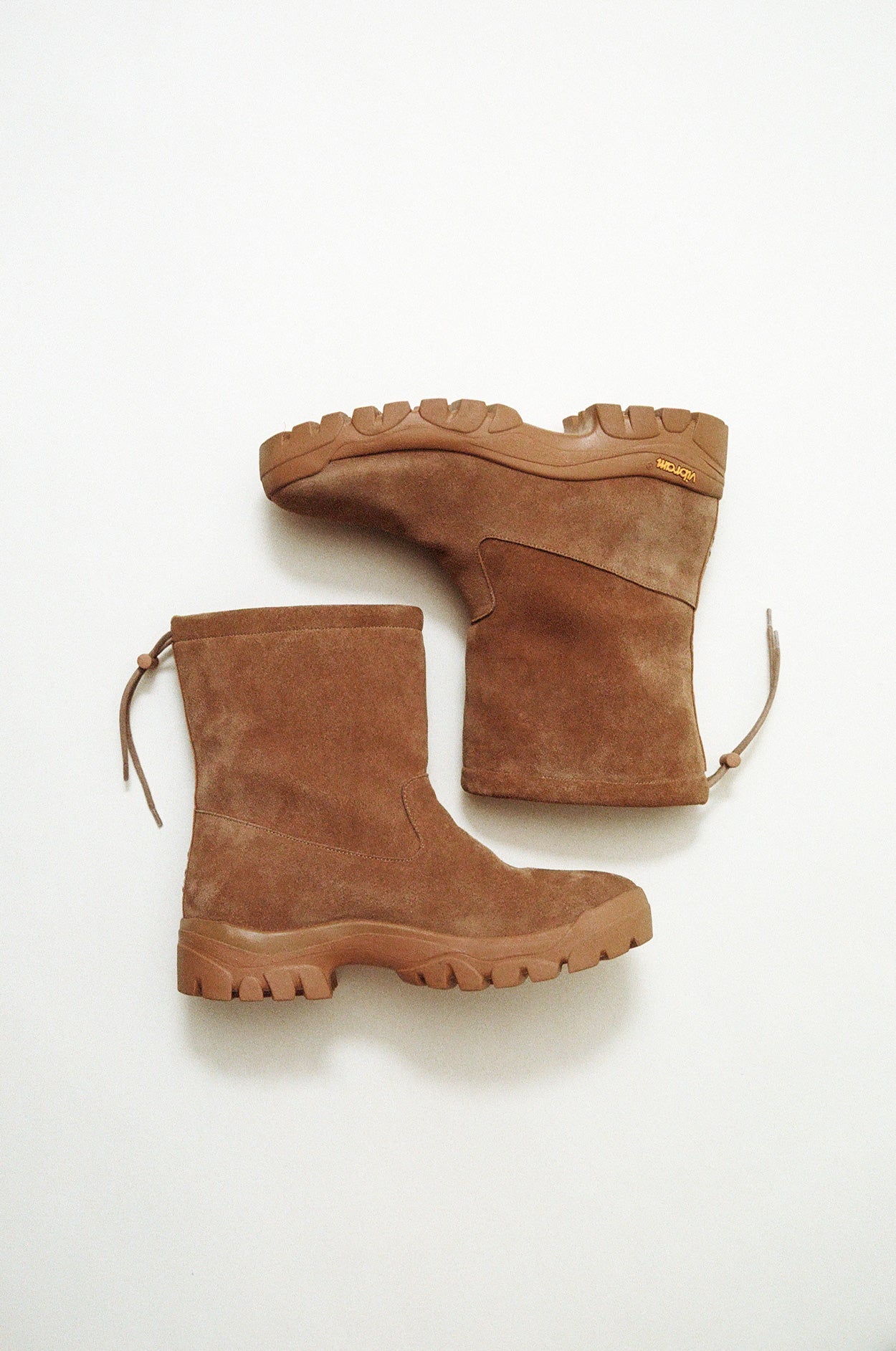 保温性とディテールが引き立つマソット ブーツは冬の様々な環境で信頼できるスノーブーツです。 柔らかくしなやかなスエードの革で製作され、足を柔らかく包み込むほど快適さを増し、目や雨に強い特性で実用性を兼ね備えています。 表地のスエードと裏地のフランネルの間には、シンシュレートという機能性保温素材が層を成しており、軽くて優れた断熱効果を提供し、真冬でも足を暖かく保ちます。 後軸にはコードロックドローストリングを適用し、足首に合わせて締めることができ、繊細なステッチディテールが加わってデザイン的完成度を高めました。 靴の底から足首まで全体を温かく包み込むフランネル裏地は保温性と柔らかさを提供し、ビブラムソールは滑りを防止して雪道でも安定した履き心地をお届けします。 マソット ブーツは機能性とデザインの両方を兼ね備えたスノーブーツで、寒い季節でも暖かく安定したスタイルに仕上げます。