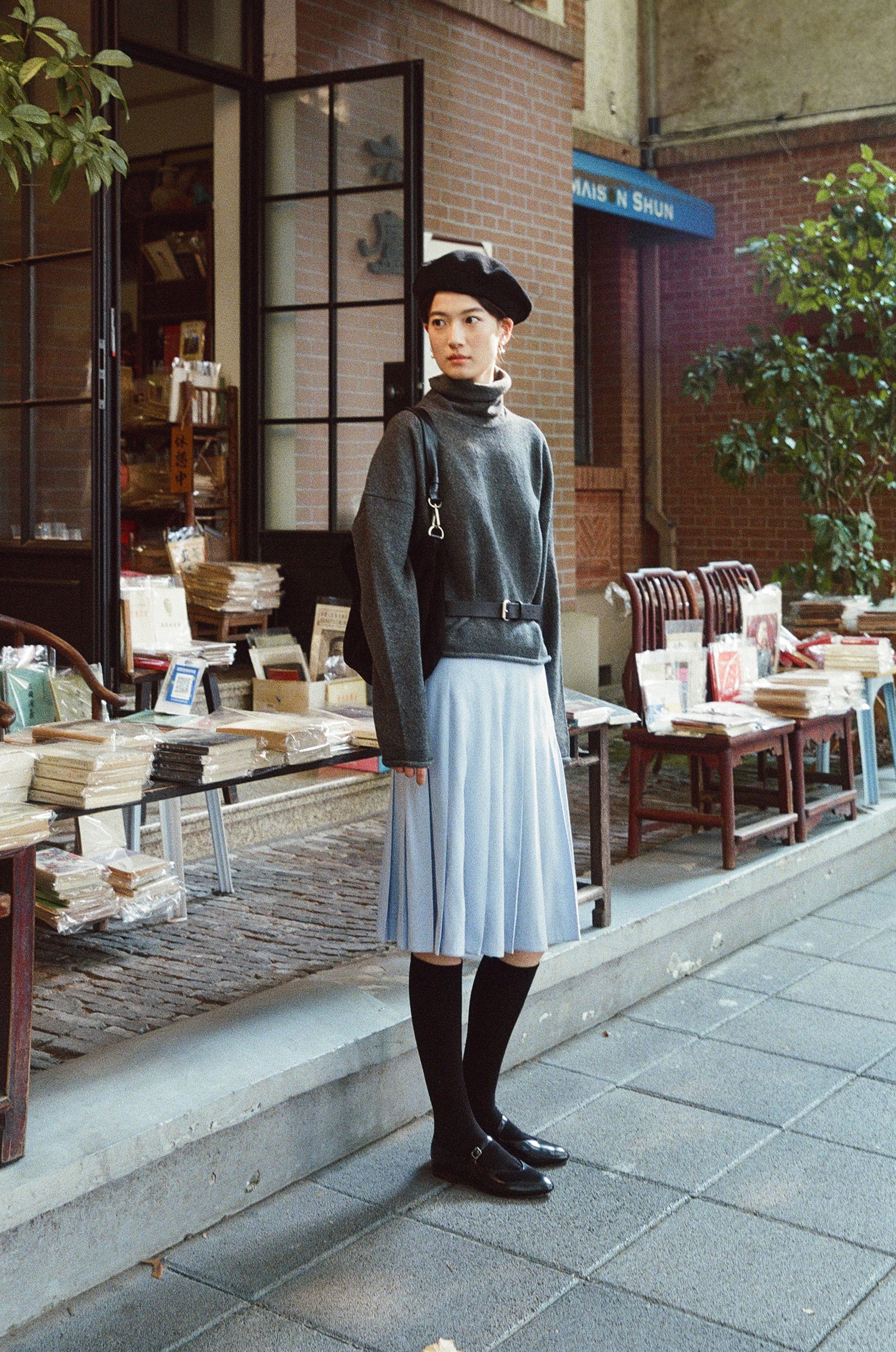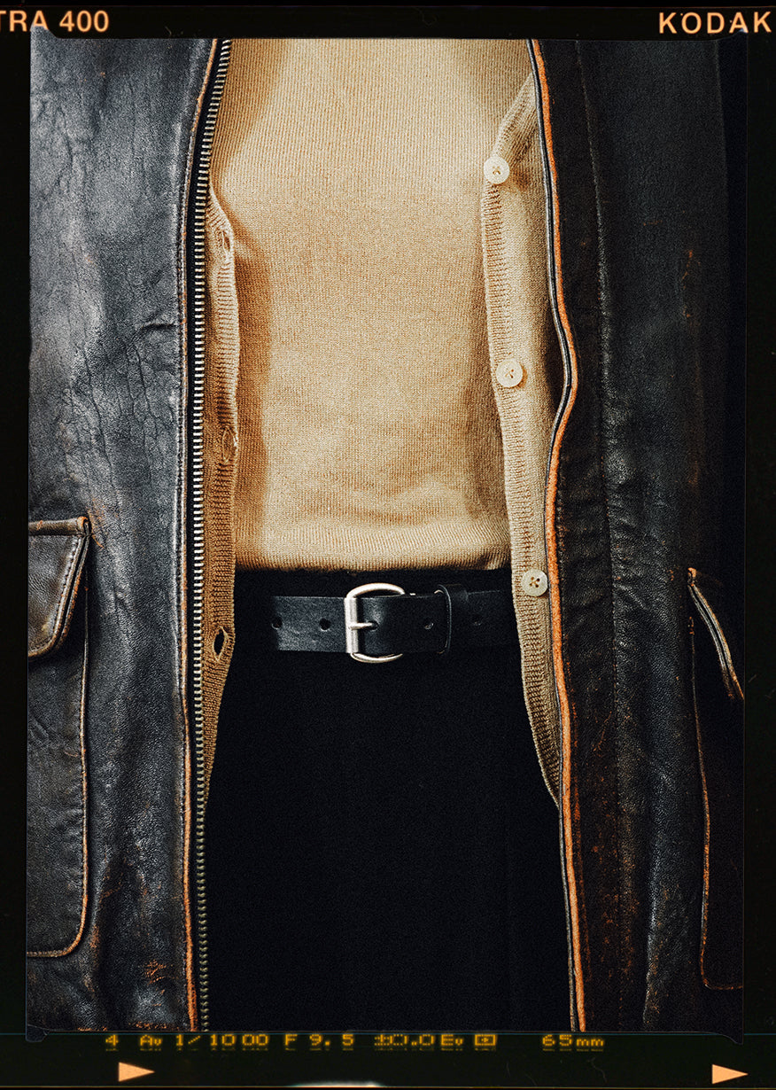 ヴィンテージシルバーカラーのバックルを使用し、ベルトの環の周りにアイボリーカラーのステッチでポイントを加えました。
