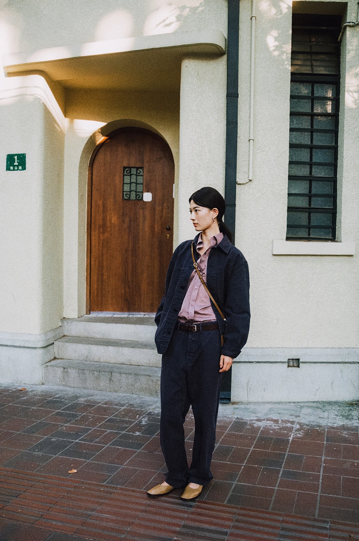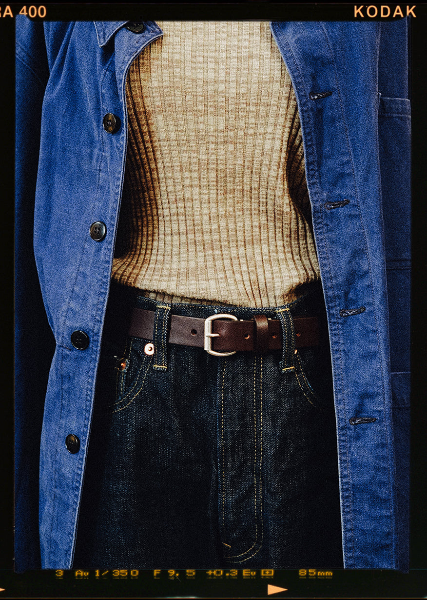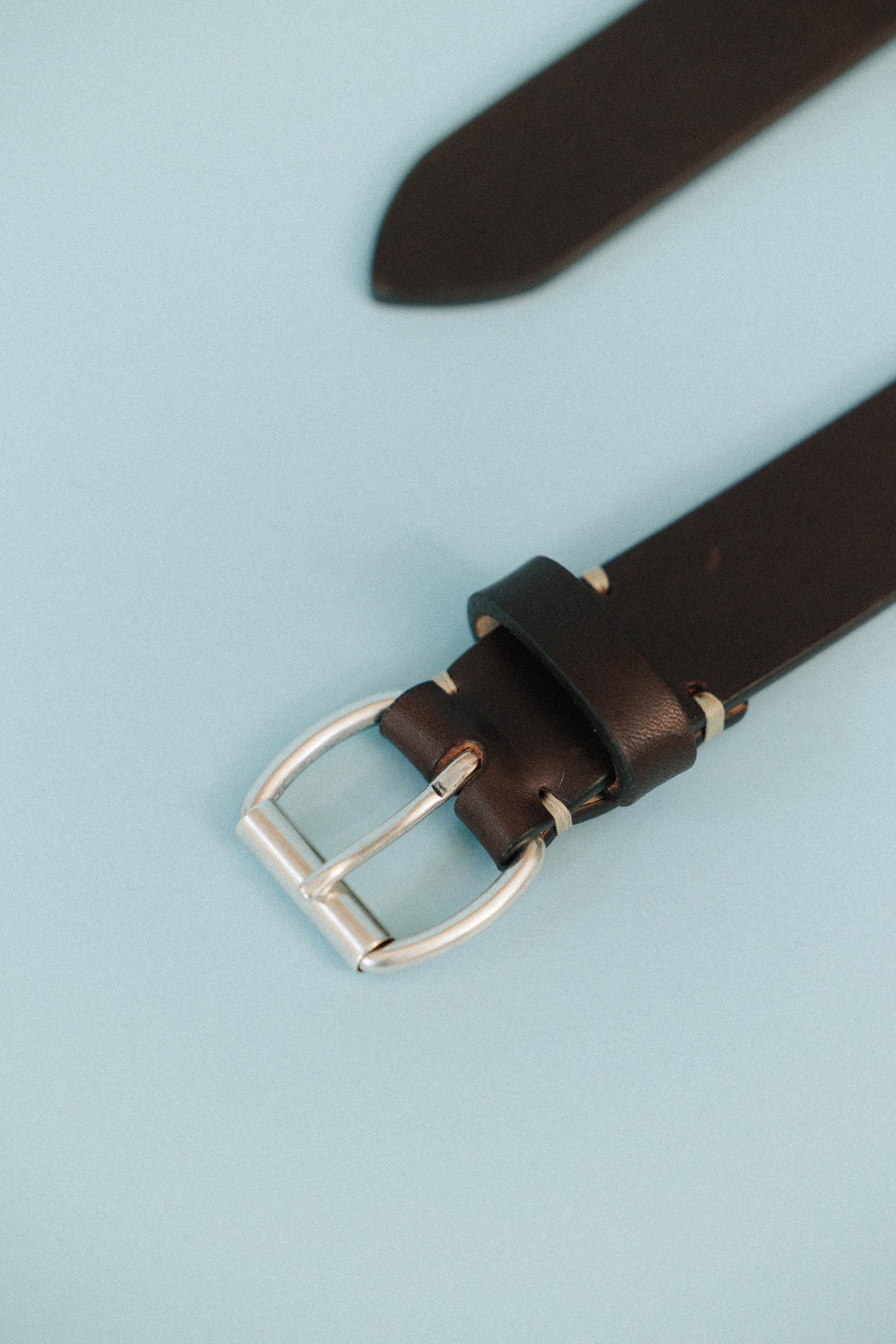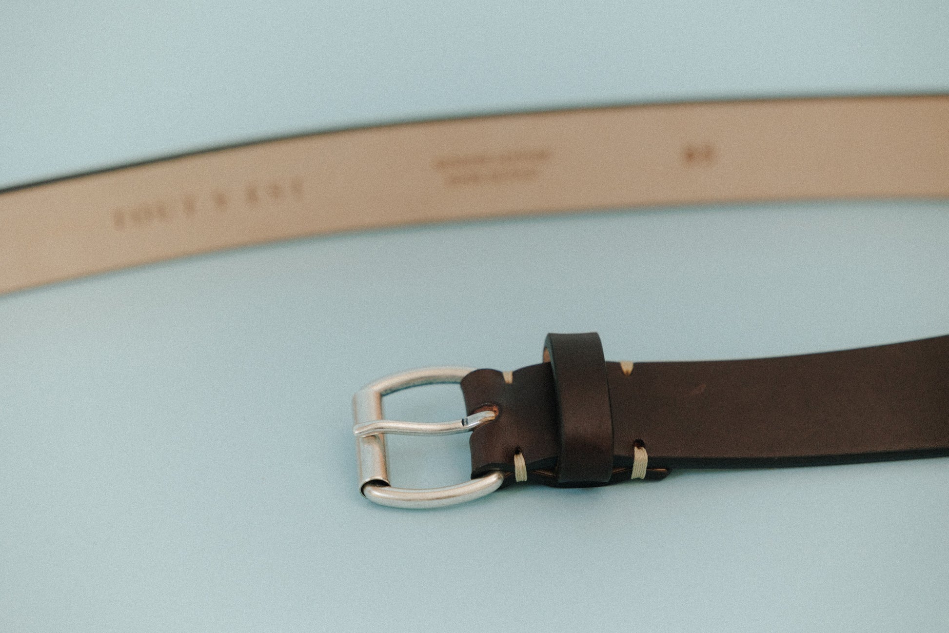 ヴィンテージシルバーカラーのバックルを使用し、ベルトの環の周りにアイボリーカラーのステッチでポイントを加えました。