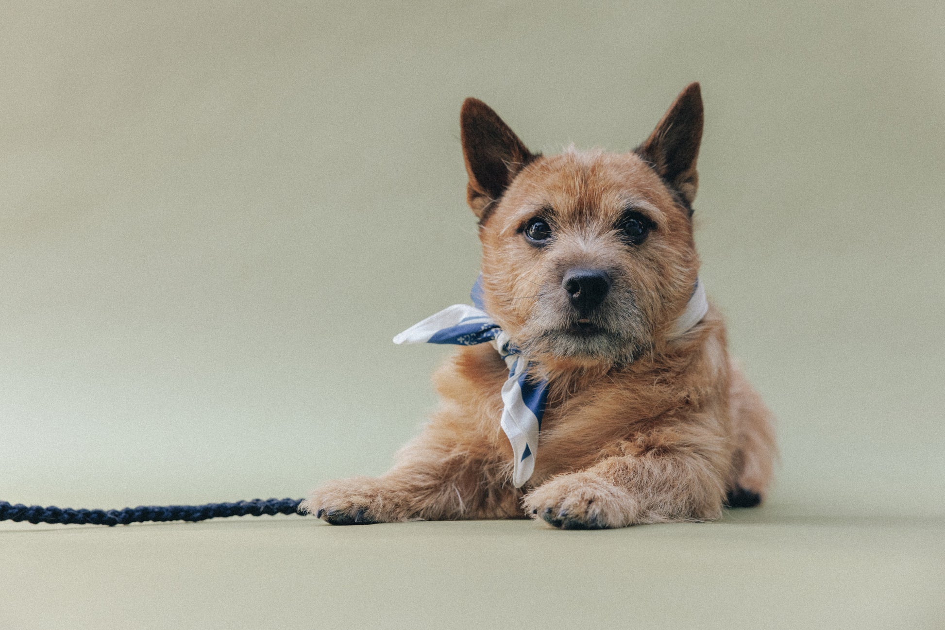 サイズは55×55cmで、ペットはもちろん、人も一緒にお使いいただけます。 お散歩の際には愛犬のアクセサリーとして、または手首やバッグに巻いてアクセントとしてもご使用いただけます。 犬のイラストとペイズリー柄を組み合わせたデザインで、中央には「TOUT Y EST」のロゴがプリントされています。 軽くてやわらかな肌触りで、季節を問わずお使いいただけます。
