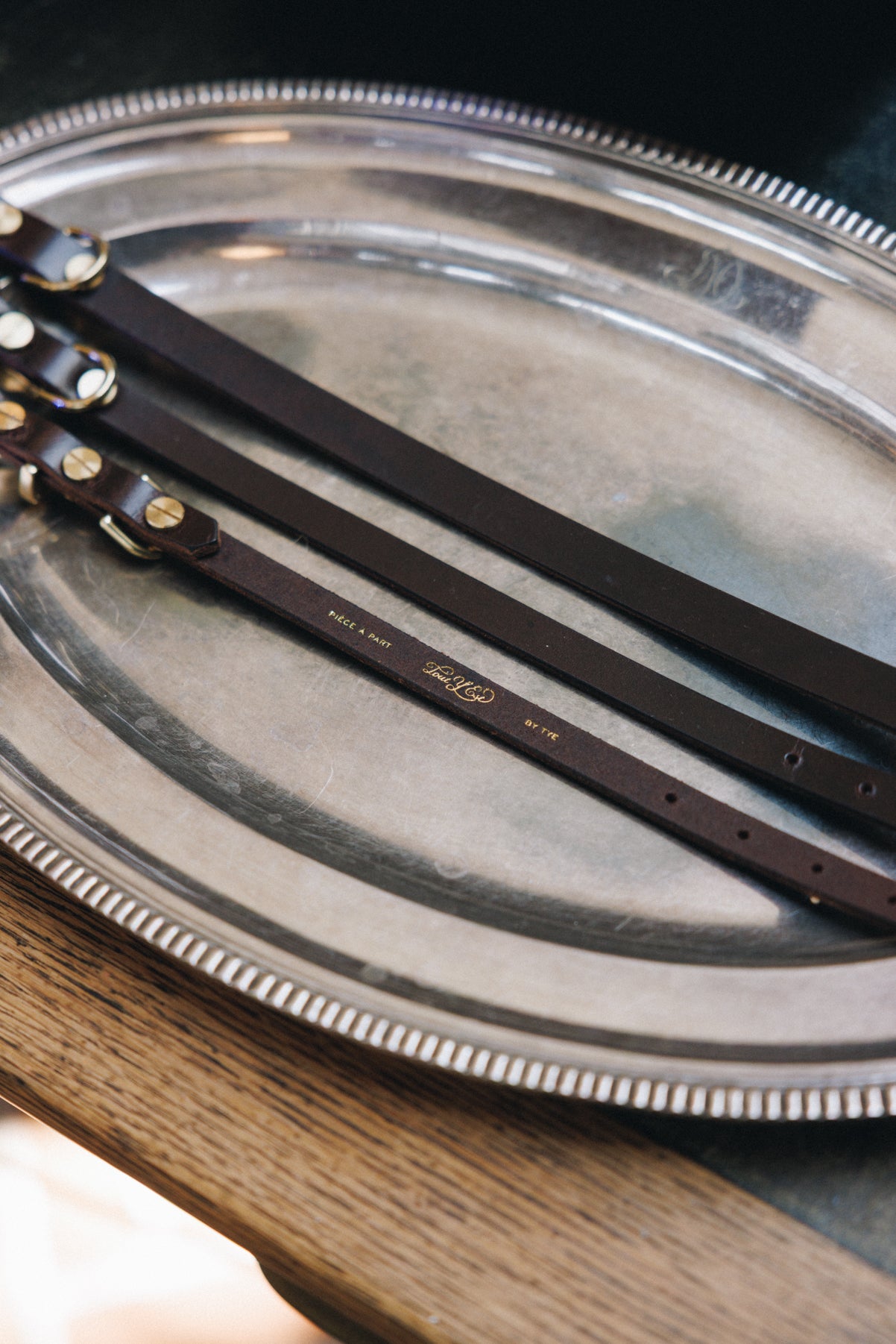 イタリア産の牛革と真鍮を使用して作られた犬用カラー(首輪)です。 しっかりとしたレザーストラップに真鍮製のバックルとDリングを固定し、耐久性を高めています。 使うほどにレザーの質感がやわらかく変化し、味わいを増していきます。 内側には「TOUT Y EST」の金箔ロゴが刻印されており、時間の経過とともに自然なエイジングが加わり、愛犬との日常をより深く記録します。 S・M・Lの3サイズ展開で、愛犬の首回りに合わせてお選びいただけます。