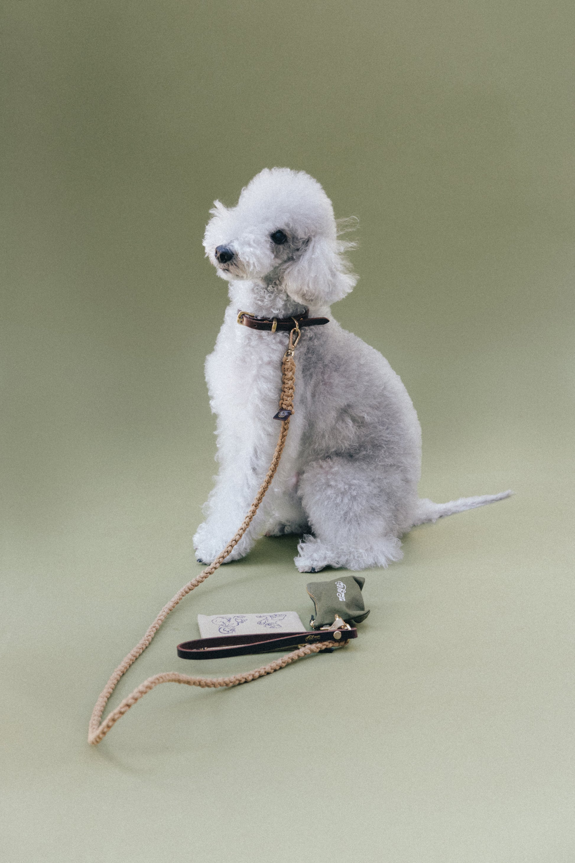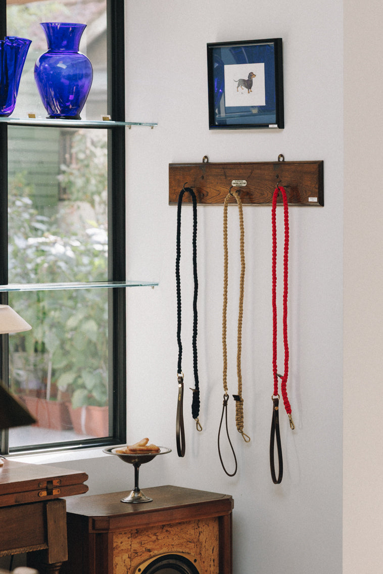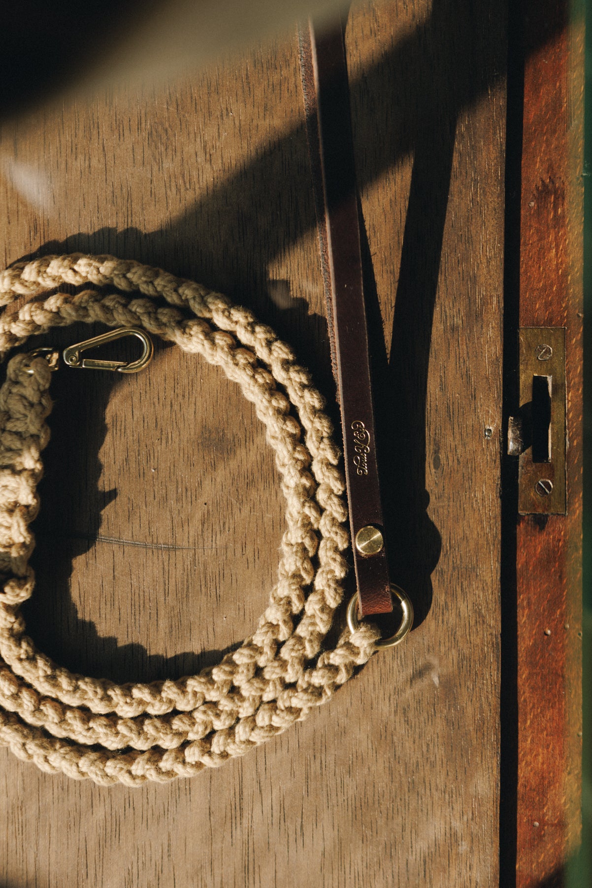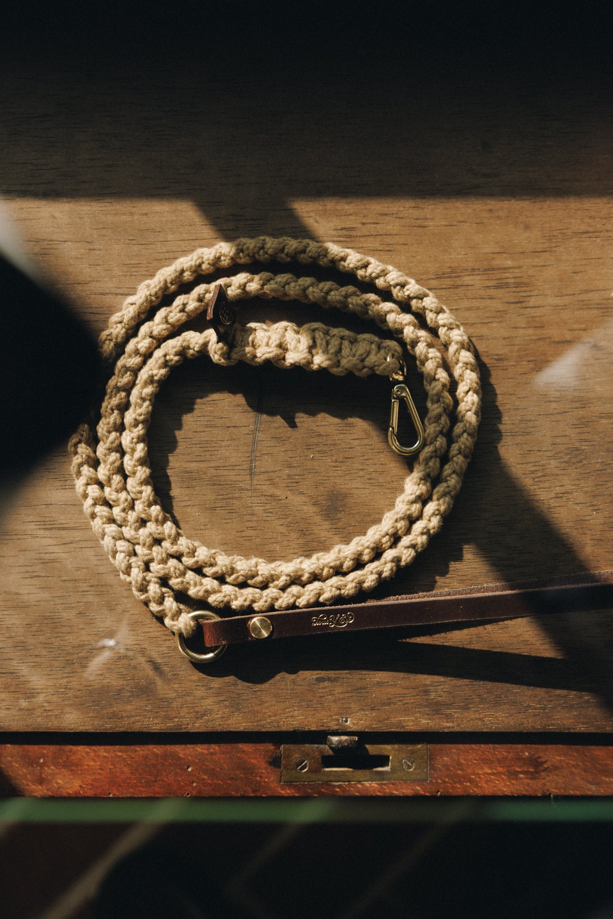 イタリア産の牛革、真鍮、コットンロープで作られた犬用リードです。