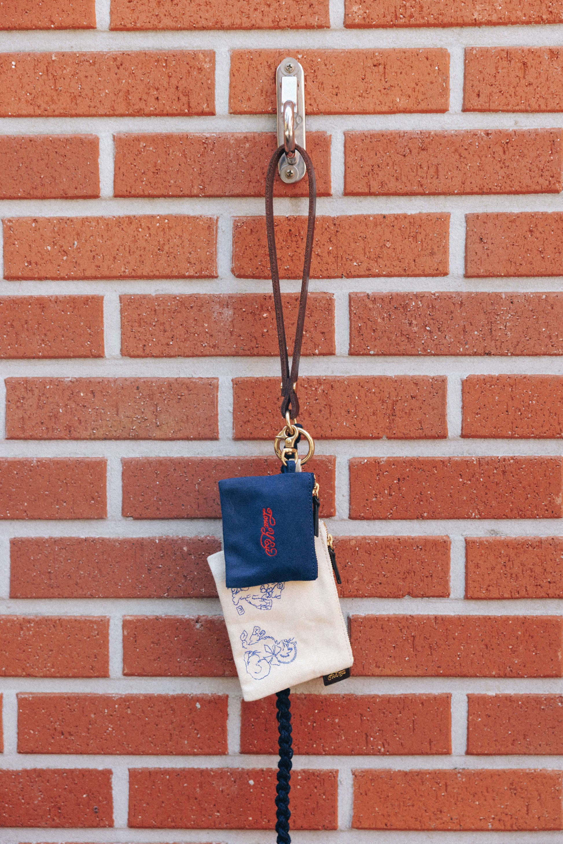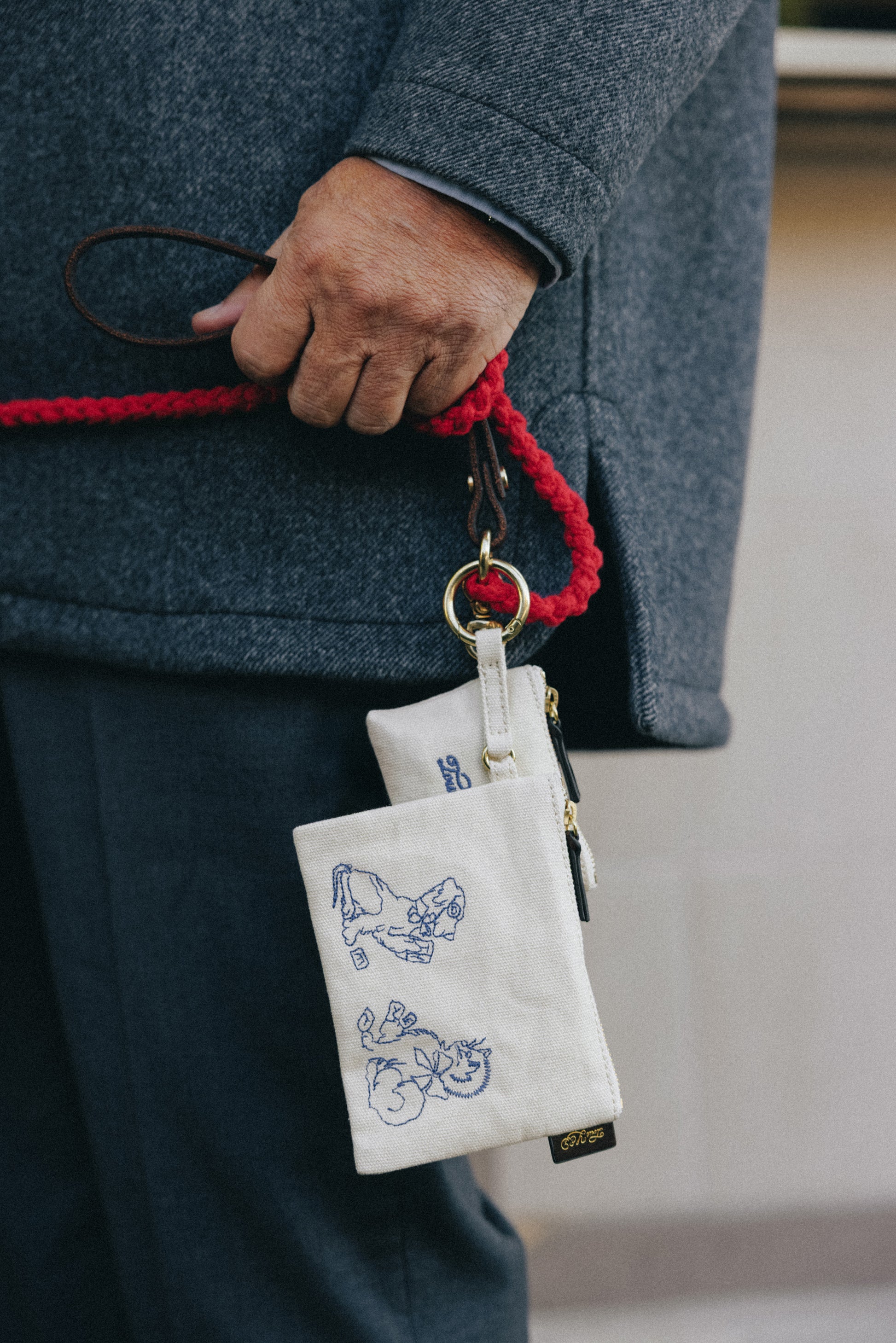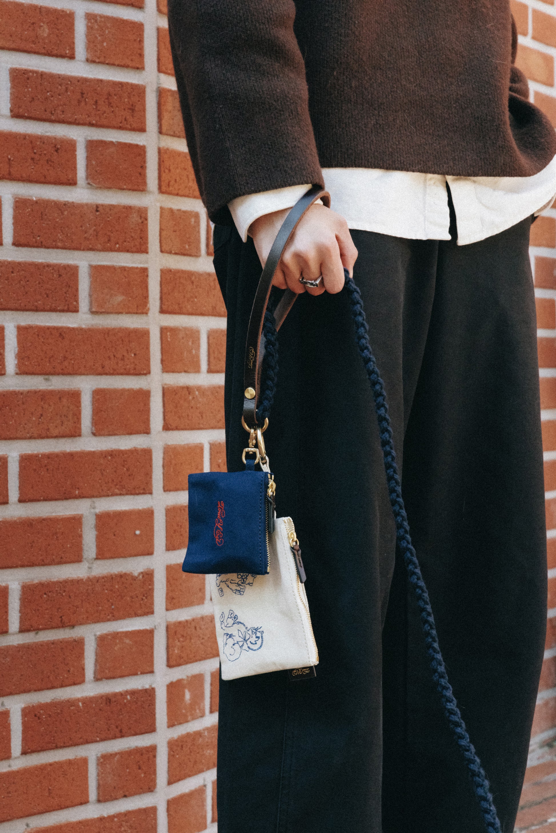 お散歩の際に飼い主の小物を入れたり、犬のおやつ・予備の排泄袋・ウェットティッシュなどを収納するなど、多用途にお使いいただけます。 前面には犬と猫の刺繍が施され、ジッパープルは牛革で仕上げられています。 側面のレザータブには「TOUT Y EST」の金箔ロゴが刻印されています。 Oリング付きストラップが付属しており、キャリーバッグやリードに取り付けることができるほか、バッグアクセサリーとしてもお使いいただけます。
