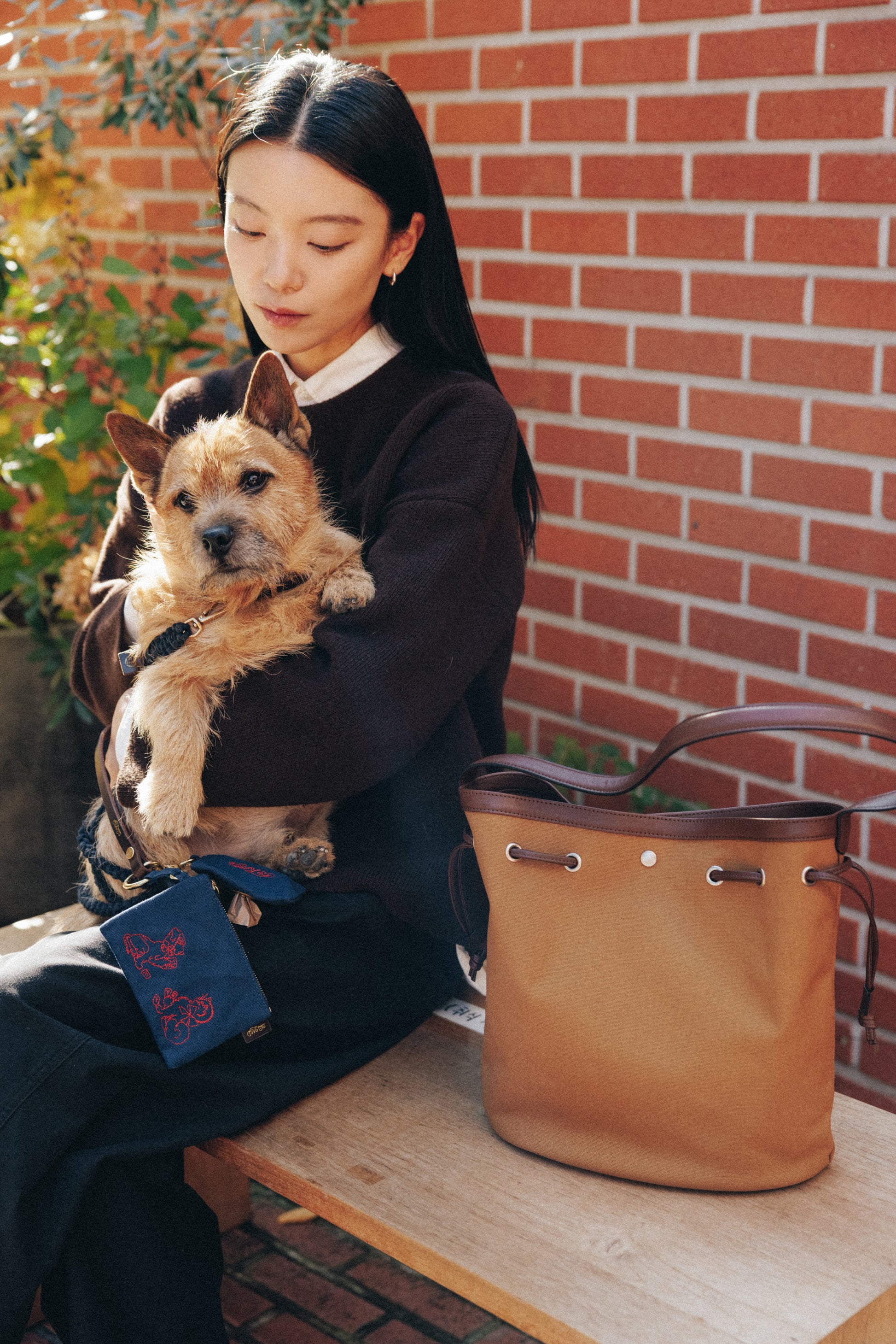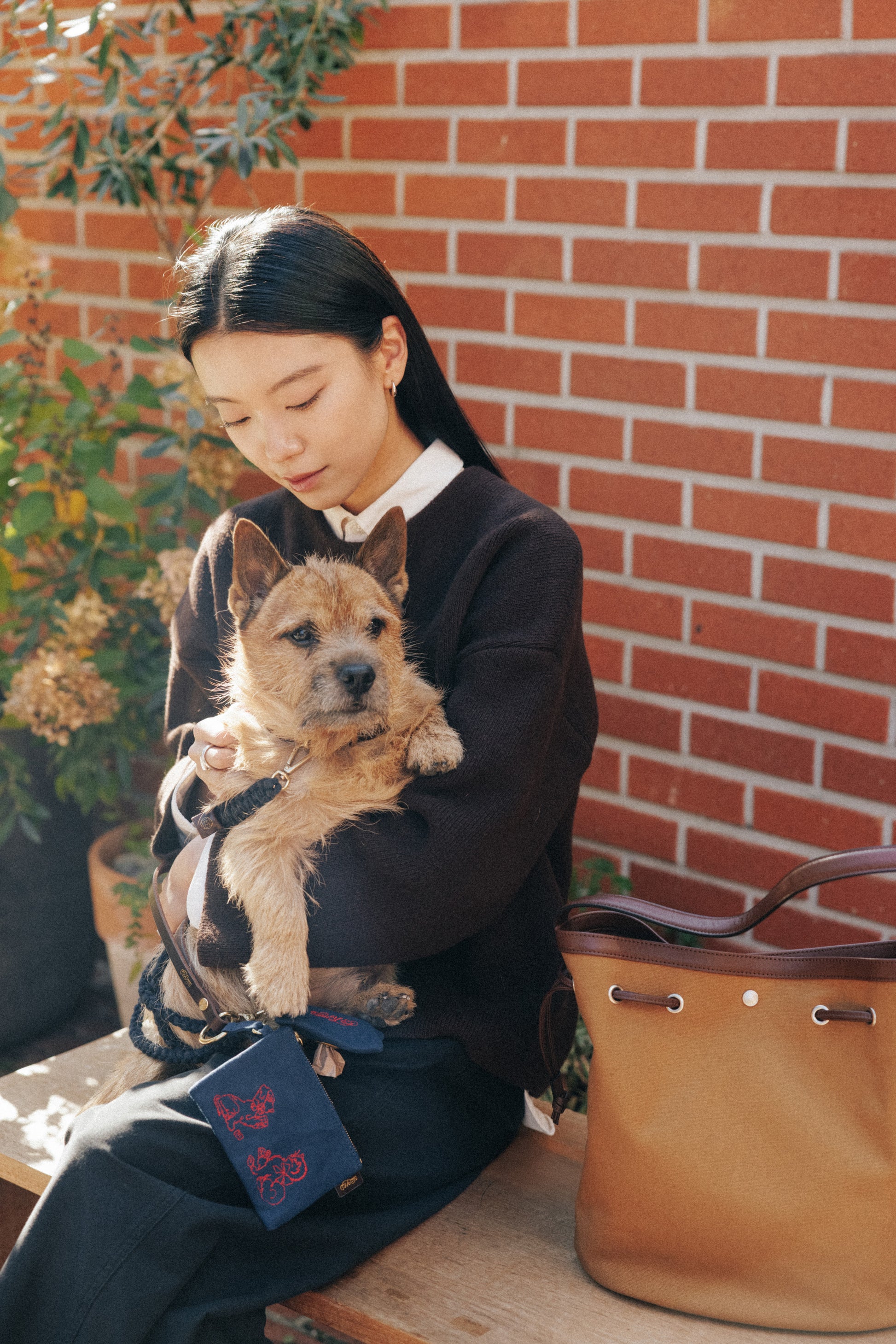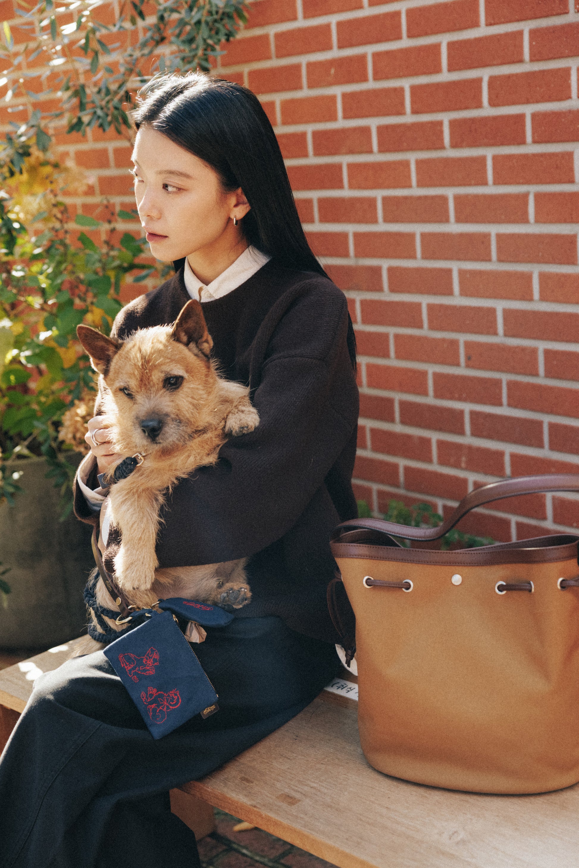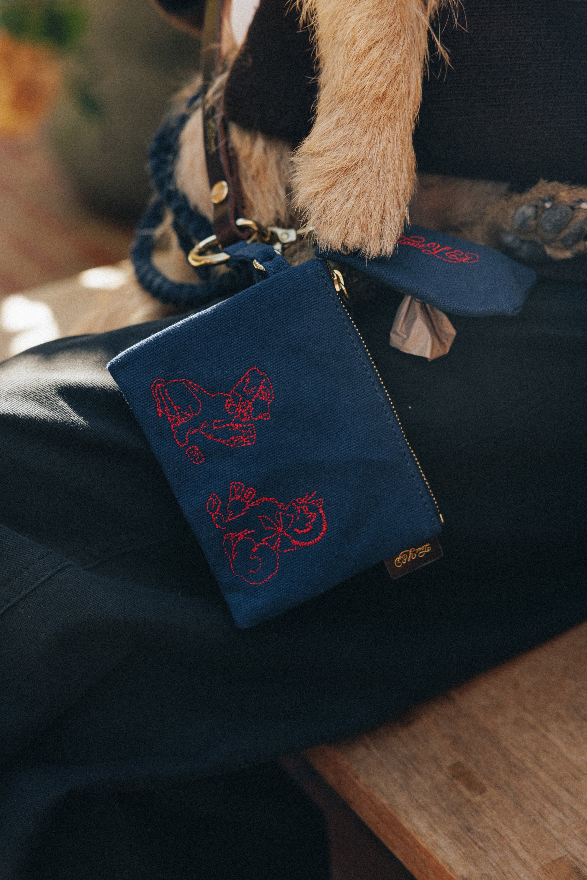 お散歩の際に飼い主の小物を入れたり、犬のおやつ・予備の排泄袋・ウェットティッシュなどを収納するなど、多用途にお使いいただけます。 前面には犬と猫の刺繍が施され、ジッパープルは牛革で仕上げられています。 側面のレザータブには「TOUT Y EST」の金箔ロゴが刻印されています。 Oリング付きストラップが付属しており、キャリーバッグやリードに取り付けることができるほか、バッグアクセサリーとしてもお使いいただけます。
