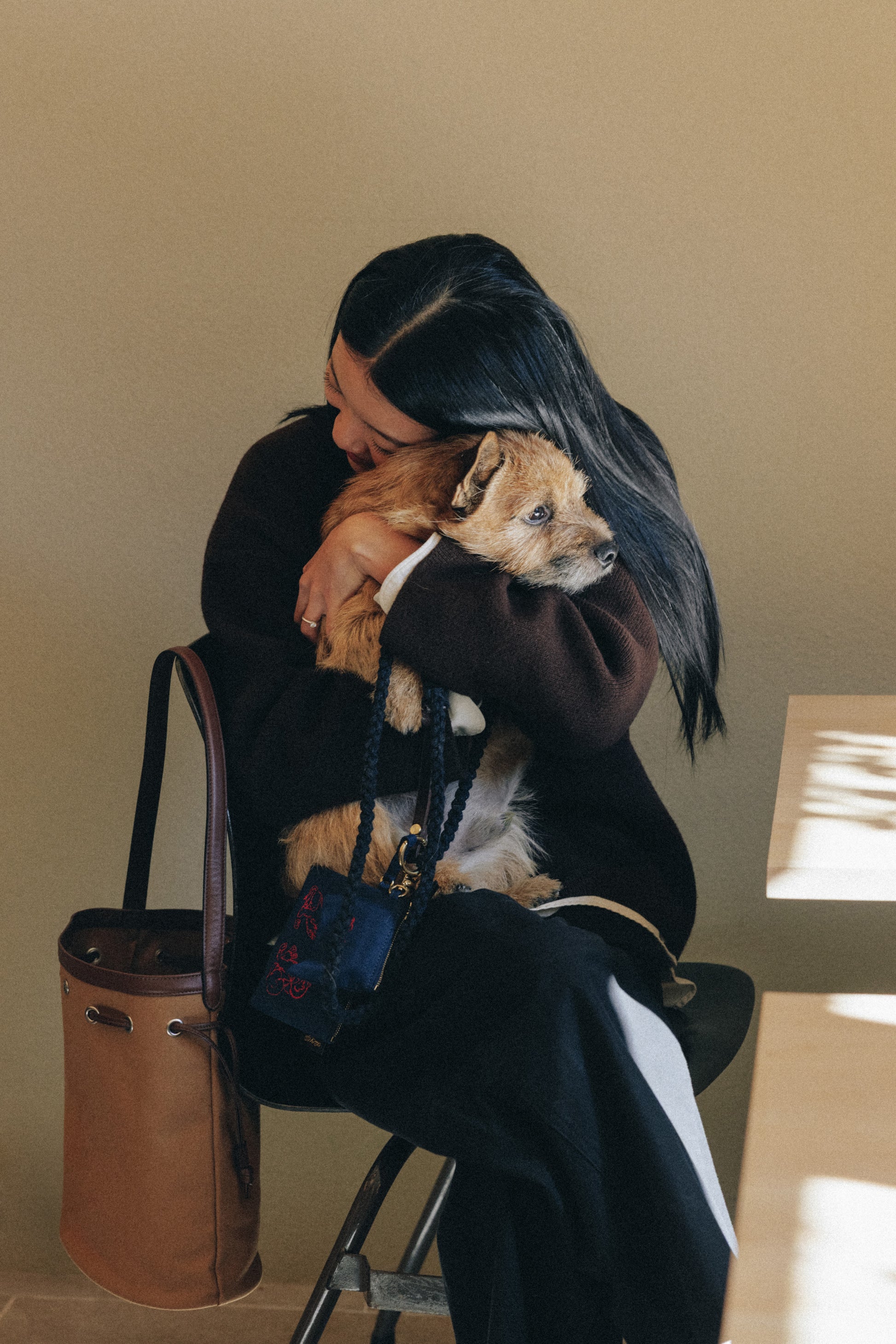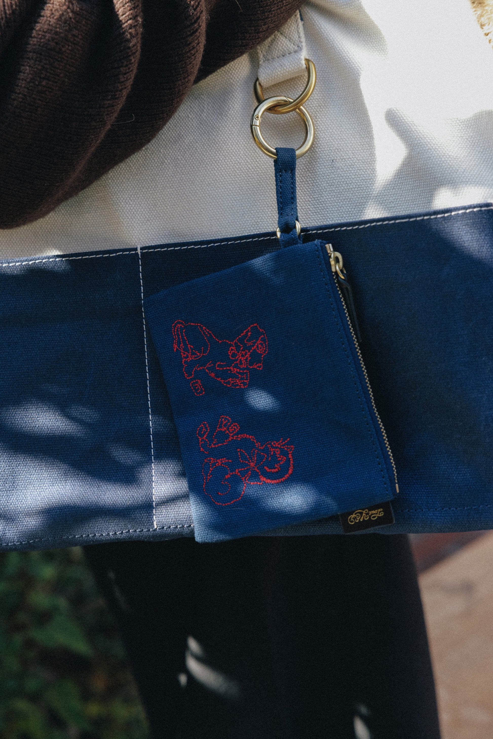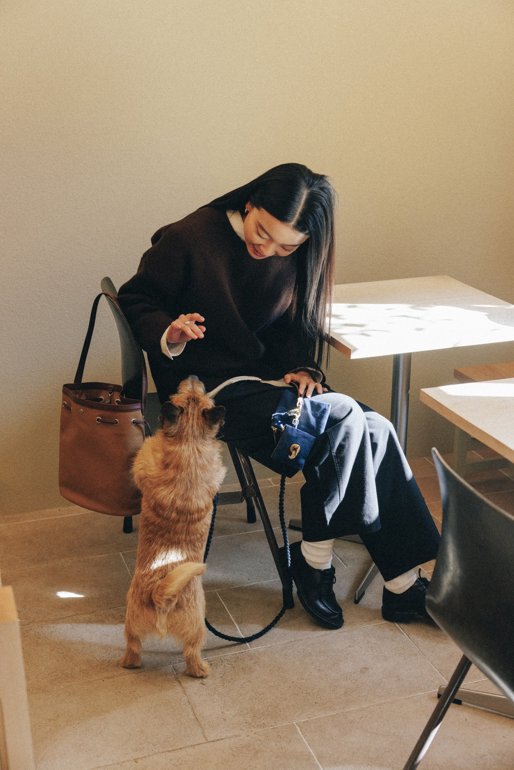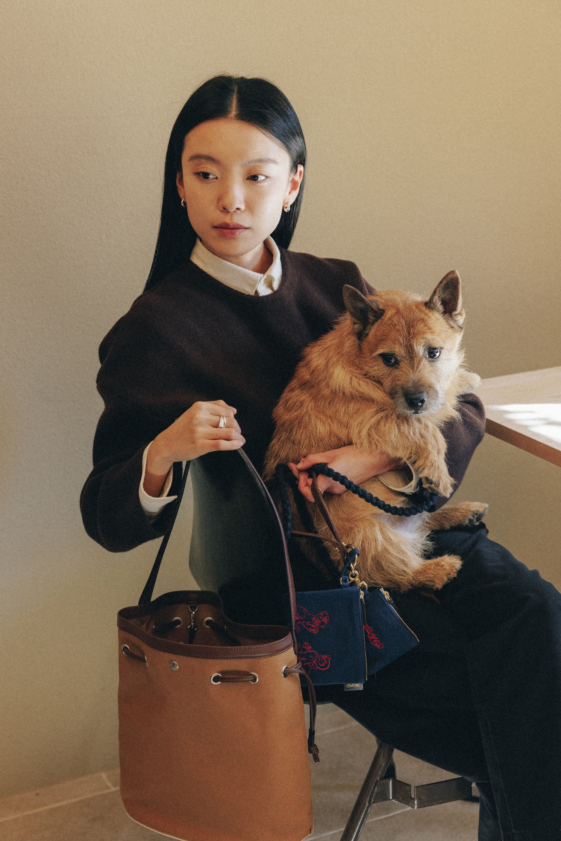 お散歩の際に飼い主の小物を入れたり、犬のおやつ・予備の排泄袋・ウェットティッシュなどを収納するなど、多用途にお使いいただけます。 前面には犬と猫の刺繍が施され、ジッパープルは牛革で仕上げられています。 側面のレザータブには「TOUT Y EST」の金箔ロゴが刻印されています。 Oリング付きストラップが付属しており、キャリーバッグやリードに取り付けることができるほか、バッグアクセサリーとしてもお使いいただけます。