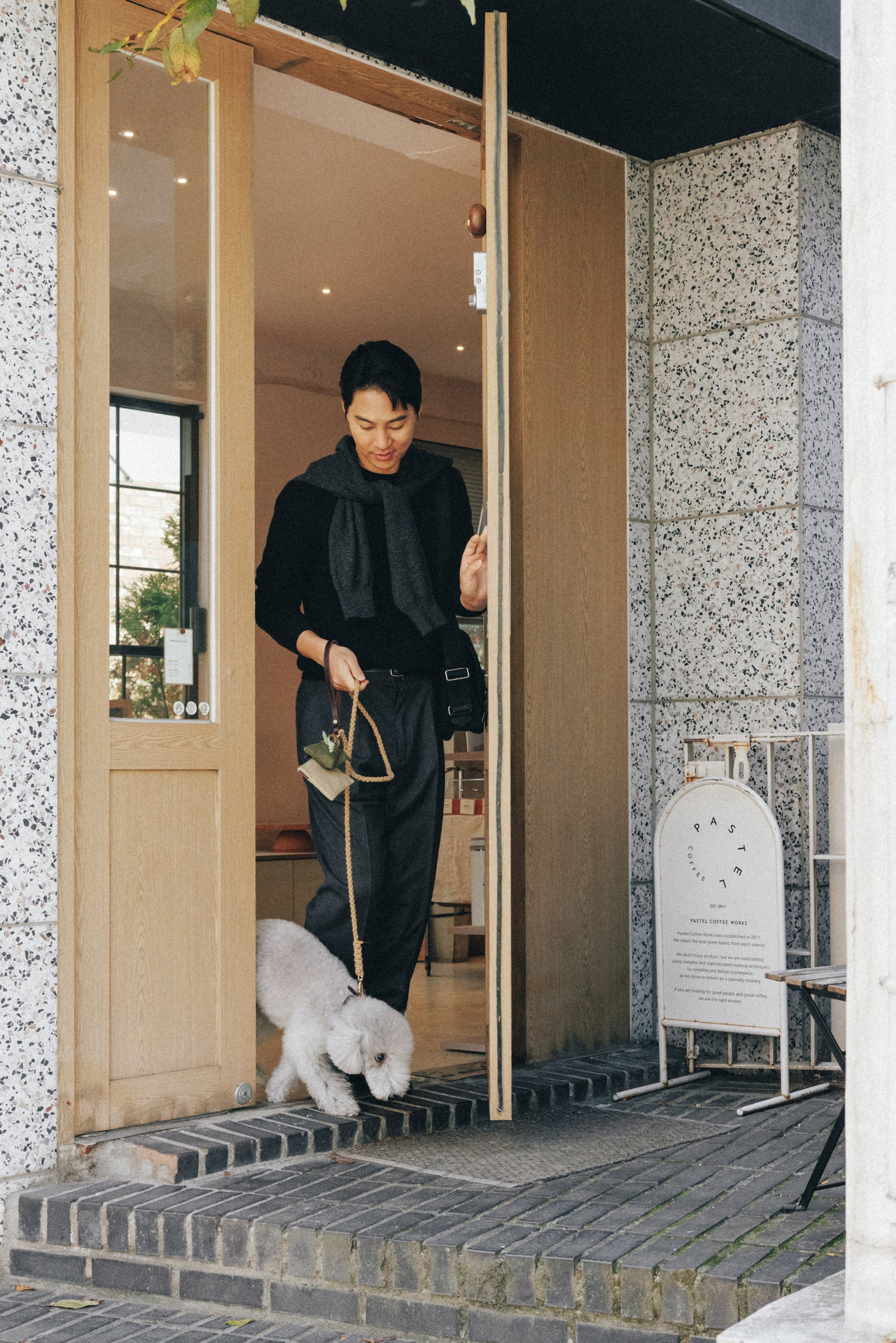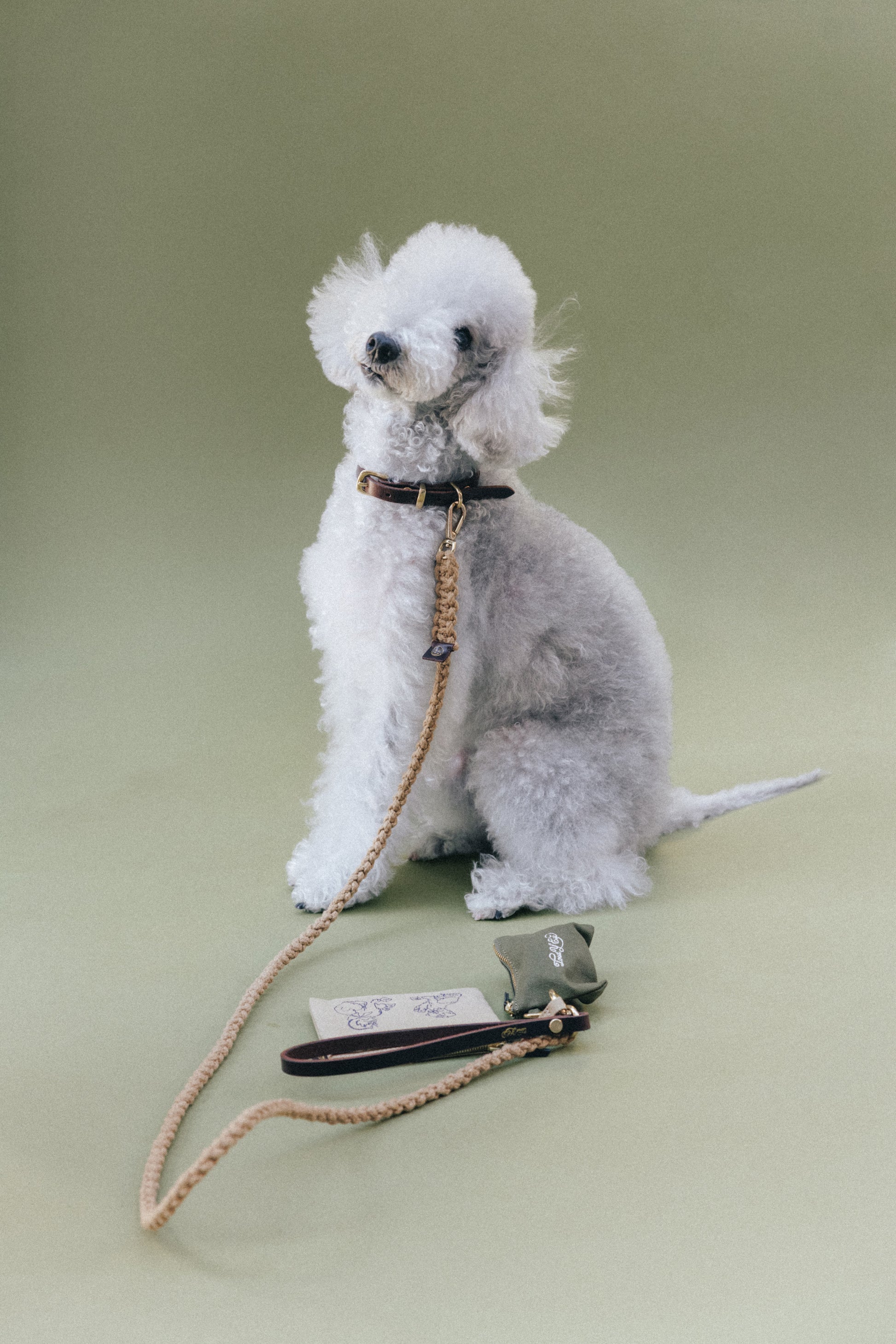 コットンキャンバスとブラスで作られた排泄袋用ポーチです。 背面の丸いホールから簡単に袋を取り出すことができ、360度回転するフックでリードやバッグなどに手軽に取り付けられます。 前面には「TOUT Y EST」の刺繍ロゴが施され、ジッパープルは牛革で仕上げられています。