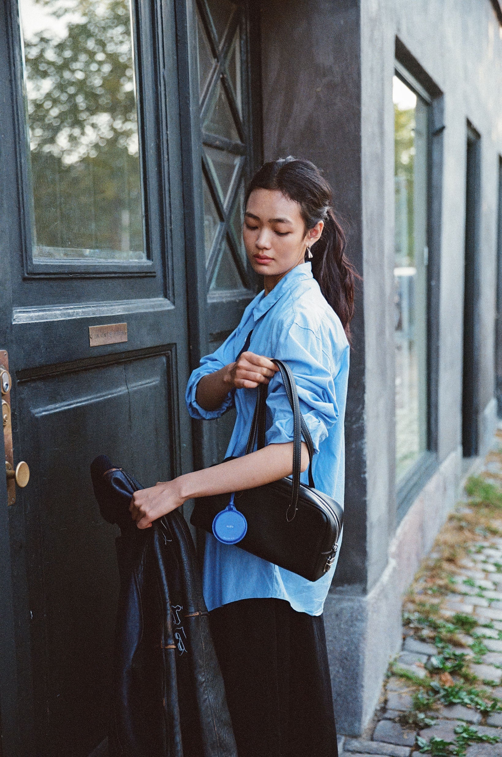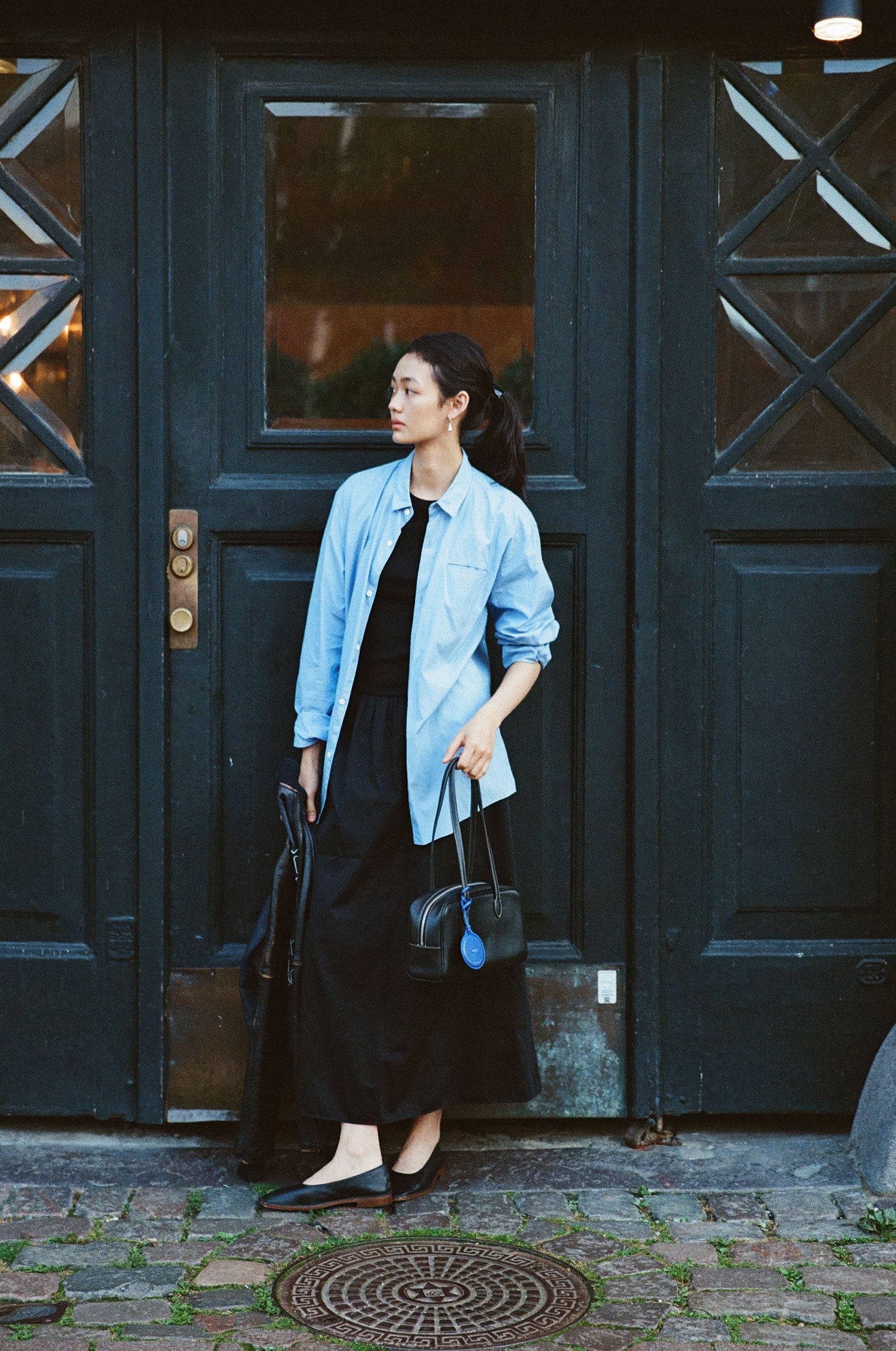 ペンダントミラーは、バッグにさりげないアクセントを添えるミラー付きチャームです。 表面には柔らかなカウレザーを使用し、裏面はミラーになっているため、装飾性と実用性を兼ね備えています。 長めのレザーストラップは、バッグのハンドルや装飾に巻きつけて、お好みの長さで自然なスタイルを作れます。 軽やかで柔らかな曲線のフォルムに、表面にはシンプルな箔押しロゴをあしらいました。