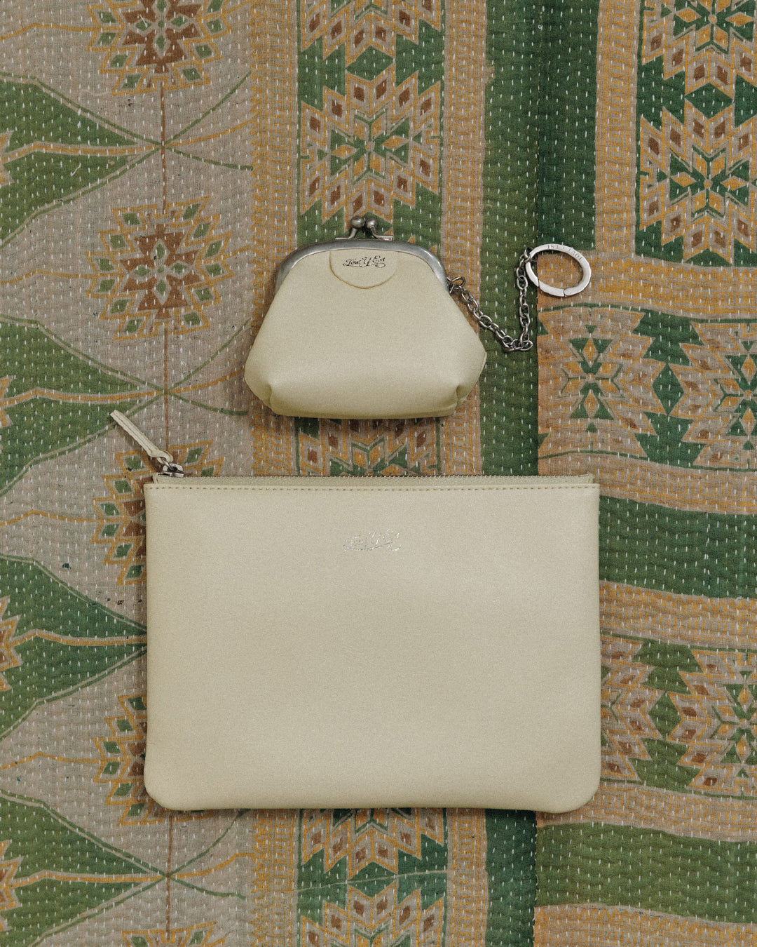 リスポーチは、ラムレザーの柔らかさが際立つフラットタイプの長方形ポーチです。シンプルなフォルムにシルバーの箔押しロゴがさりげないポイントに。内側はコットンライニングと薄型ポケット付きで、日常の持ち物をすっきりと整理できます。単体での持ち歩きはもちろん、バッグ内のサブポーチとしても活躍します。