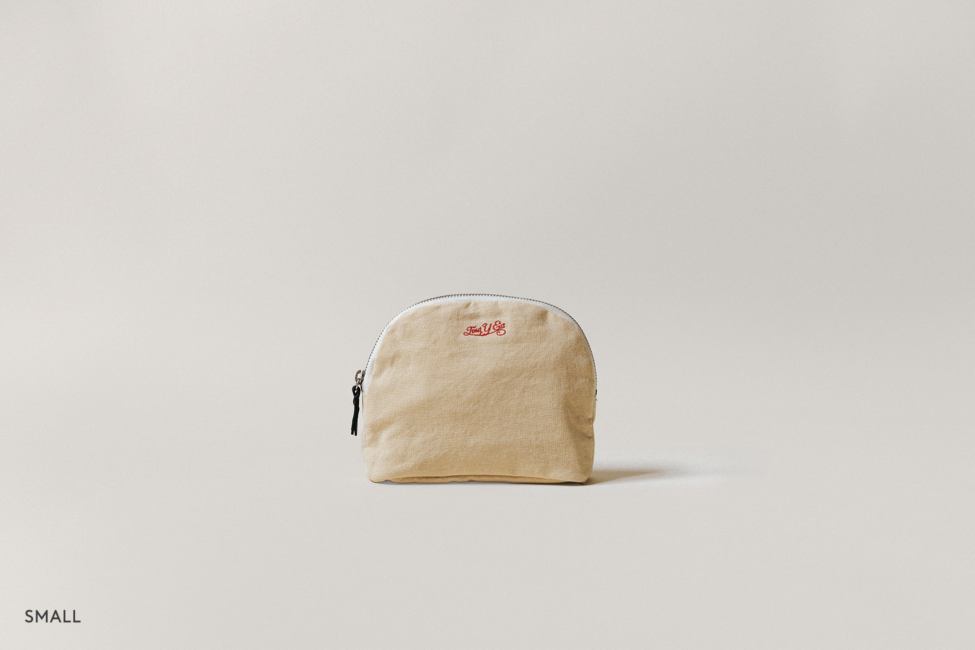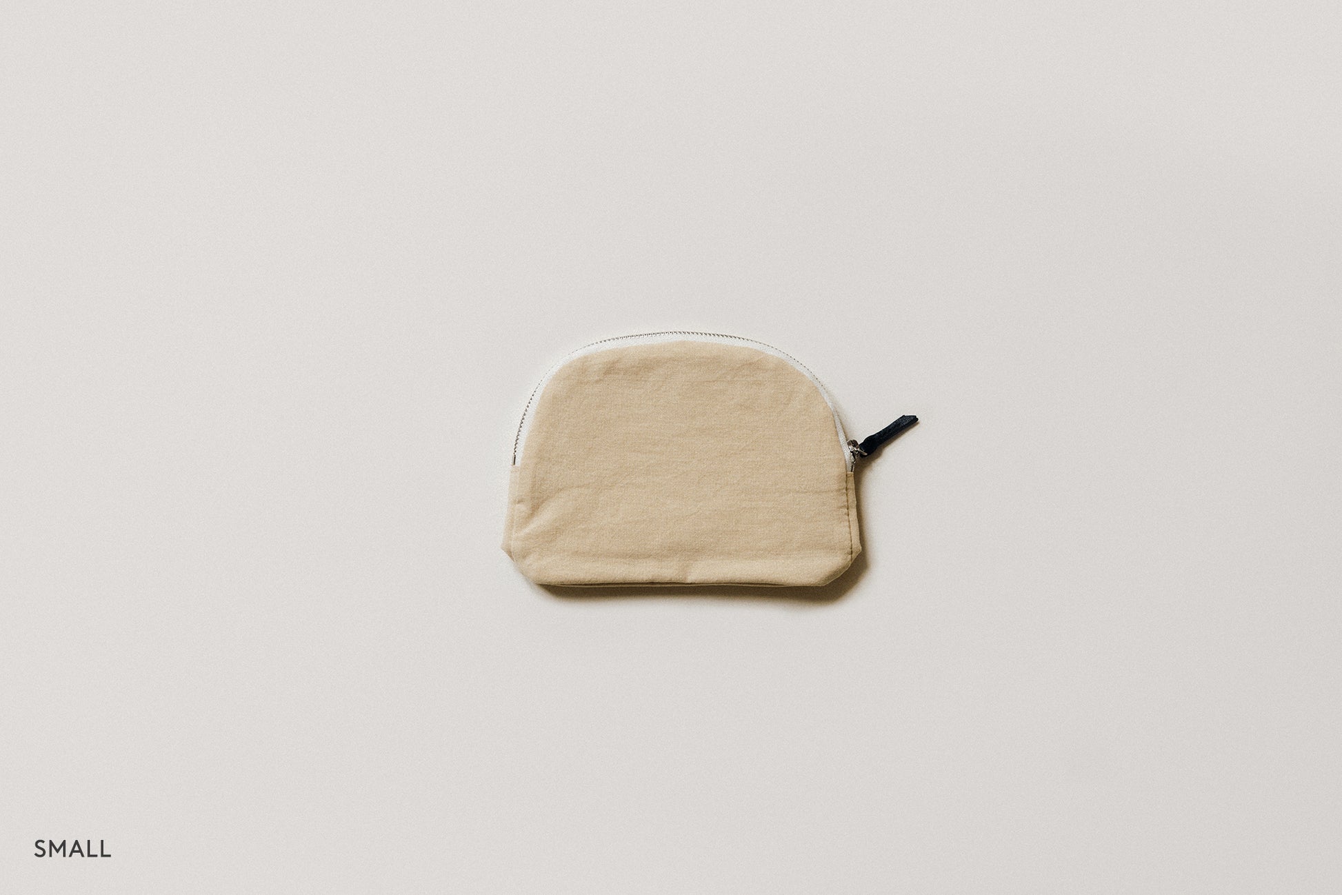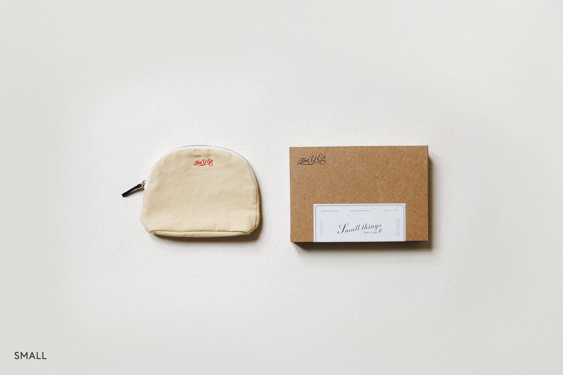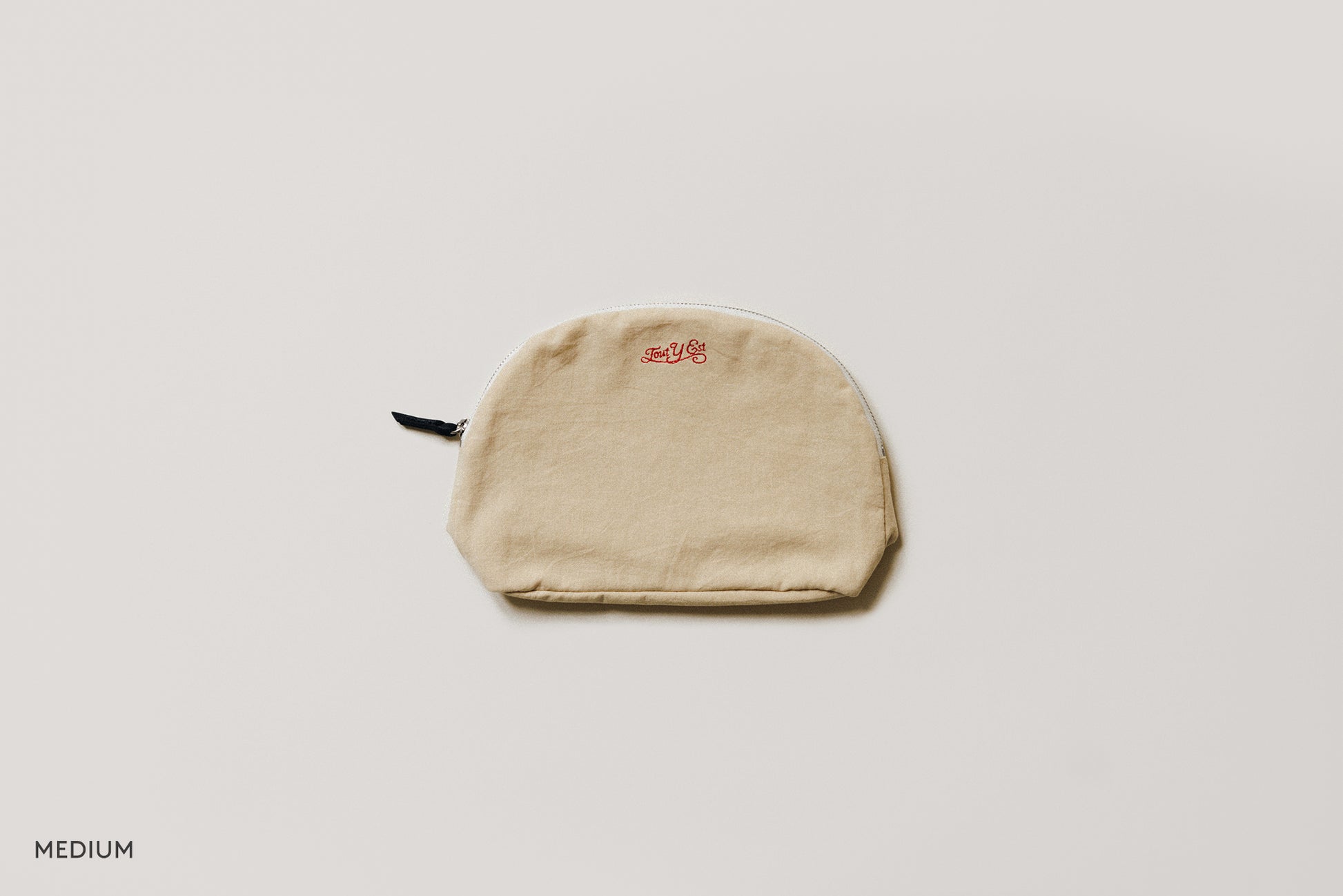 日常で必需品を手軽に整理して持ち運びに良い半月型のポーチです。柔らかいファスナーは革製ファスナープラー付きで使いやすく、内部にポケットがあるので散らばりやすい小さな小物もすっきりと収納できます。フラットではなく、適度な幅のある底面を持つ形状で収納力に優れています。前面にはトゥティエのロゴを刺繍で刻んでおり、表地と同じ素材で裏地を製作して完成度を高めました。