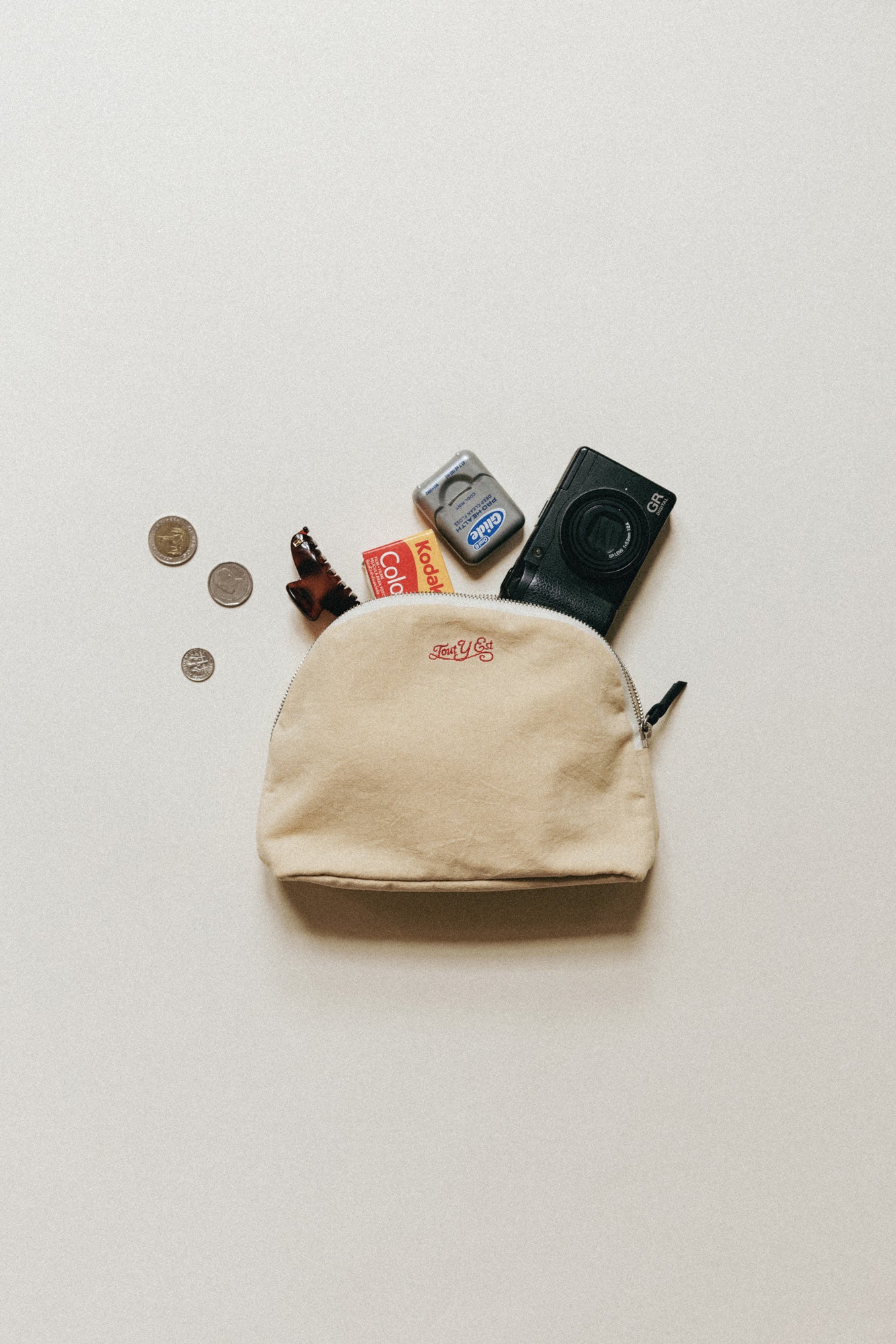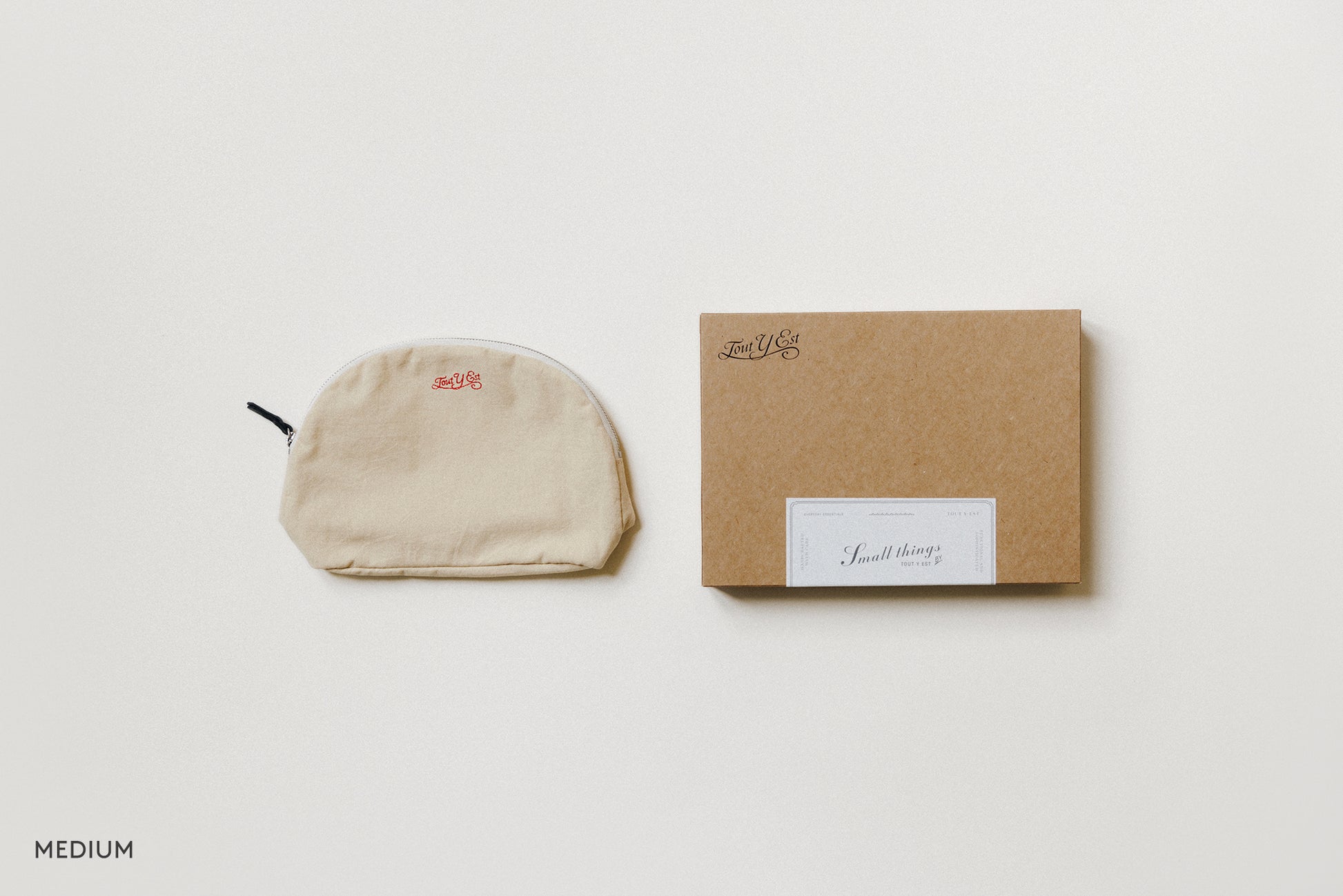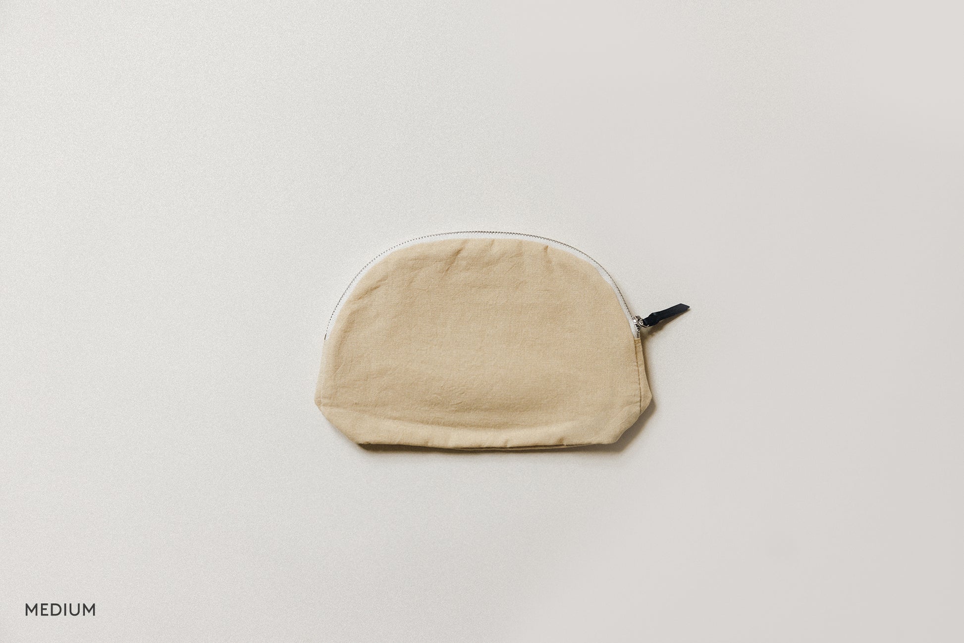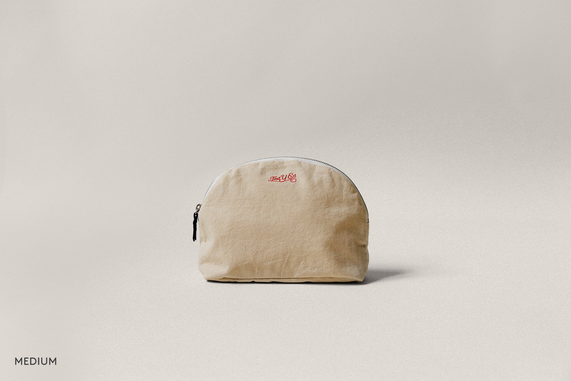 日常で必需品を手軽に整理して持ち運びに良い半月型のポーチです。柔らかいファスナーは革製ファスナープラー付きで使いやすく、内部にポケットがあるので散らばりやすい小さな小物もすっきりと収納できます。フラットではなく、適度な幅のある底面を持つ形状で収納力に優れています。前面にはトゥティエのロゴを刺繍で刻んでおり、表地と同じ素材で裏地を製作して完成度を高めました。