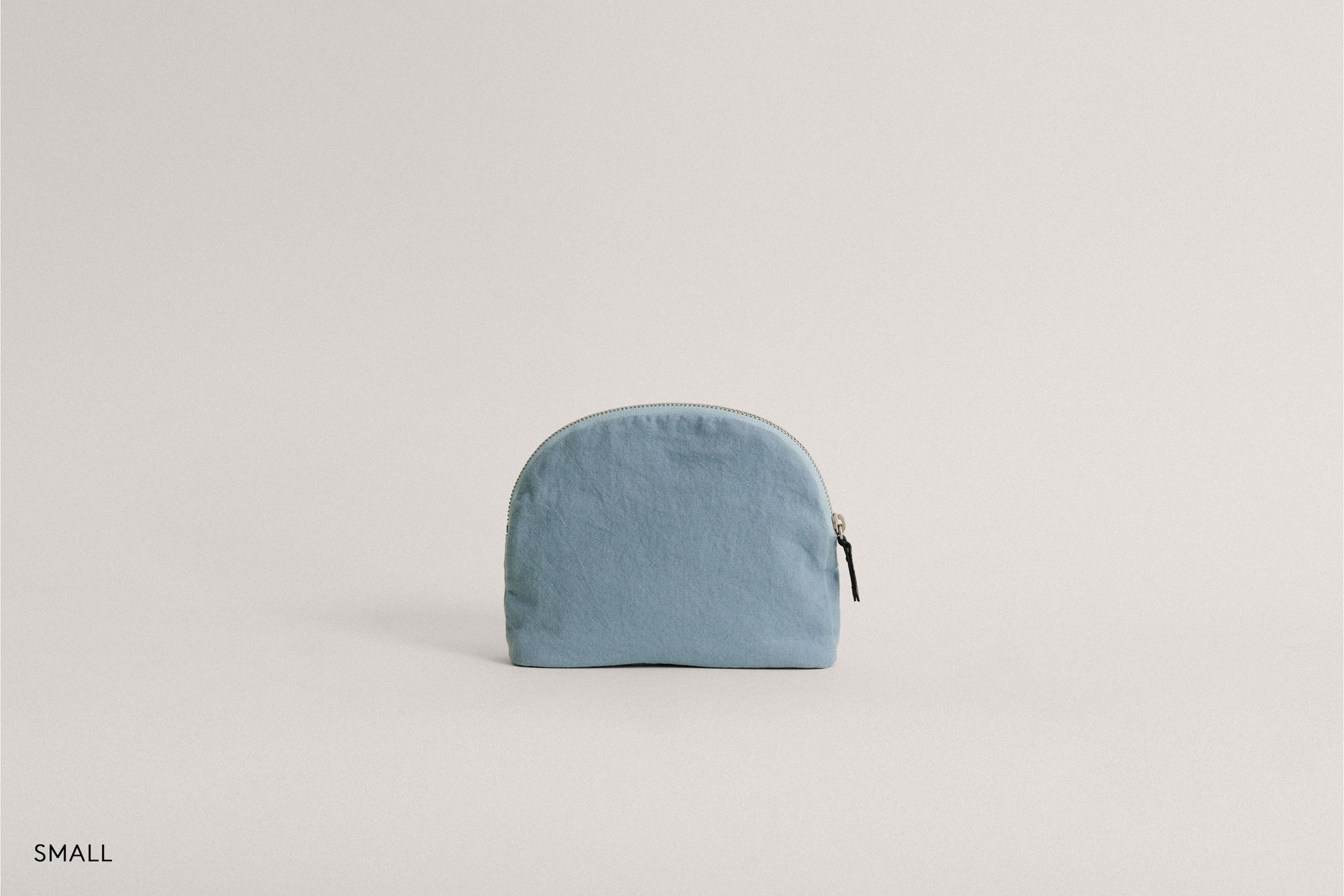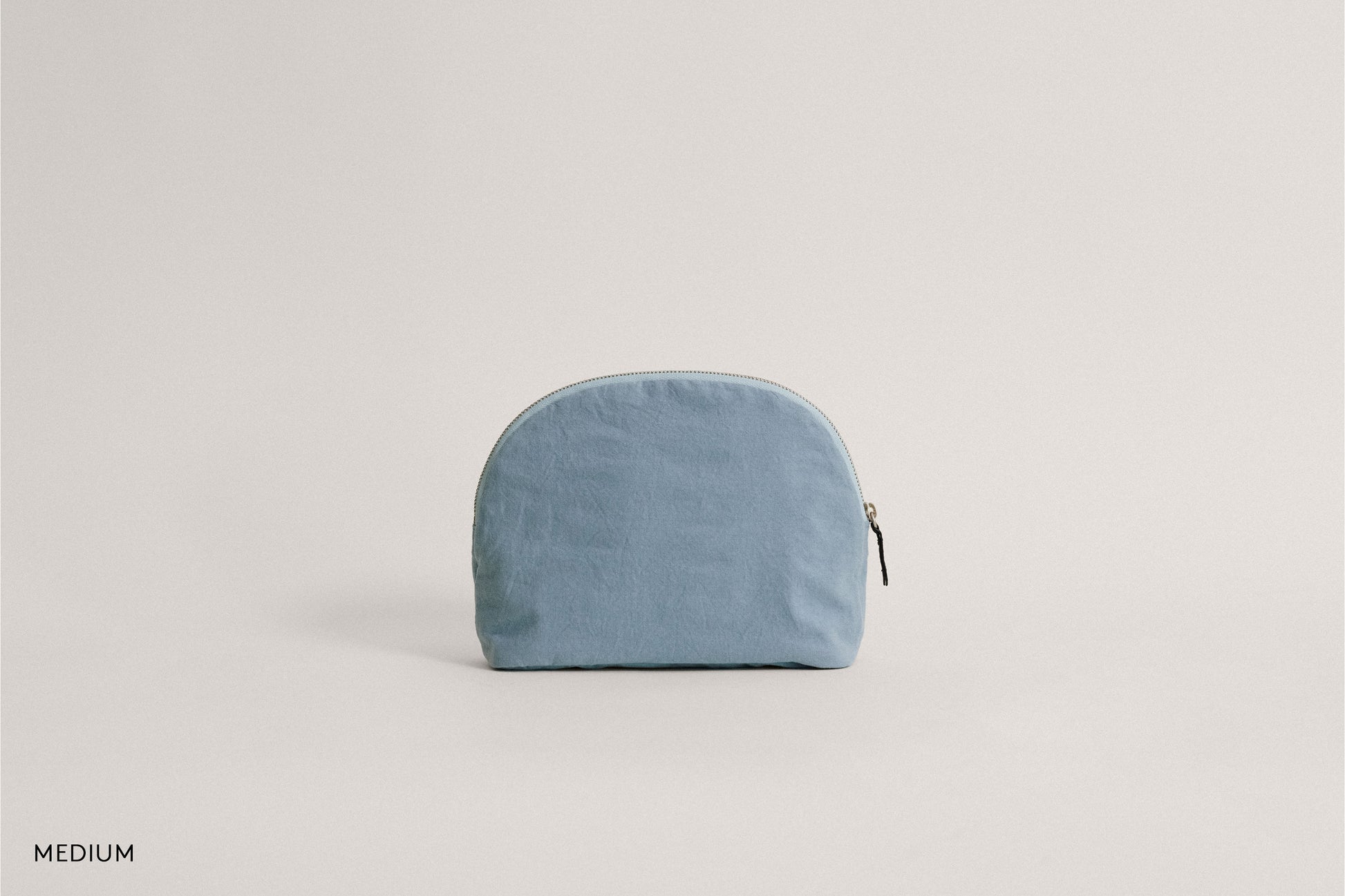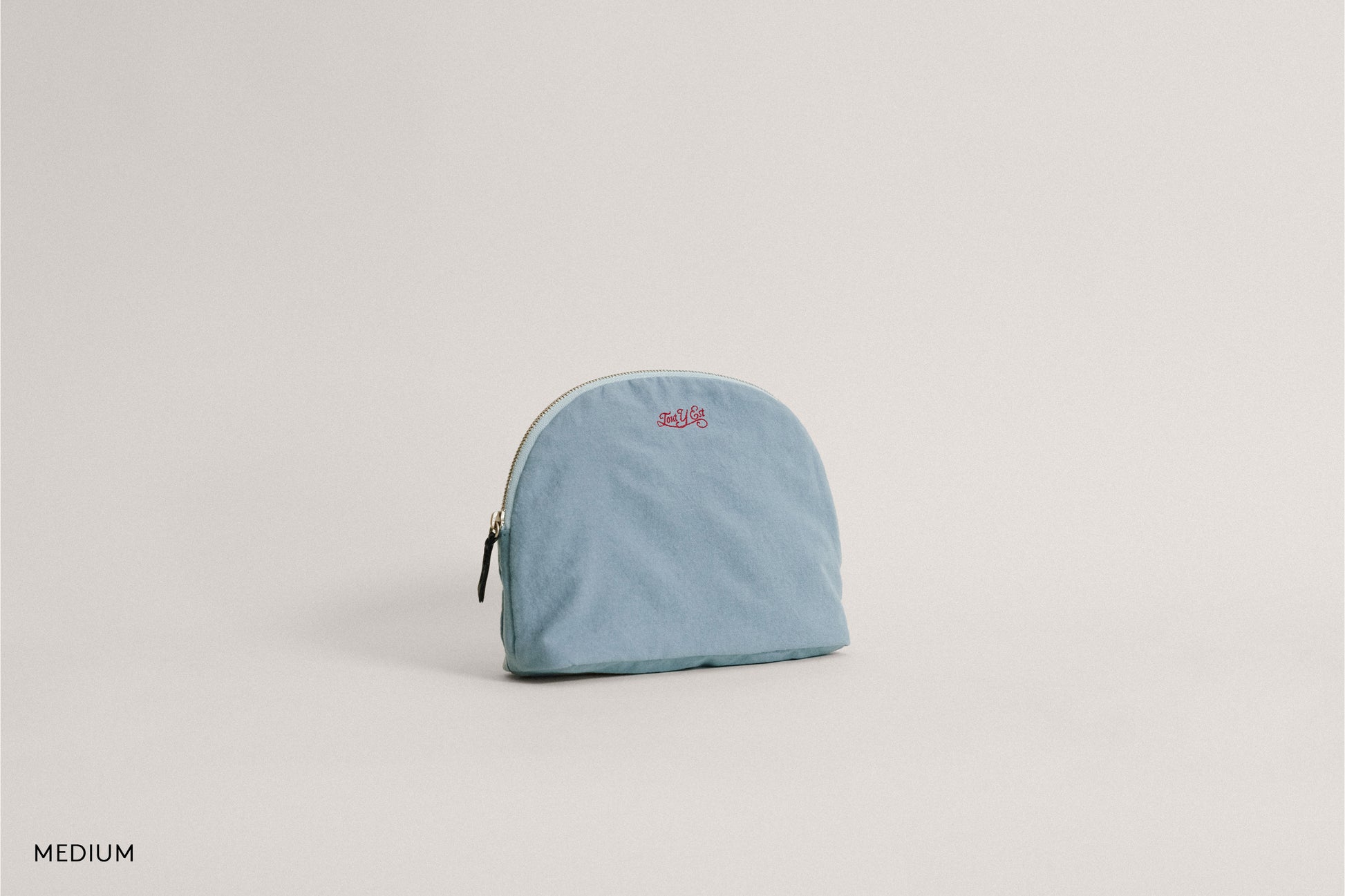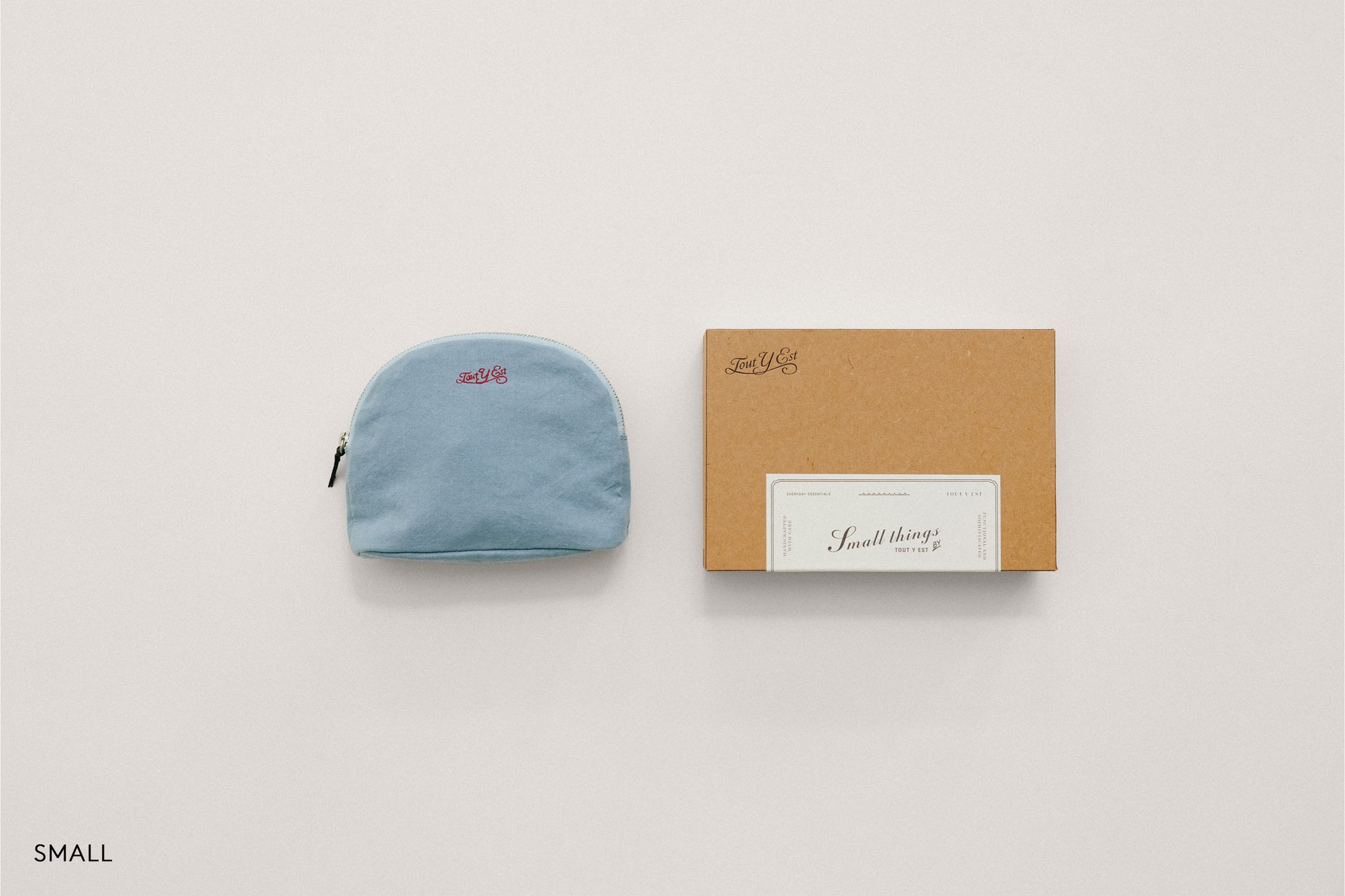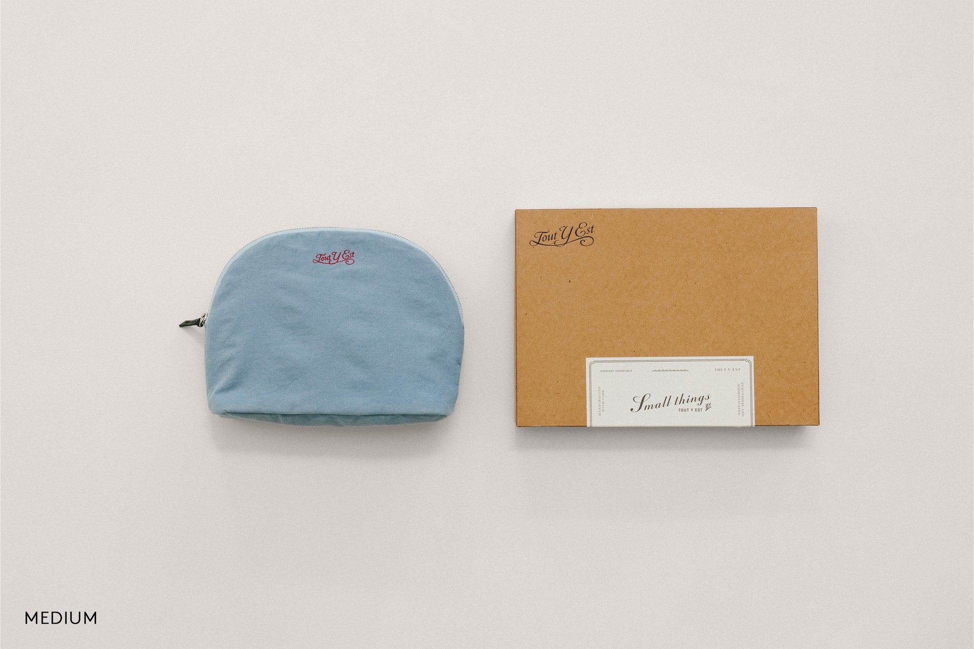 日常で必需品を手軽に整理して持ち運びに良い半月型のポーチです。柔らかいファスナーは革製ファスナープラー付きで使いやすく、内部にポケットがあるので散らばりやすい小さな小物もすっきりと収納できます。フラットではなく、適度な幅のある底面を持つ形状で収納力に優れています。前面にはトゥティエのロゴを刺繍で刻んでおり、表地と同じ素材で裏地を製作して完成度を高めました。