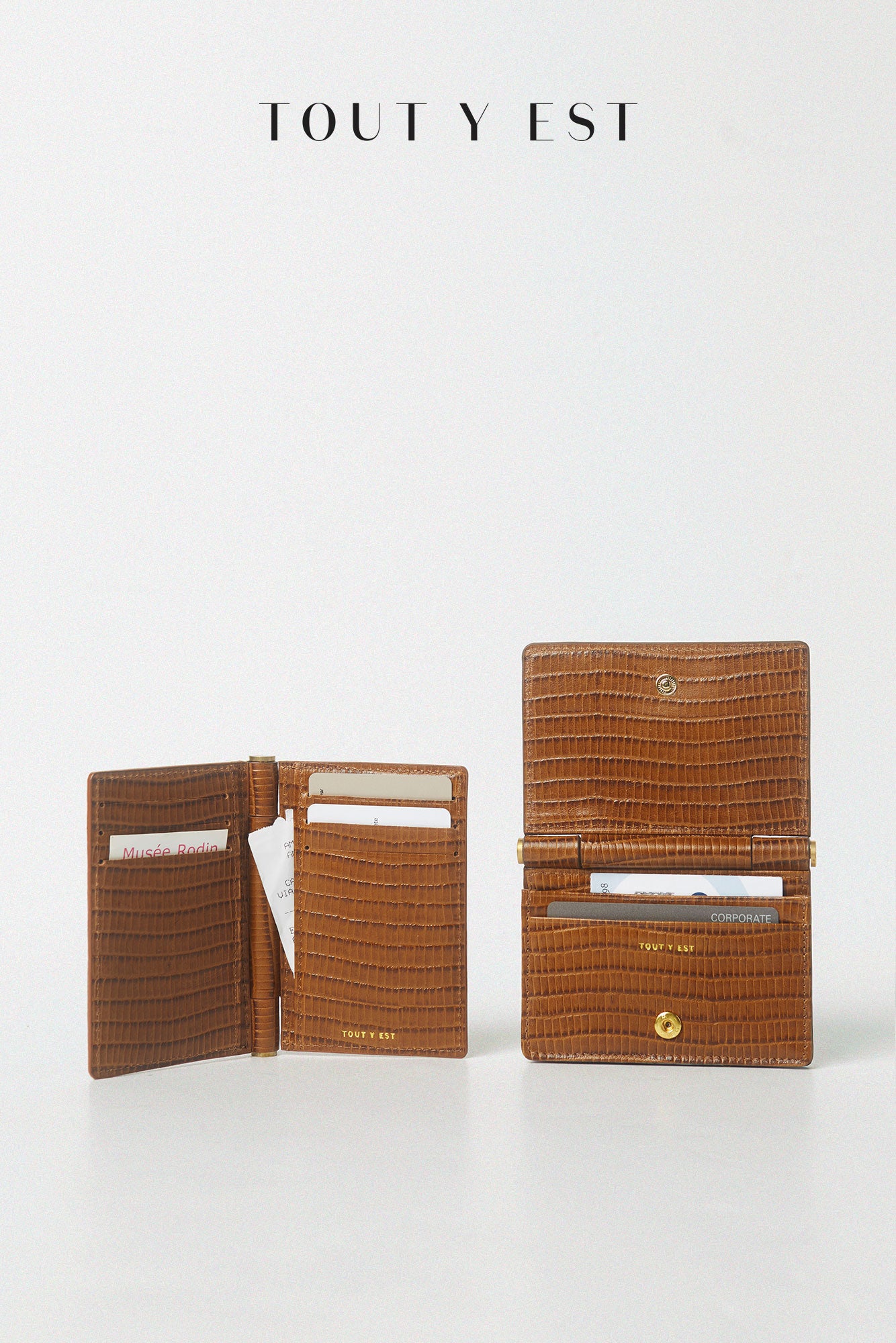 トゥティエの象徴的なブラスバー装飾を使用したポメル カードケースは、バーを中心に両方が回転する構造でカードの出し入れが簡単でタグ付けして使いやすいです。両側それぞれ4枚のカード収納が可能で、広い追加スロットを追加して紙幣や領収書などを入れて収納することができます。 軽くて丈夫な革と片手に収まるコンパクトなサイズ。トゥティエならではのシグネチャーデザインが盛り込まれたポメルカードケースをご覧ください。