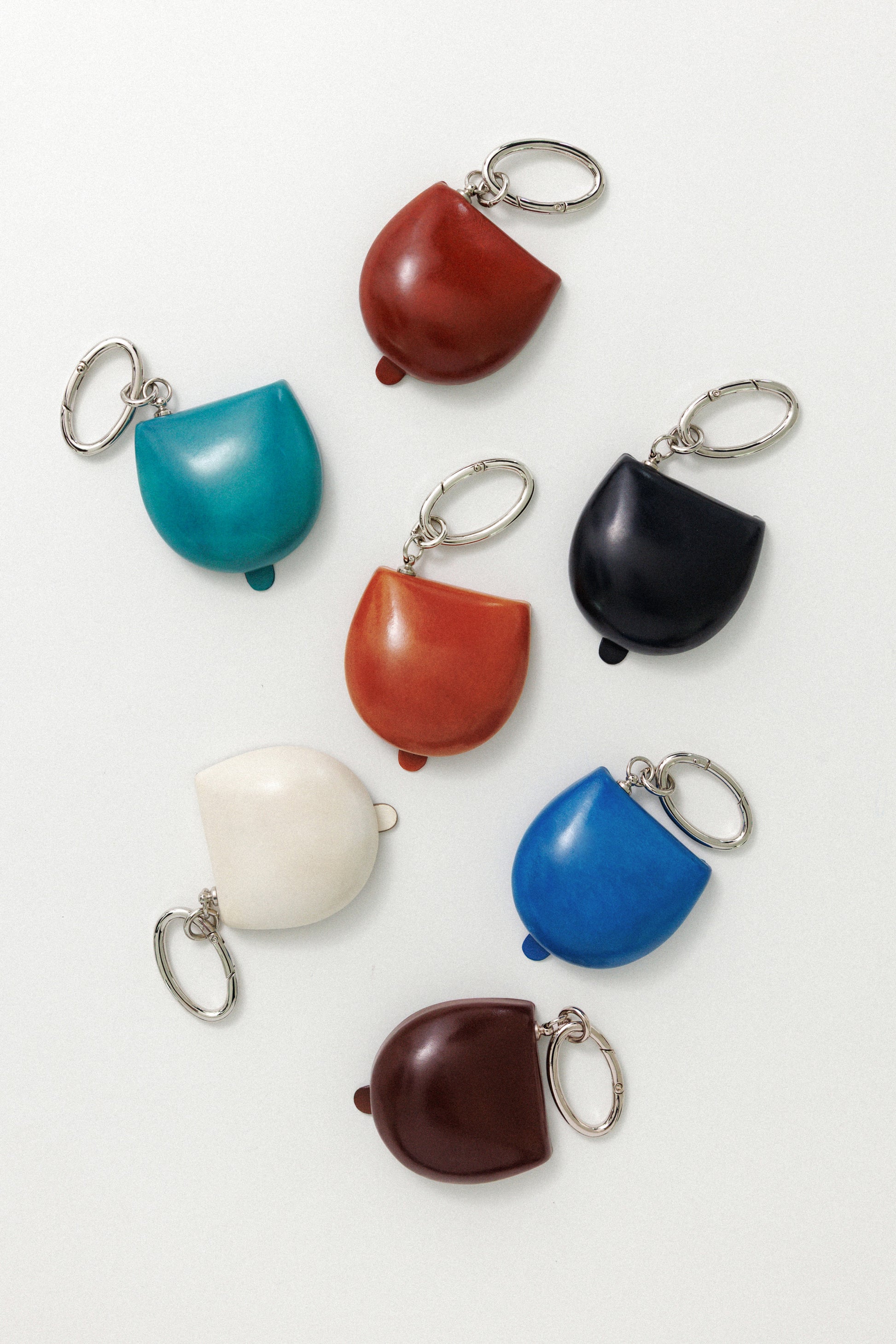滑らかな小石を連想させるフローレンスコイン財布は、片手に入るコンパクトな大きさに設計されています。 オーバルフック付きのキーリング状でバッグや服にも簡単に装着できます。 モールド工法の特徴である凸状のお財布の内部にはトゥティエのロゴ刻印を加え完成しました。