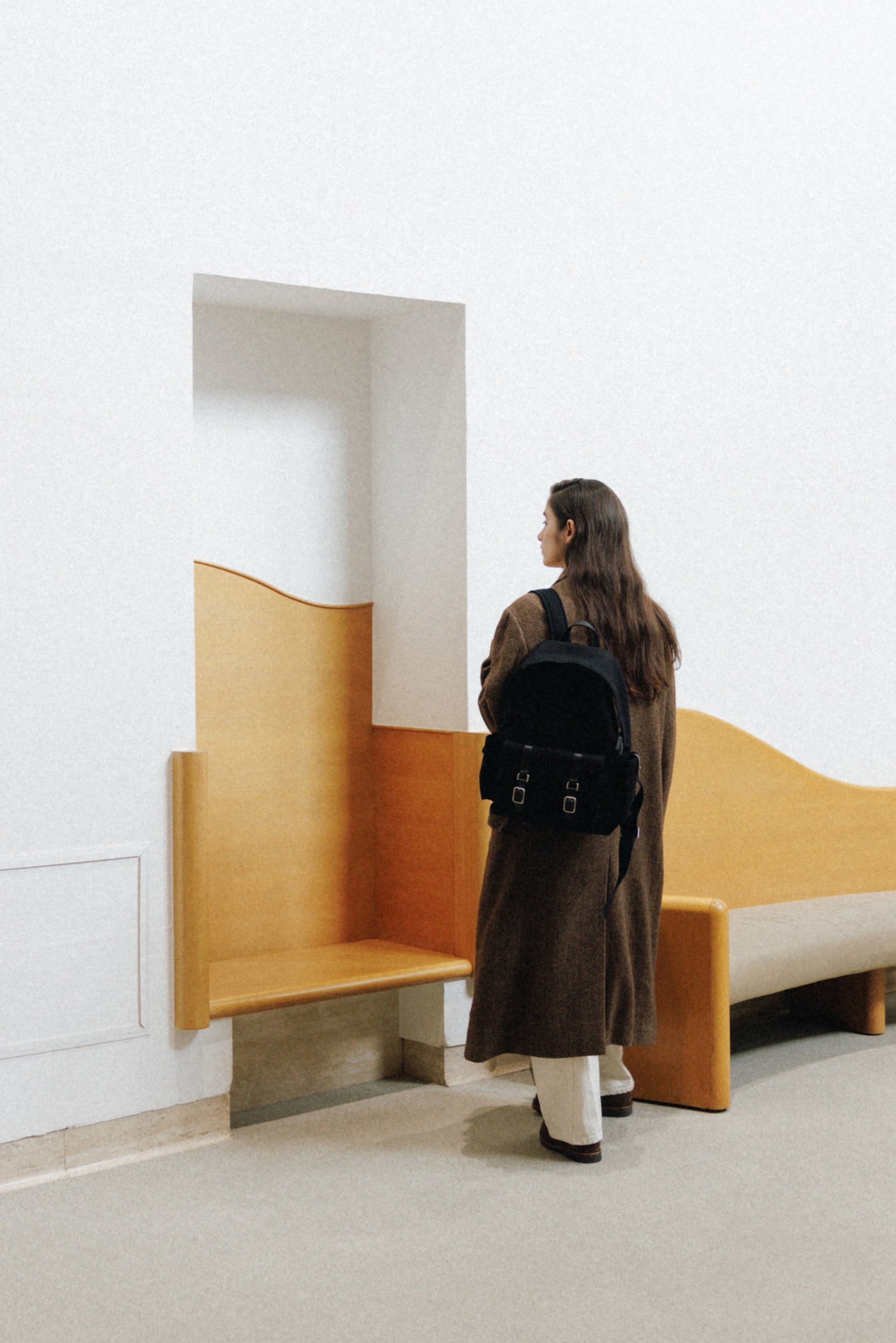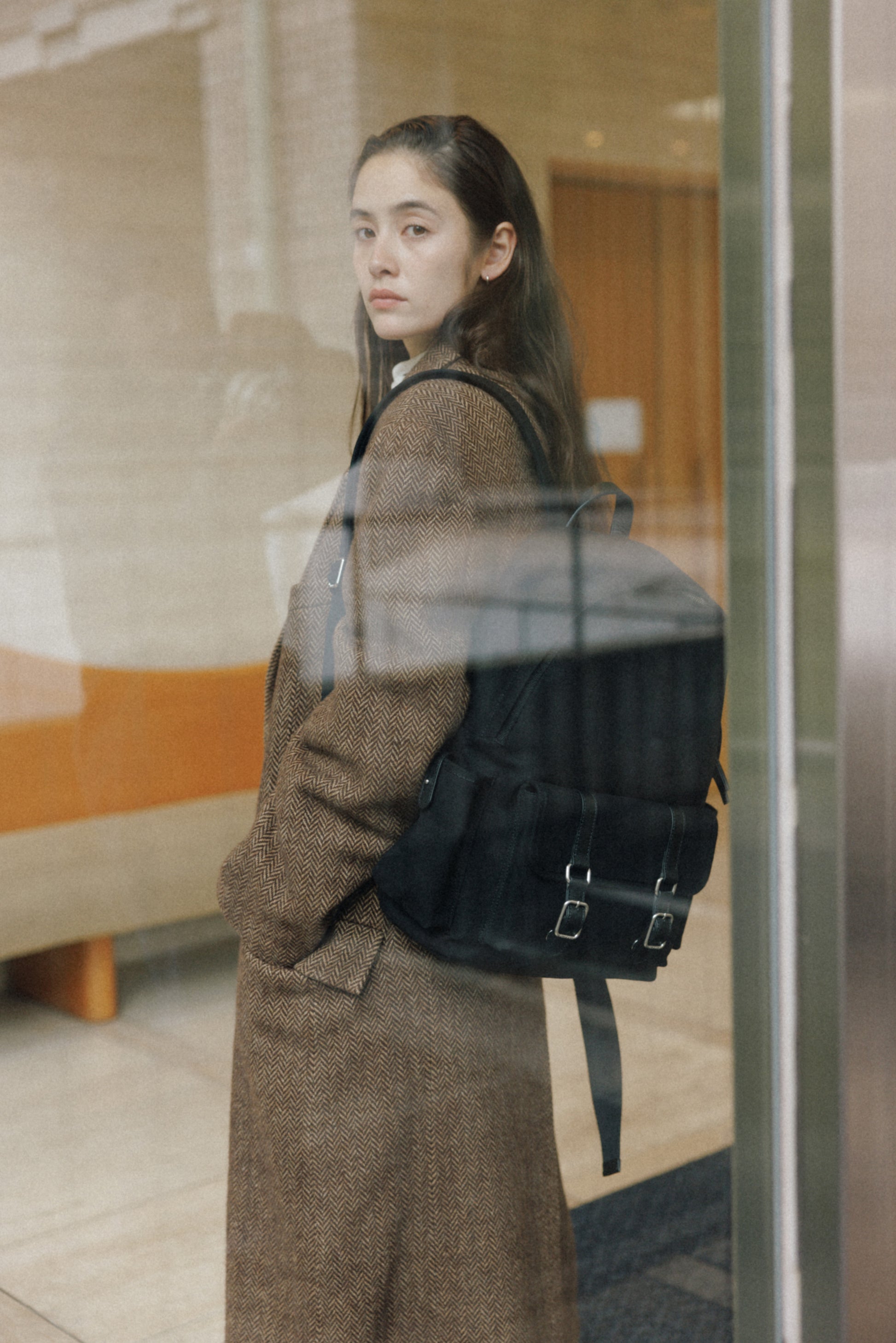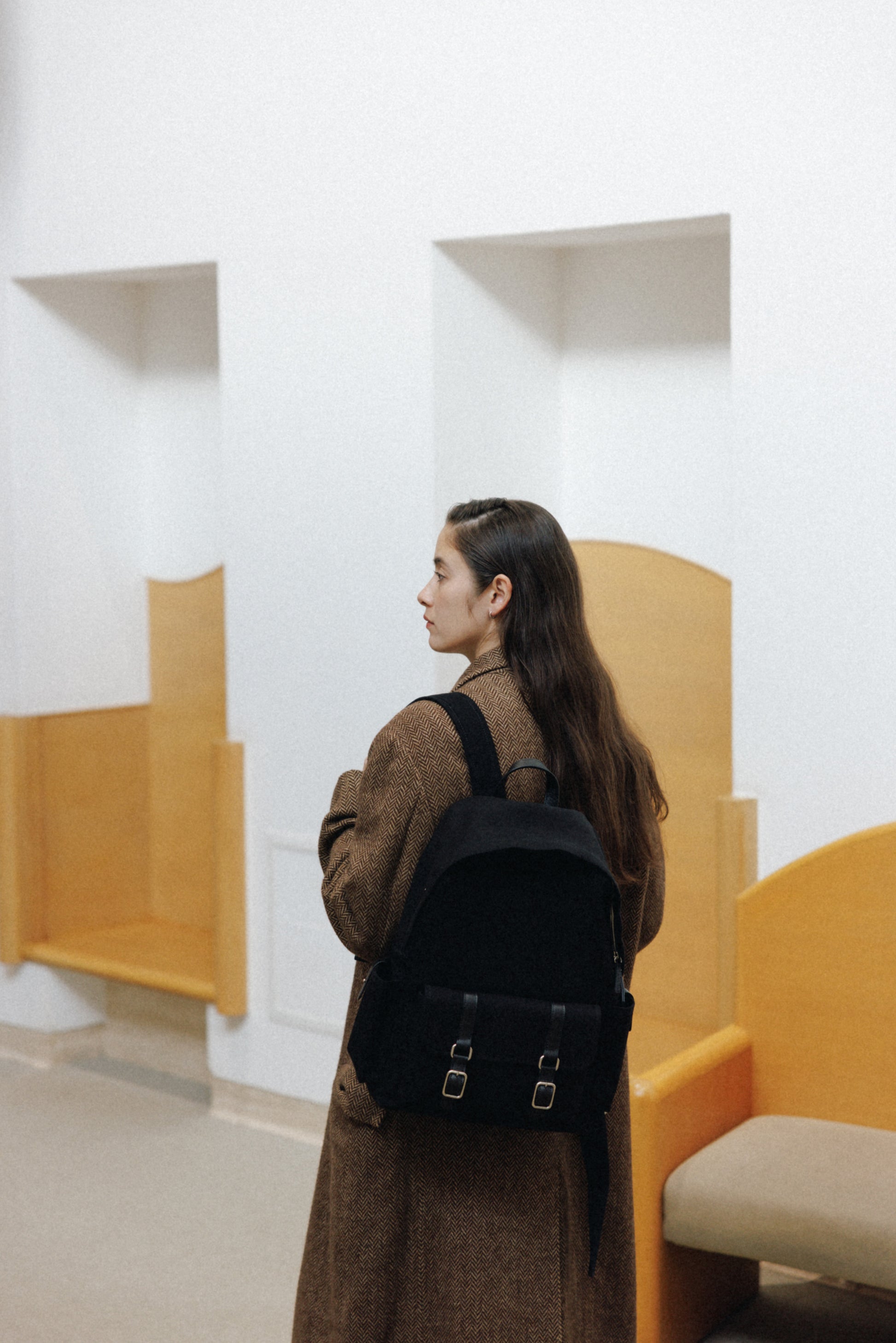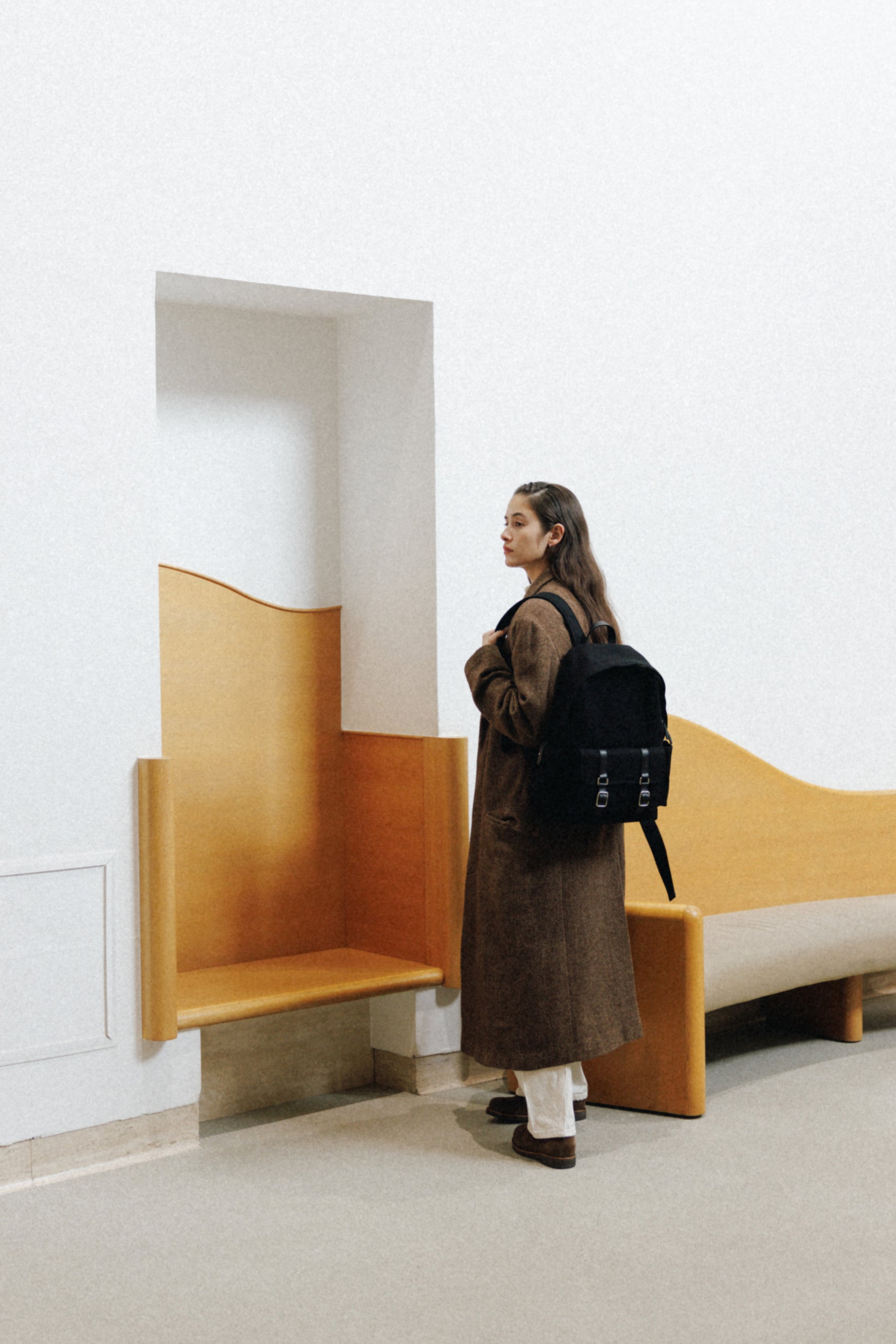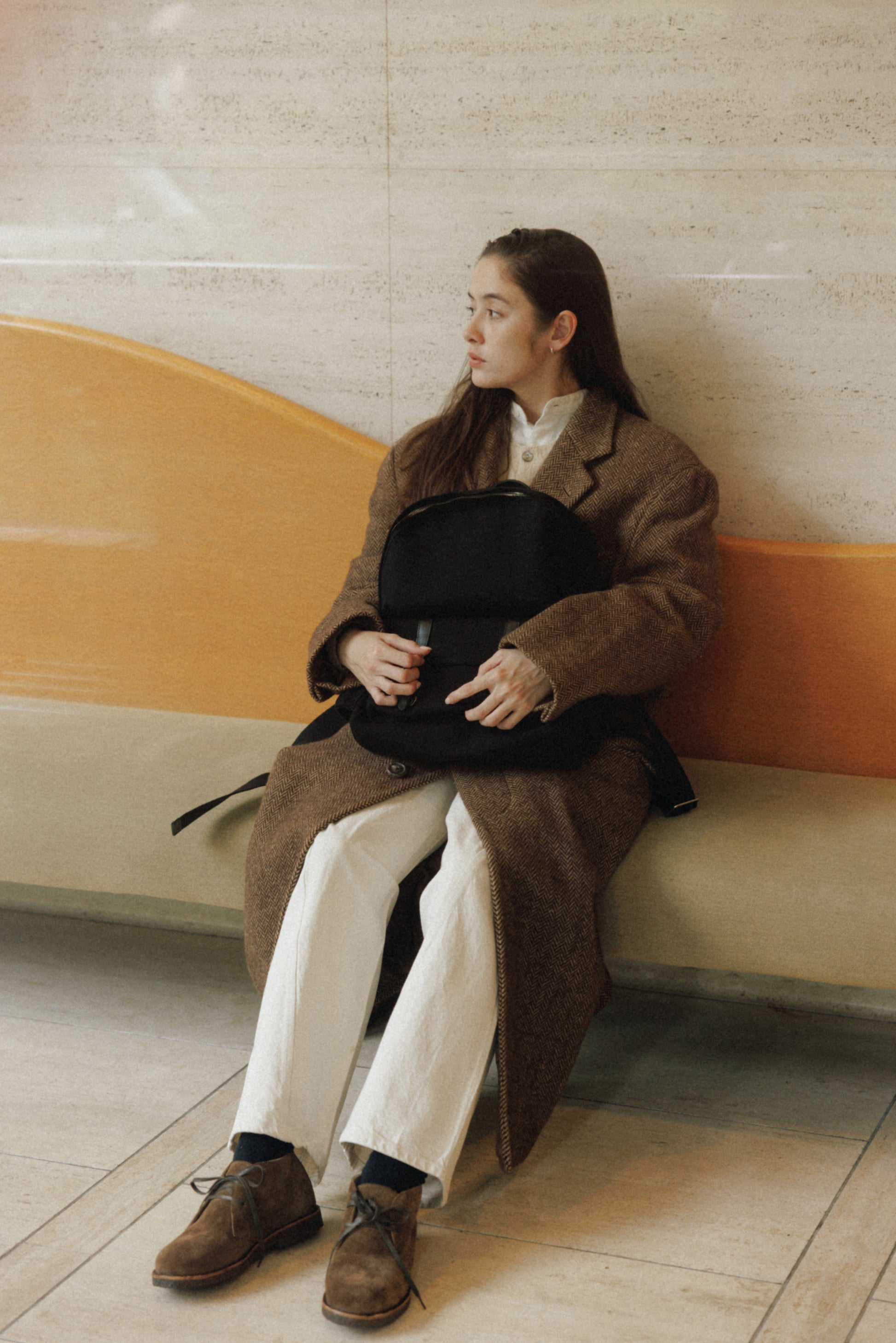 ブートシリーズのディテールを基に仕上げた、バックパックバージョンです。コットンキャンバスに部分的に牛革を組み合わせることで、全体に安定感のある構造を実現しました。フロントにはシリーズを象徴するバックルポケットを配し、両サイドには小物の収納に便利なポケットを備え、実用性を高めています。メイン収納部はジッパー仕様で、内側にはレザートリミングを施したジッパーポケットを含み、すっきりと整理して収納できます。ショルダーストラップは十分な厚みを持たせ、着用時の負担を軽減し、トップには手持ちしやすいレザーハンドルをあしらいました。