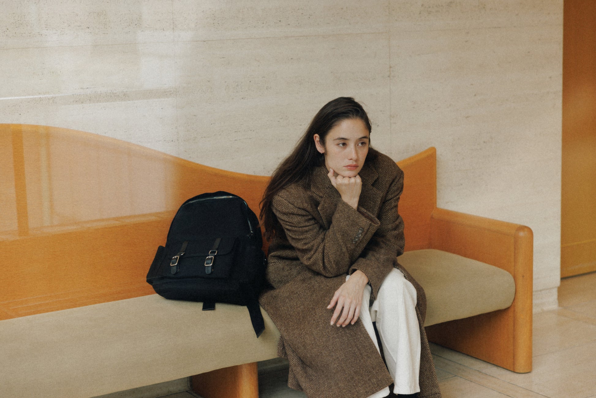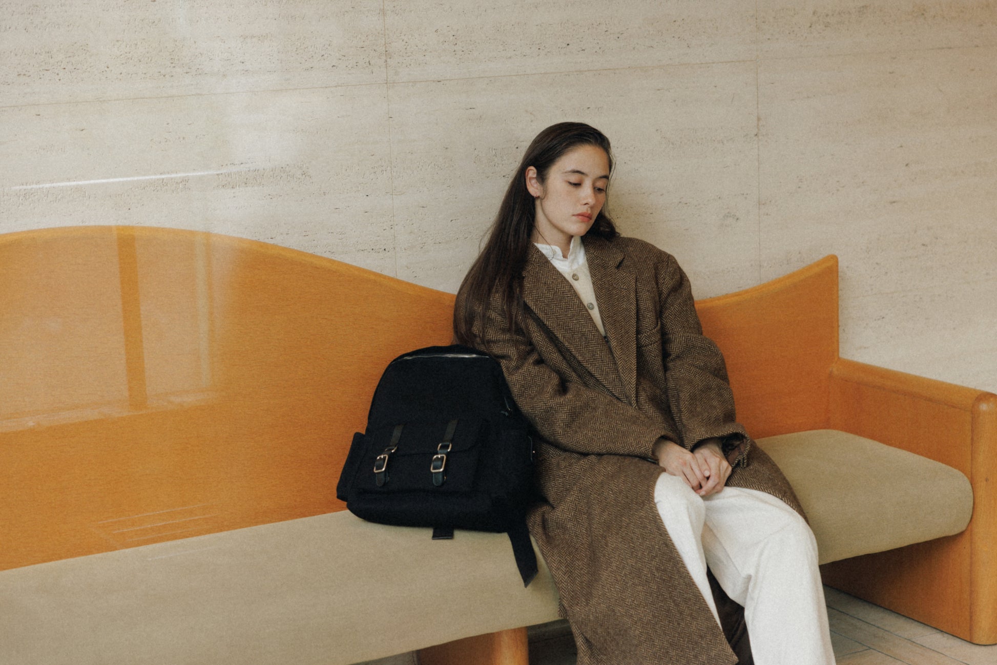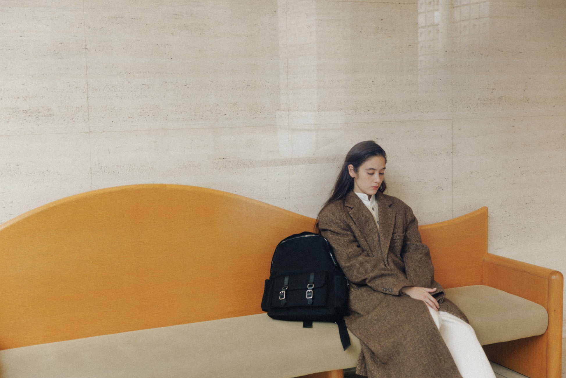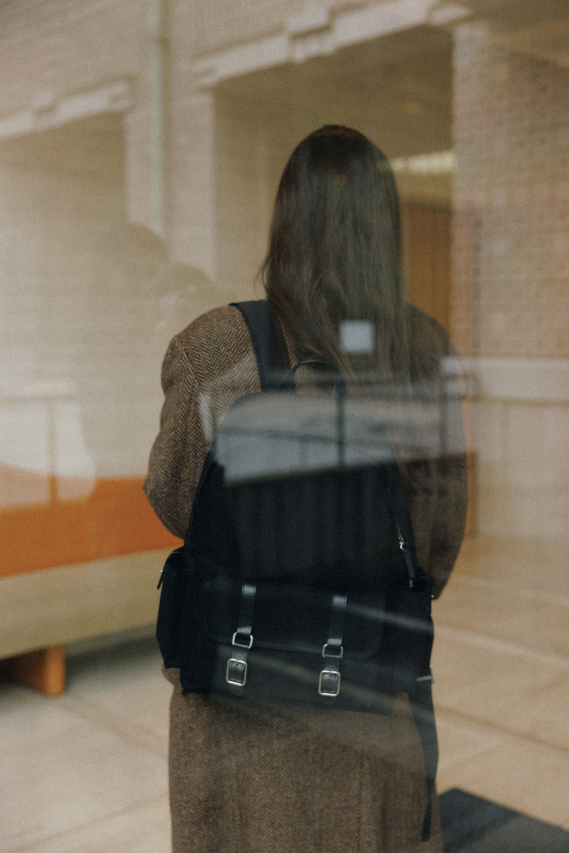 ブートシリーズのディテールを基に仕上げた、バックパックバージョンです。コットンキャンバスに部分的に牛革を組み合わせることで、全体に安定感のある構造を実現しました。フロントにはシリーズを象徴するバックルポケットを配し、両サイドには小物の収納に便利なポケットを備え、実用性を高めています。メイン収納部はジッパー仕様で、内側にはレザートリミングを施したジッパーポケットを含み、すっきりと整理して収納できます。ショルダーストラップは十分な厚みを持たせ、着用時の負担を軽減し、トップには手持ちしやすいレザーハンドルをあしらいました。