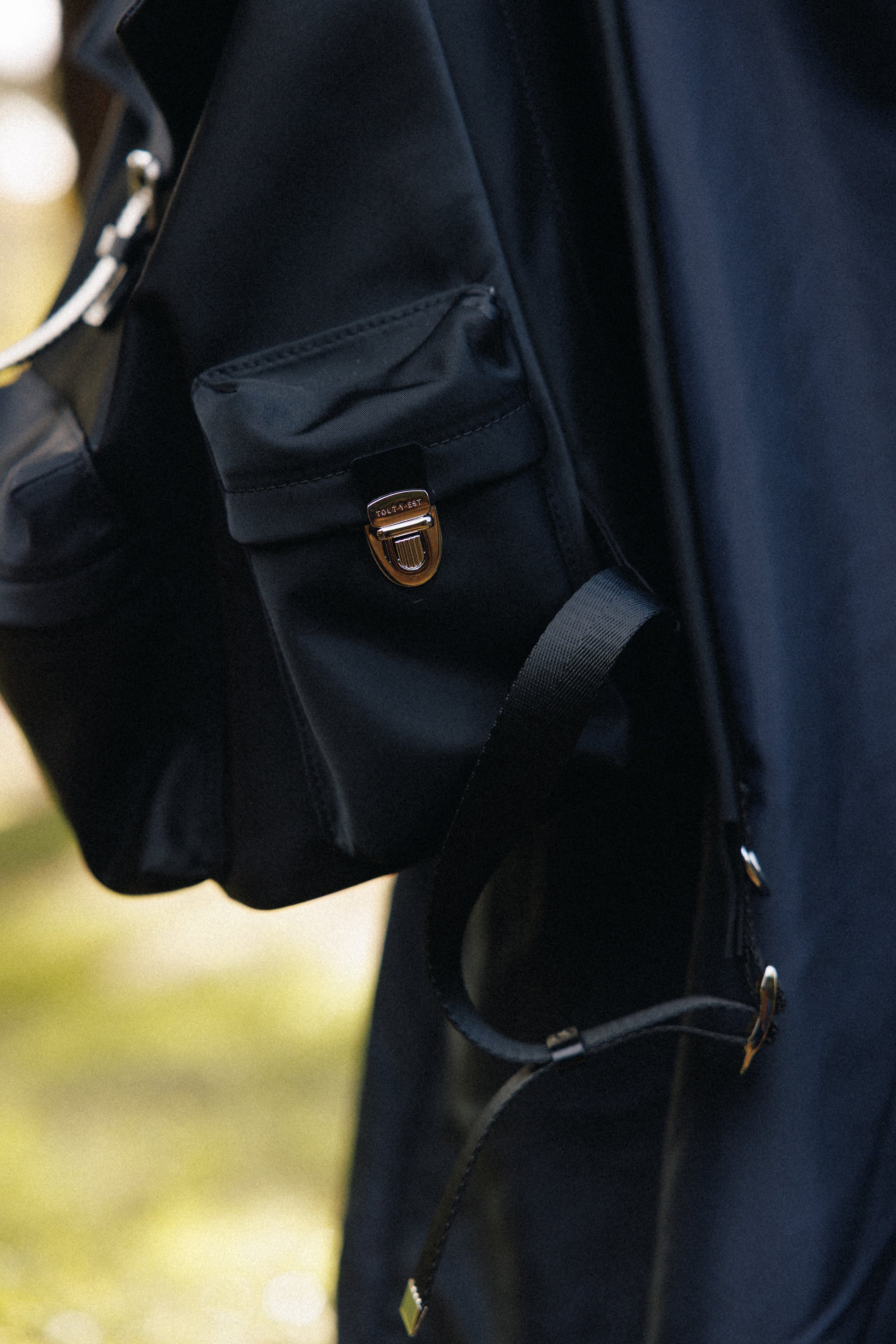 フラップはボレバッグのデザインを踏襲しつつ、ベルトバックルの装飾でアクセントを加え、実際の開閉はマグネット仕様でスムーズにお使いいただけます。フロントには大きめのジッパーポケットを配置し、両サイドポケットにはTOUT Y ESTのシグネチャーであるロック金具を施し、デザイン性と実用性を両立しました。内側にはノートパソコンの収納が可能なパーティションと補助ポケットを備え、持ち物を分けて整理できます。