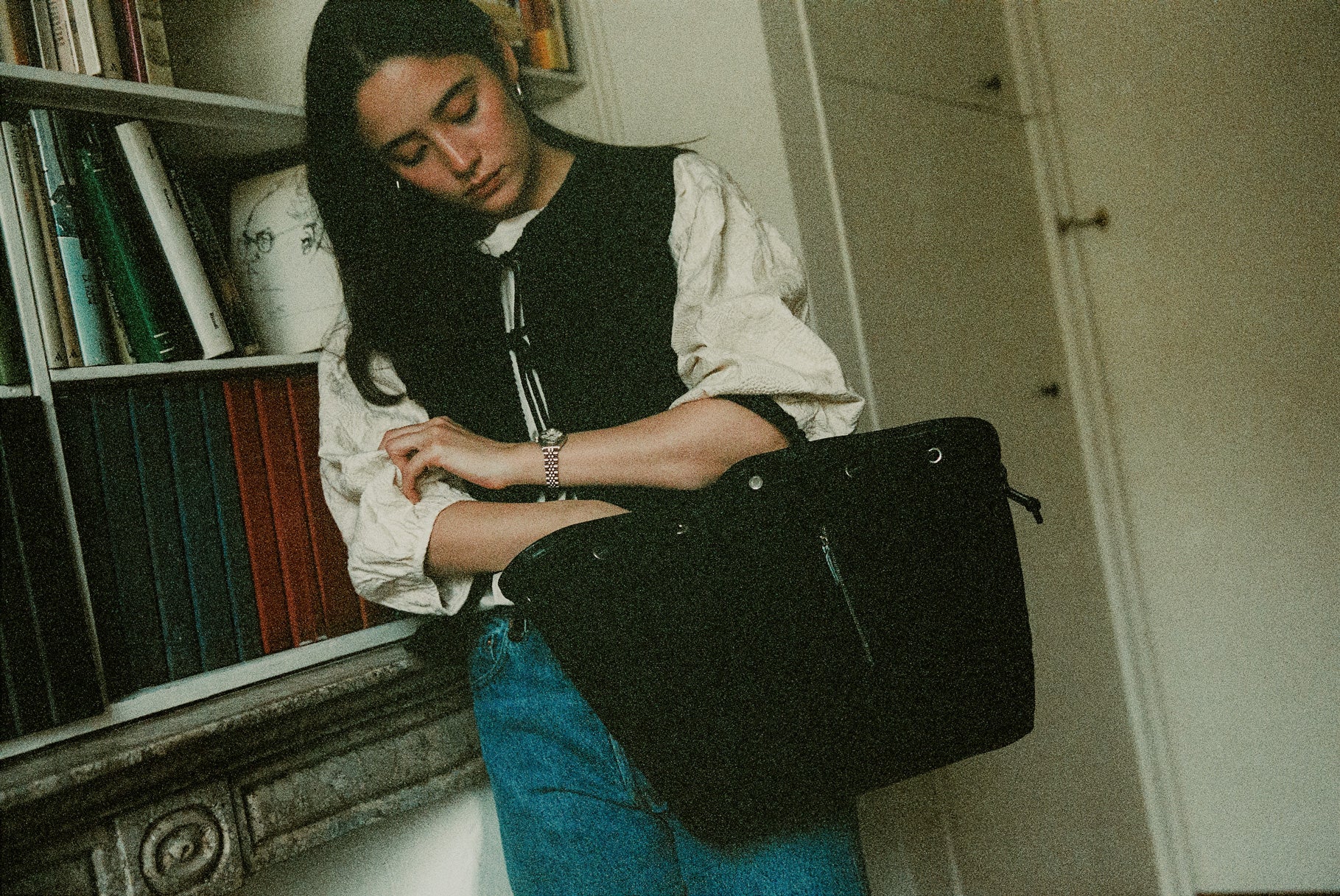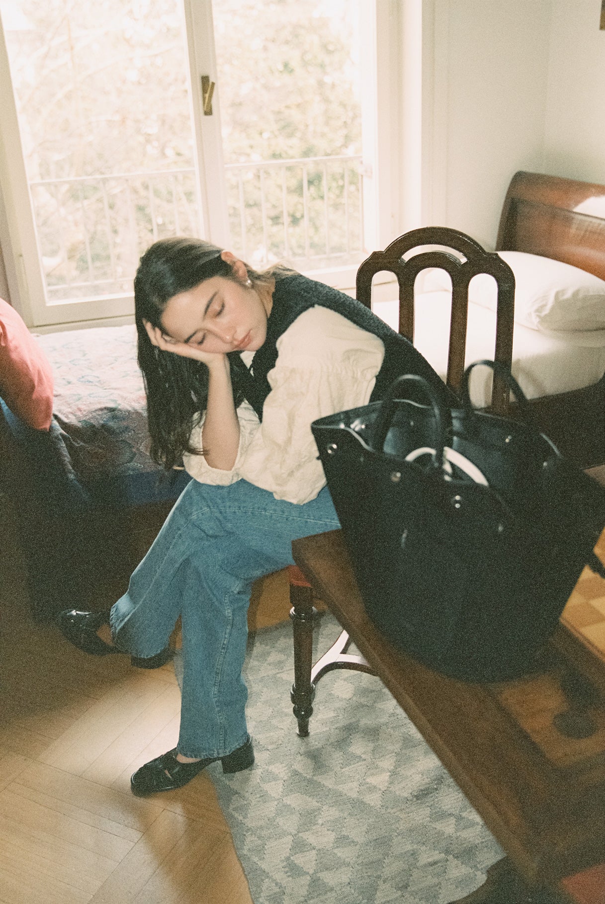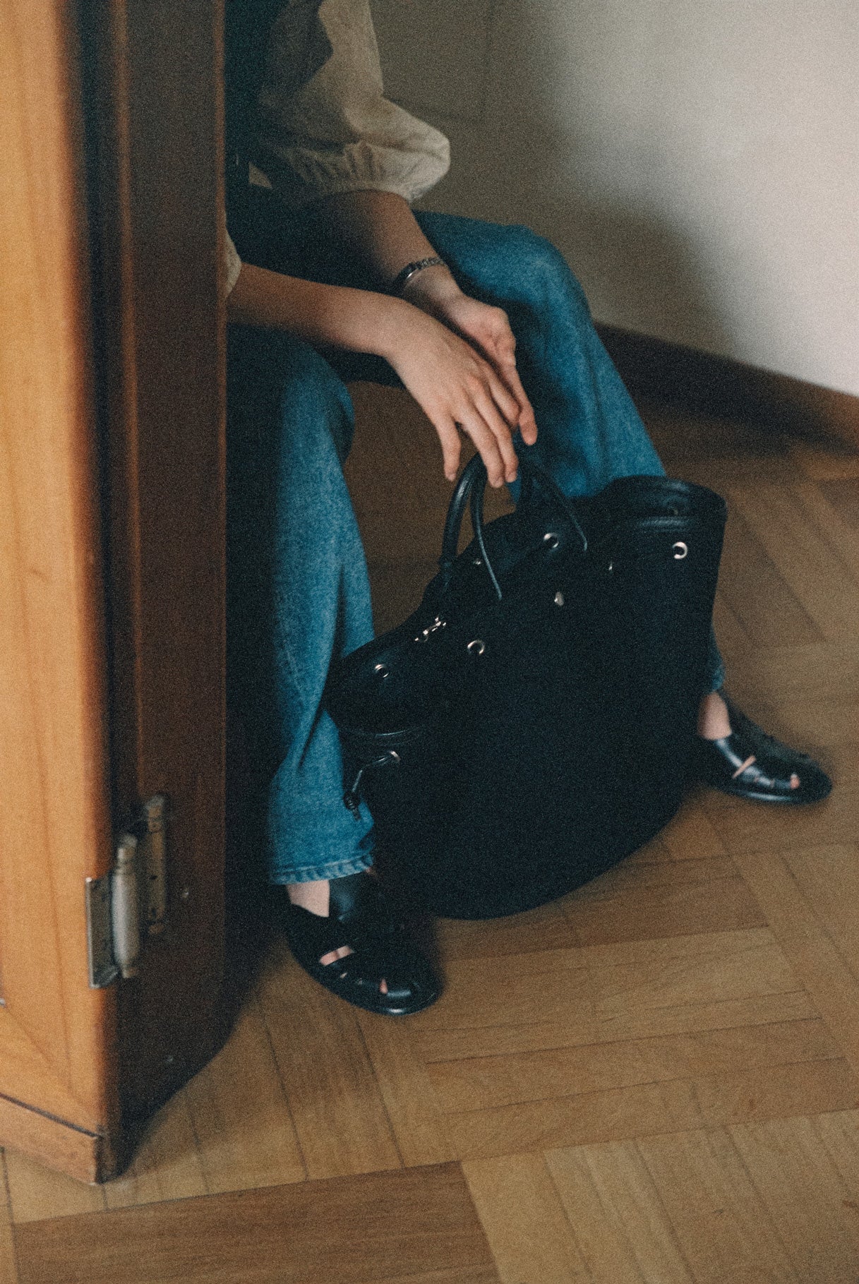 綿キャンバス素材に柔らかい羊革を加えて仕上げたショッパーバッグです。 coquilleはフランス語で貝殻を意味し、上部の革ストリングで自由に形の調節ができるカバンの特徴を盛り込んでいます。 持ち物が多いときは、広く広げてショッパーバッグ状に、あるいはストリングを締めてバケットバッグ状に使用できます。 中央にロゴスナップボタンが付いていてロックが可能です。 また、取り外しが可能なポーチを一緒に構成し、手がよく行く小さな持ち物の保管にも容易です。 柔らかく丸いストラップは所持品をたくさん入れても楽なグリップ感を提供し、丈夫な羊革で製作された下段はカバンを安定的に支えてくれます。