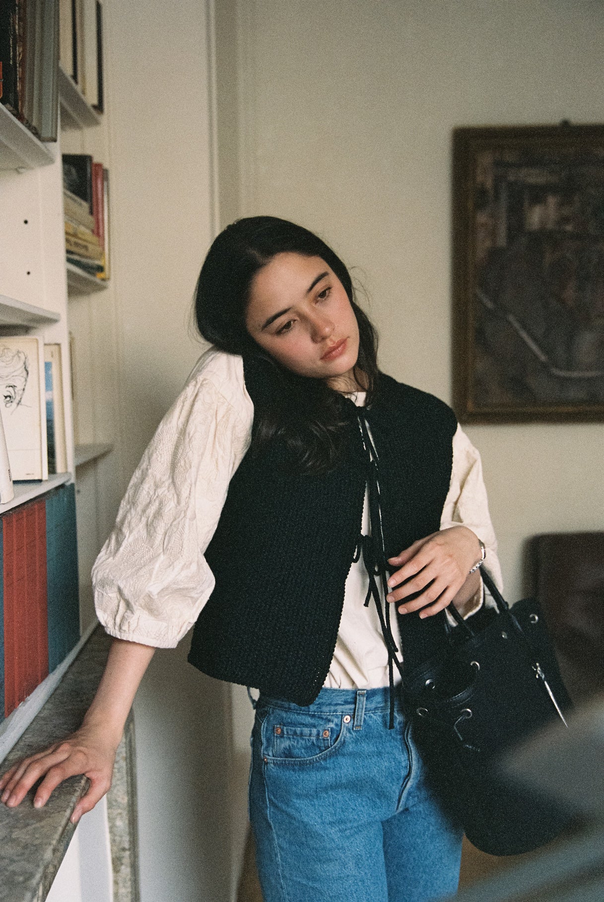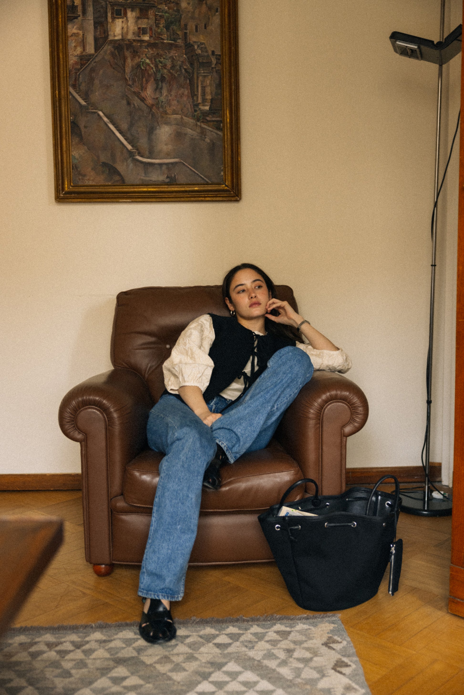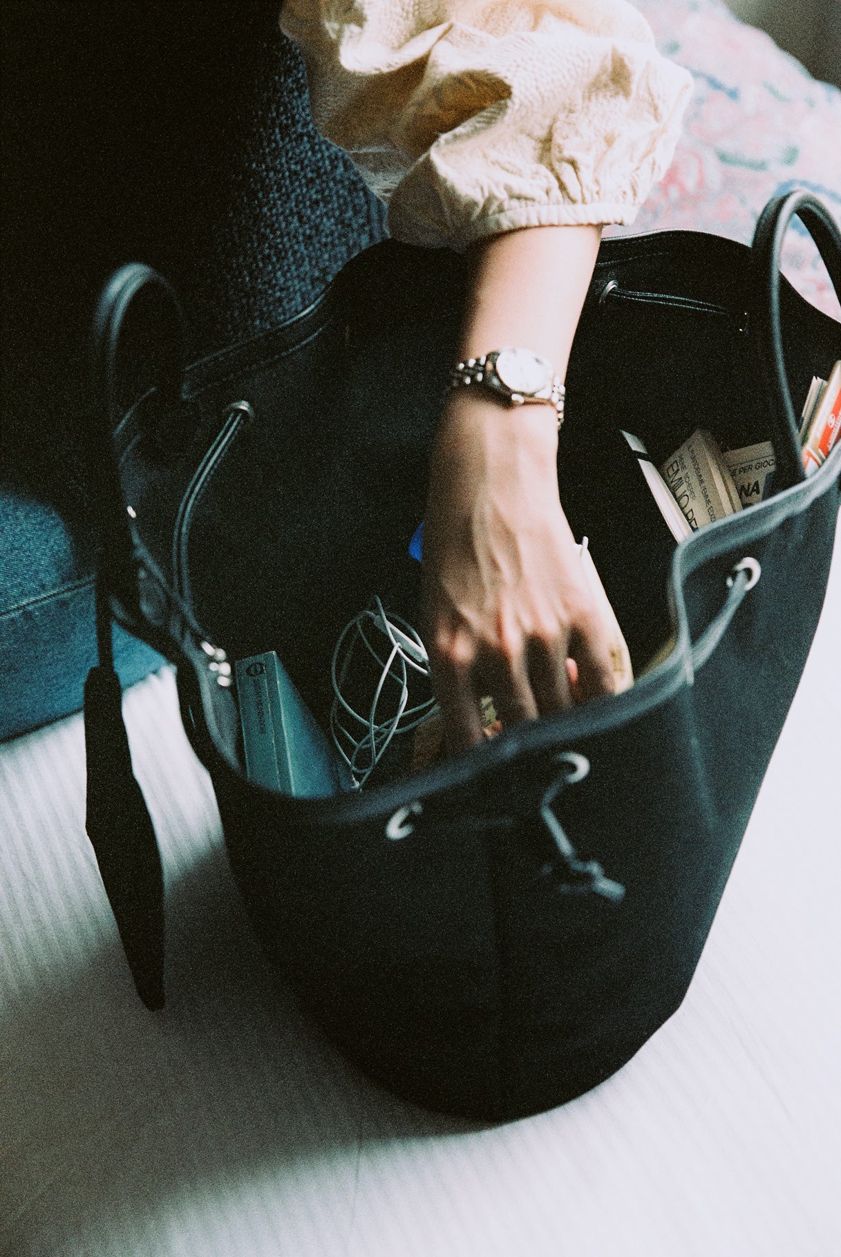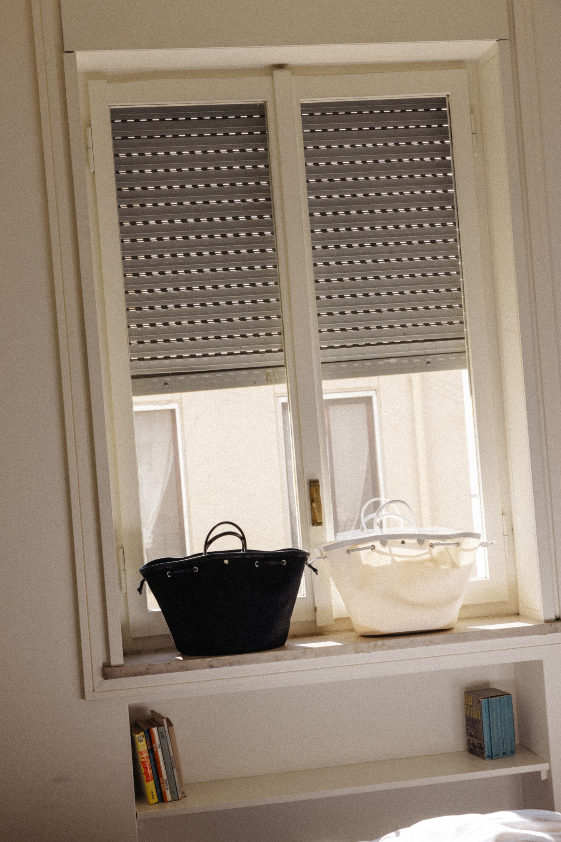 綿キャンバス素材に柔らかい羊革を加えて仕上げたショッパーバッグです。 coquilleはフランス語で貝殻を意味し、上部の革ストリングで自由に形の調節ができるカバンの特徴を盛り込んでいます。 持ち物が多いときは、広く広げてショッパーバッグ状に、あるいはストリングを締めてバケットバッグ状に使用できます。 中央にロゴスナップボタンが付いていてロックが可能です。 また、取り外しが可能なポーチを一緒に構成し、手がよく行く小さな持ち物の保管にも容易です。 柔らかく丸いストラップは所持品をたくさん入れても楽なグリップ感を提供し、丈夫な羊革で製作された下段はカバンを安定的に支えてくれます。