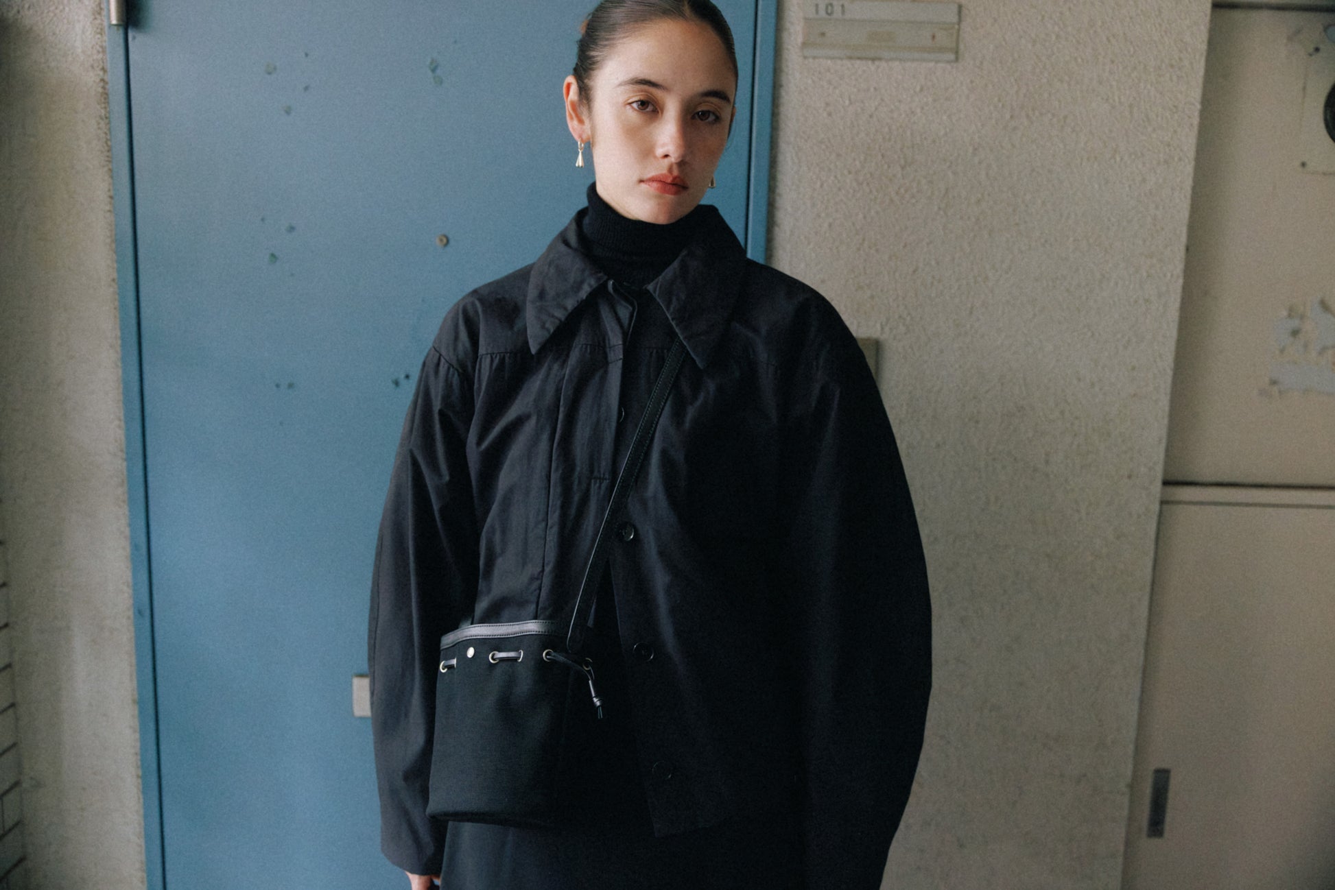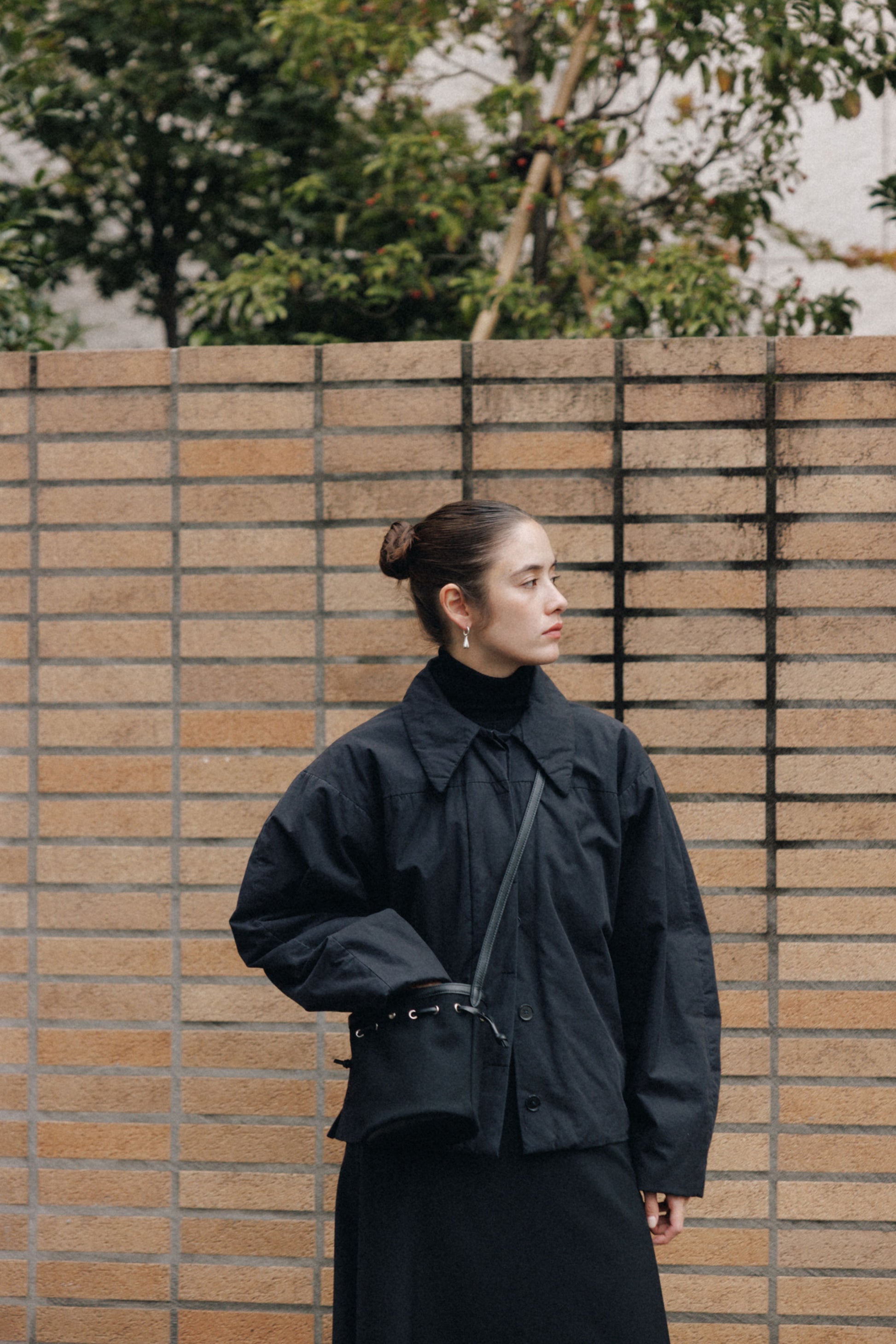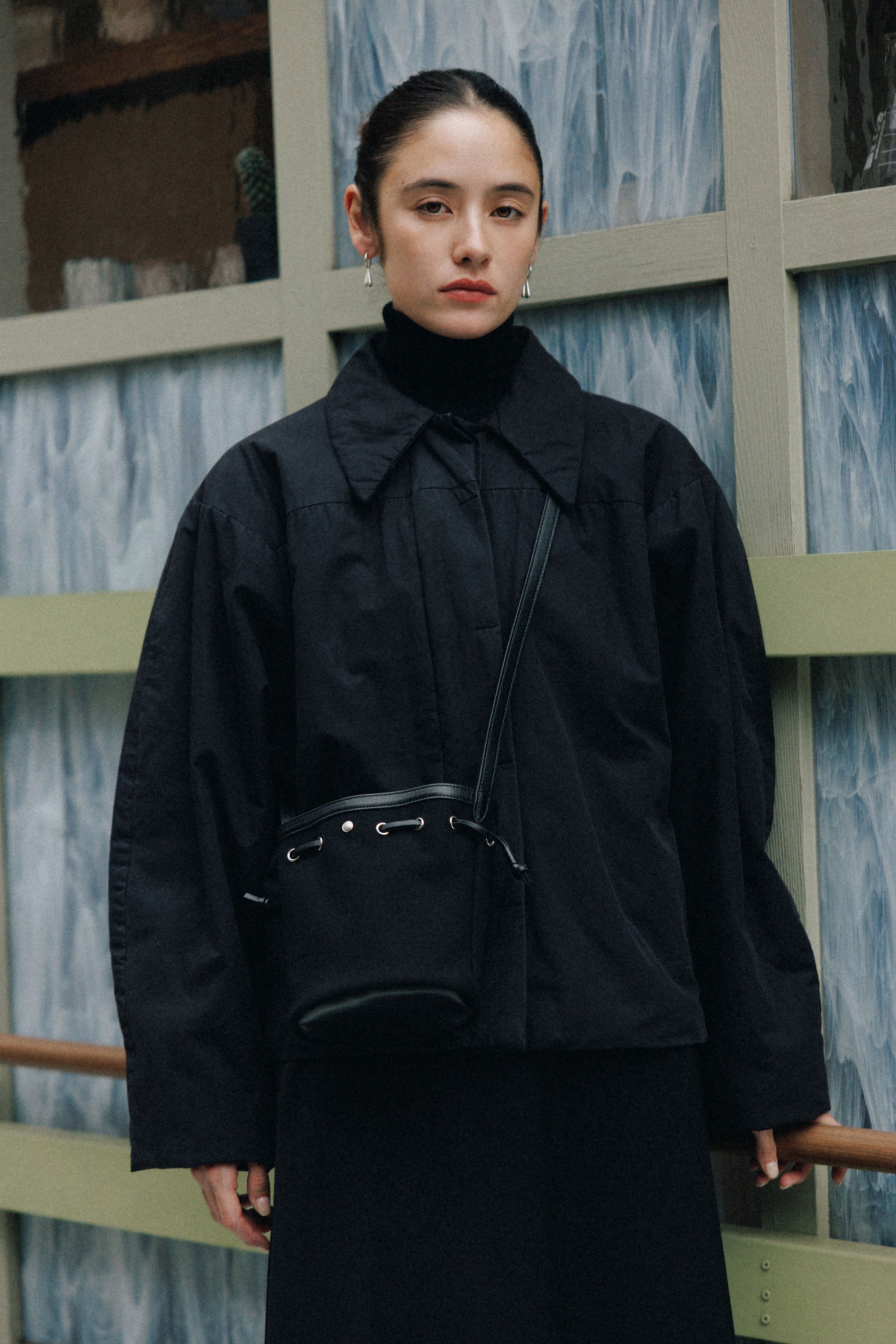 コットンキャンバスに柔らかな牛革を組み合わせて仕上げた、コキ バケットバッグのミニサイズです。"COQUILLE"はフランス語で“貝殻”を意味し、上部のレザーストリングでフォルムを自在に調整できるバッグの特徴を表しています。