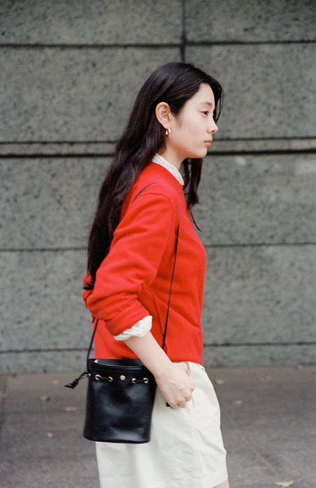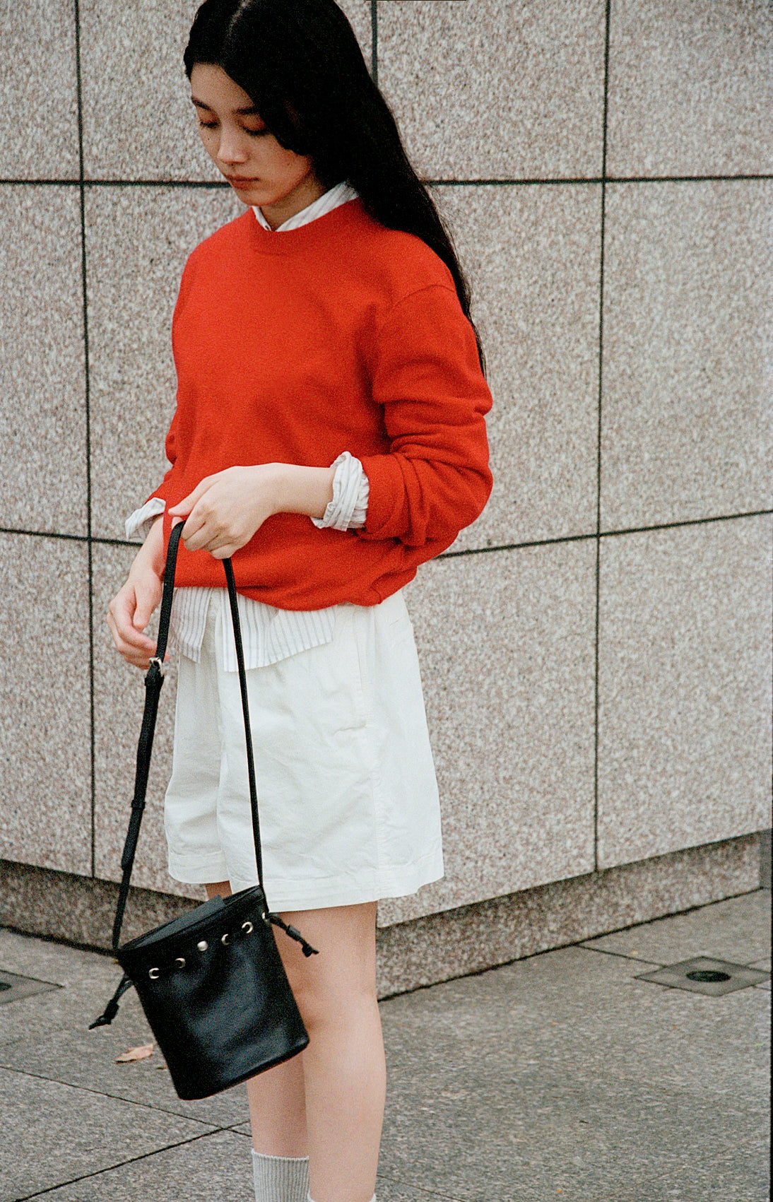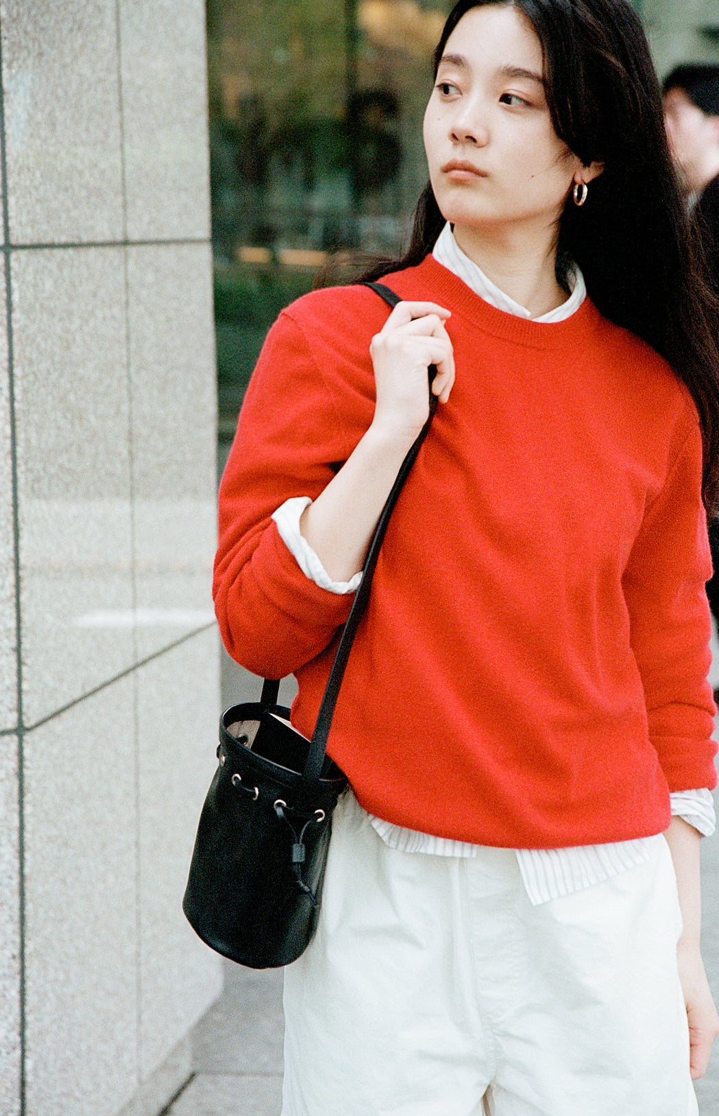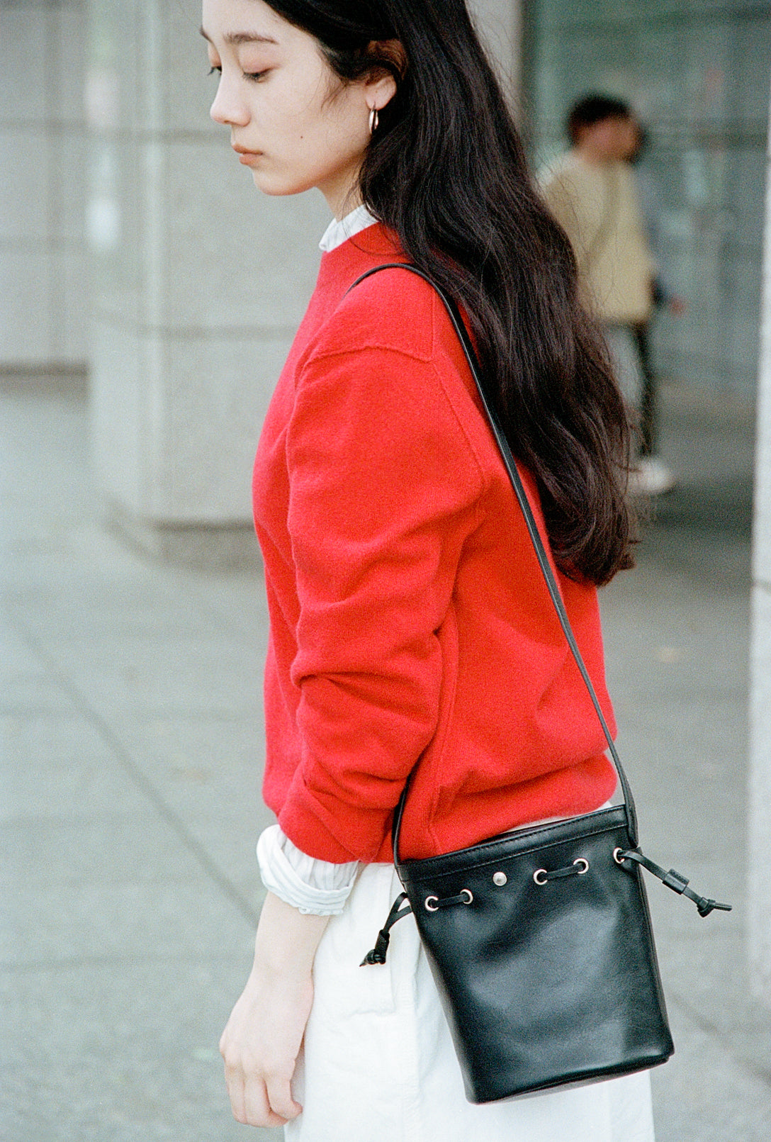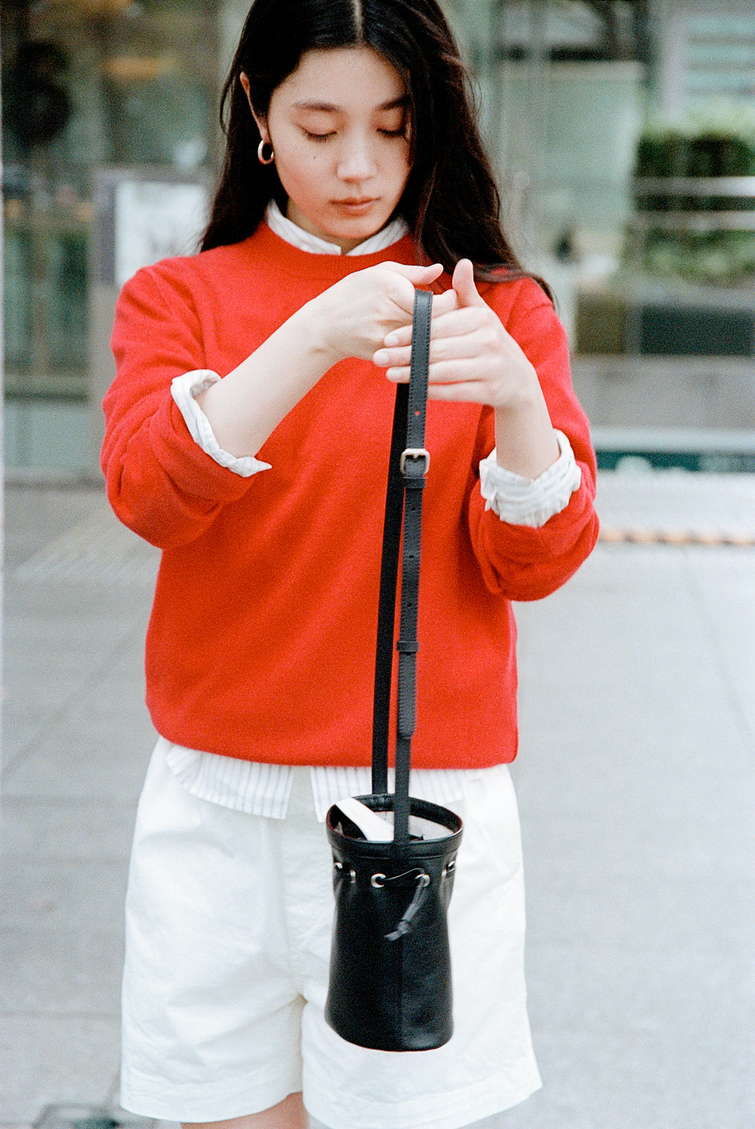 ‘COQUILLE’はフランス語で「貝殻」を意味し、上部のレザーストリングによってフォルムを自由に調整できるデザインが特徴です。長さ調節可能なストラップで、ショルダーおよびクロスボディの両方で着用可能です。取り外し可能なポーチが付属しており、よく使う小物の整理にも便利です。中央にはロゴ刻印入りのスナップボタンがあり、開閉が可能です。しっかりとした底面が型崩れを防ぎ、安定感のある使い心地を実現しています。