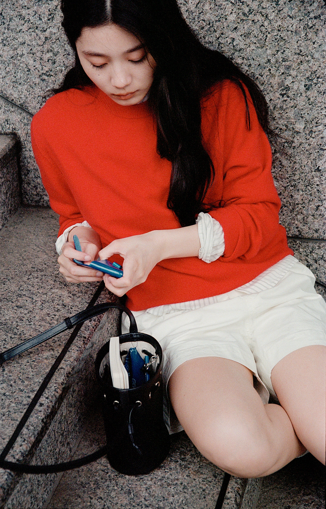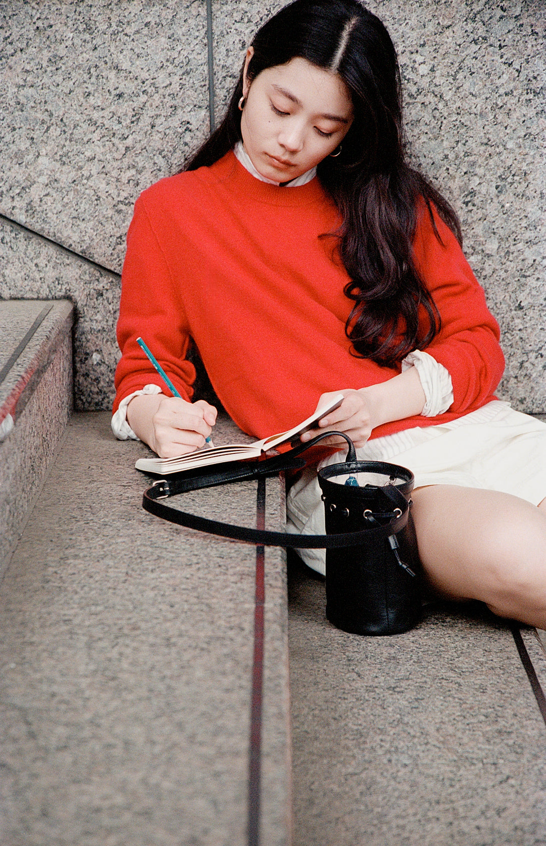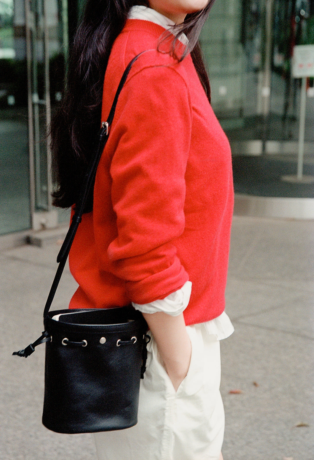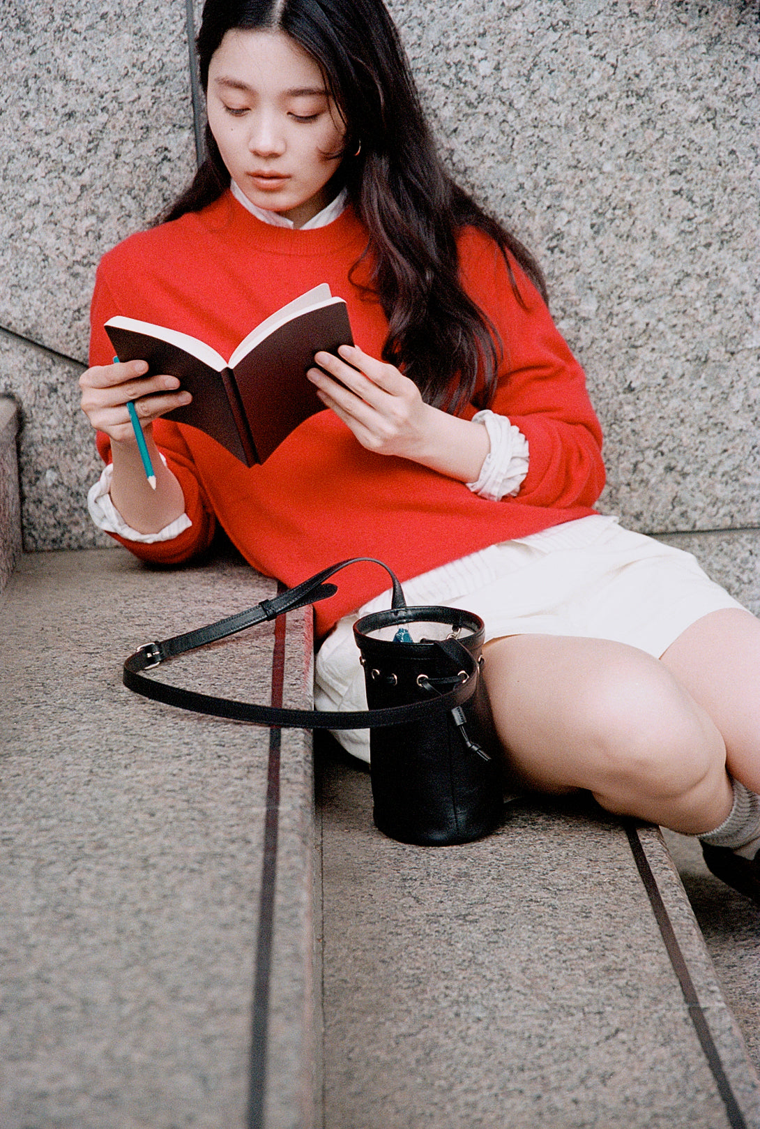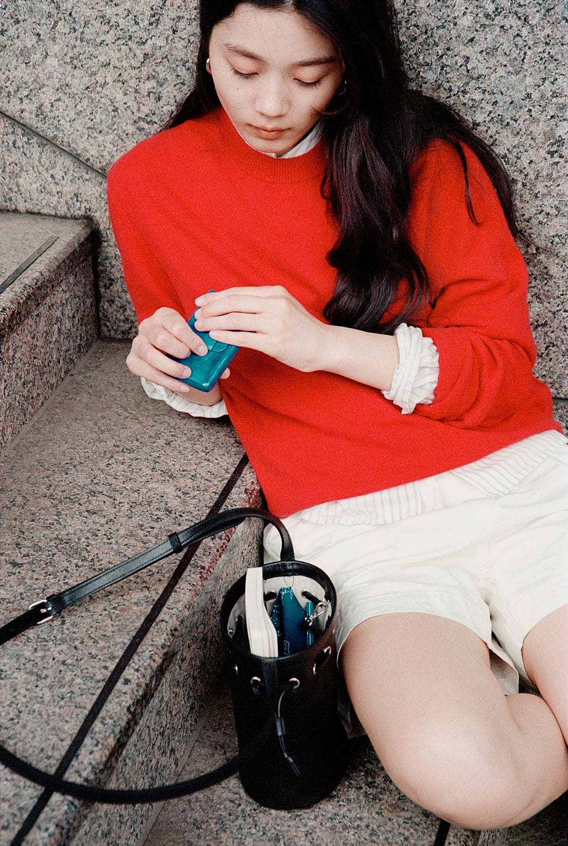 ‘COQUILLE’はフランス語で「貝殻」を意味し、上部のレザーストリングによってフォルムを自由に調整できるデザインが特徴です。長さ調節可能なストラップで、ショルダーおよびクロスボディの両方で着用可能です。取り外し可能なポーチが付属しており、よく使う小物の整理にも便利です。中央にはロゴ刻印入りのスナップボタンがあり、開閉が可能です。しっかりとした底面が型崩れを防ぎ、安定感のある使い心地を実現しています。