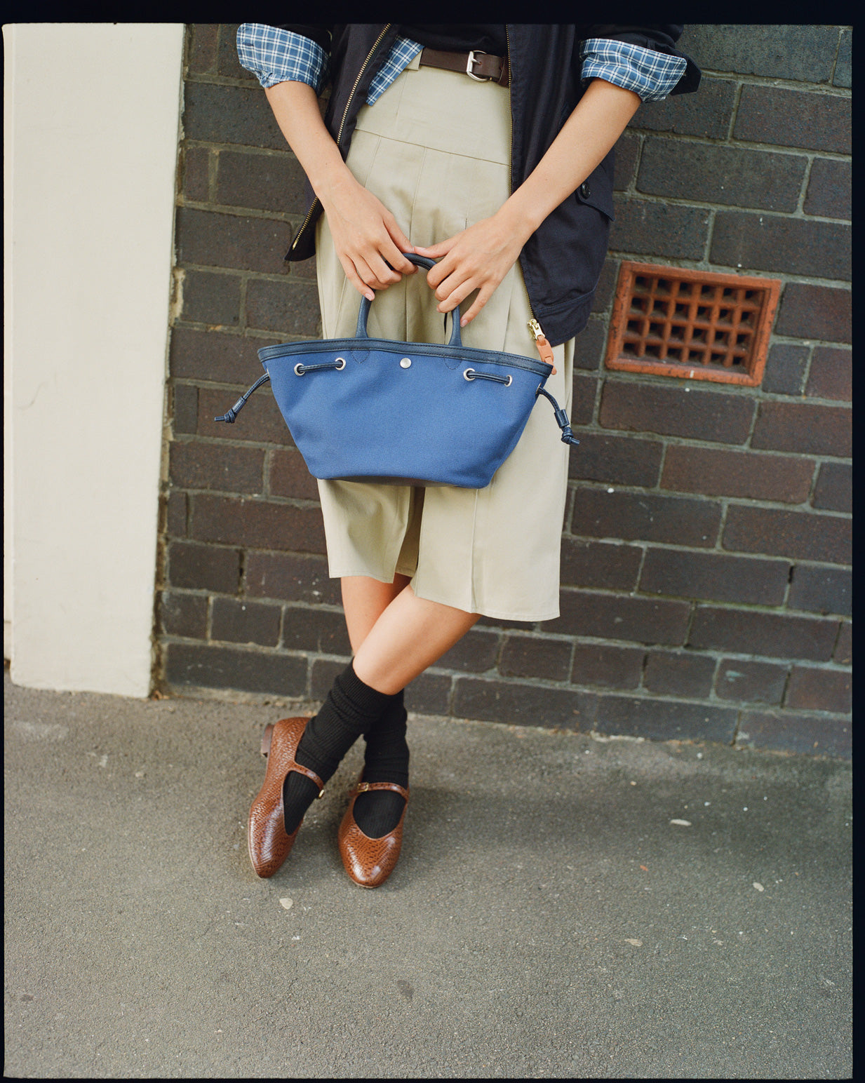 綿キャンバス素材に柔らかい羊革を加えて仕上げたショッパーバッグです。 coquilleはフランス語で貝殻を意味し、上部の革ストリングで自由に形の調節ができるカバンの特徴を盛り込んでいます。 持ち物が多いときは、広く広げてショッパーバッグ状に、あるいはストリングを締めてバケットバッグ状に使用できます。 中央にロゴスナップボタンが付いていてロックが可能です。 また、取り外しが可能なポーチを一緒に構成し、手がよく行く小さな持ち物の保管にも容易です。 柔らかく丸いストラップは所持品をたくさん入れても楽なグリップ感を提供し、丈夫な羊革で製作された下段はカバンを安定的に支えてくれます。