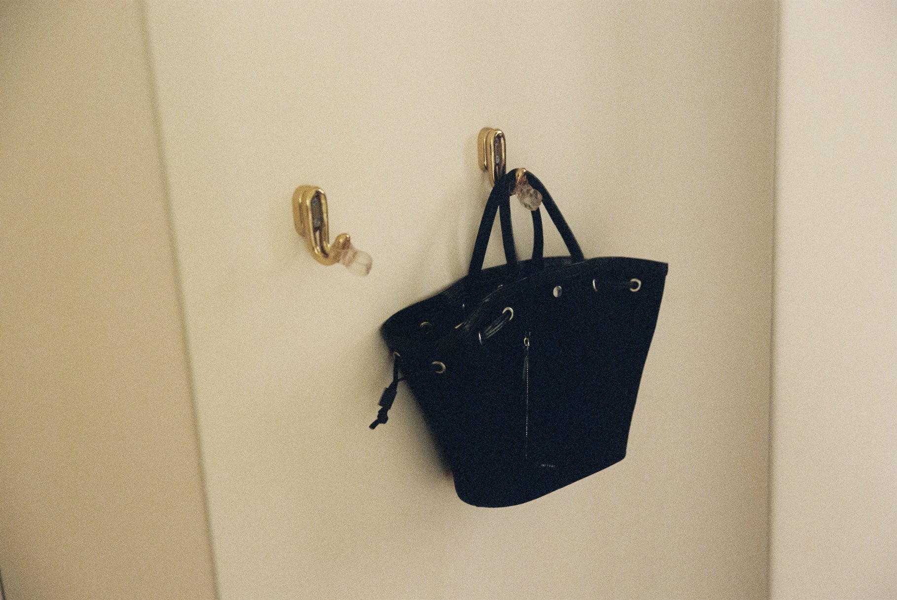 綿キャンバス素材に柔らかい羊革を加えて仕上げたショッパーバッグです。 coquilleはフランス語で貝殻を意味し、上部の革ストリングで自由に形の調節ができるカバンの特徴を盛り込んでいます。 持ち物が多いときは、広く広げてショッパーバッグ状に、あるいはストリングを締めてバケットバッグ状に使用できます。 中央にロゴスナップボタンが付いていてロックが可能です。 また、取り外しが可能なポーチを一緒に構成し、手がよく行く小さな持ち物の保管にも容易です。 柔らかく丸いストラップは所持品をたくさん入れても楽なグリップ感を提供し、丈夫な羊革で製作された下段はカバンを安定的に支えてくれます。