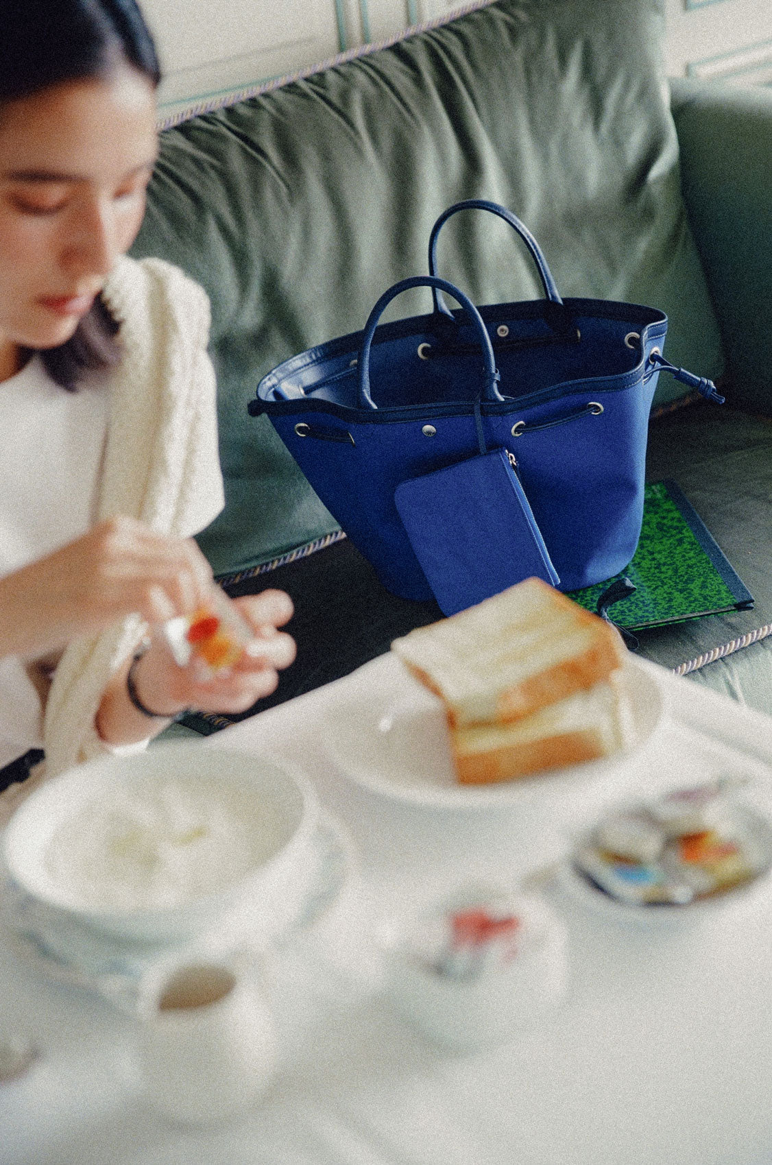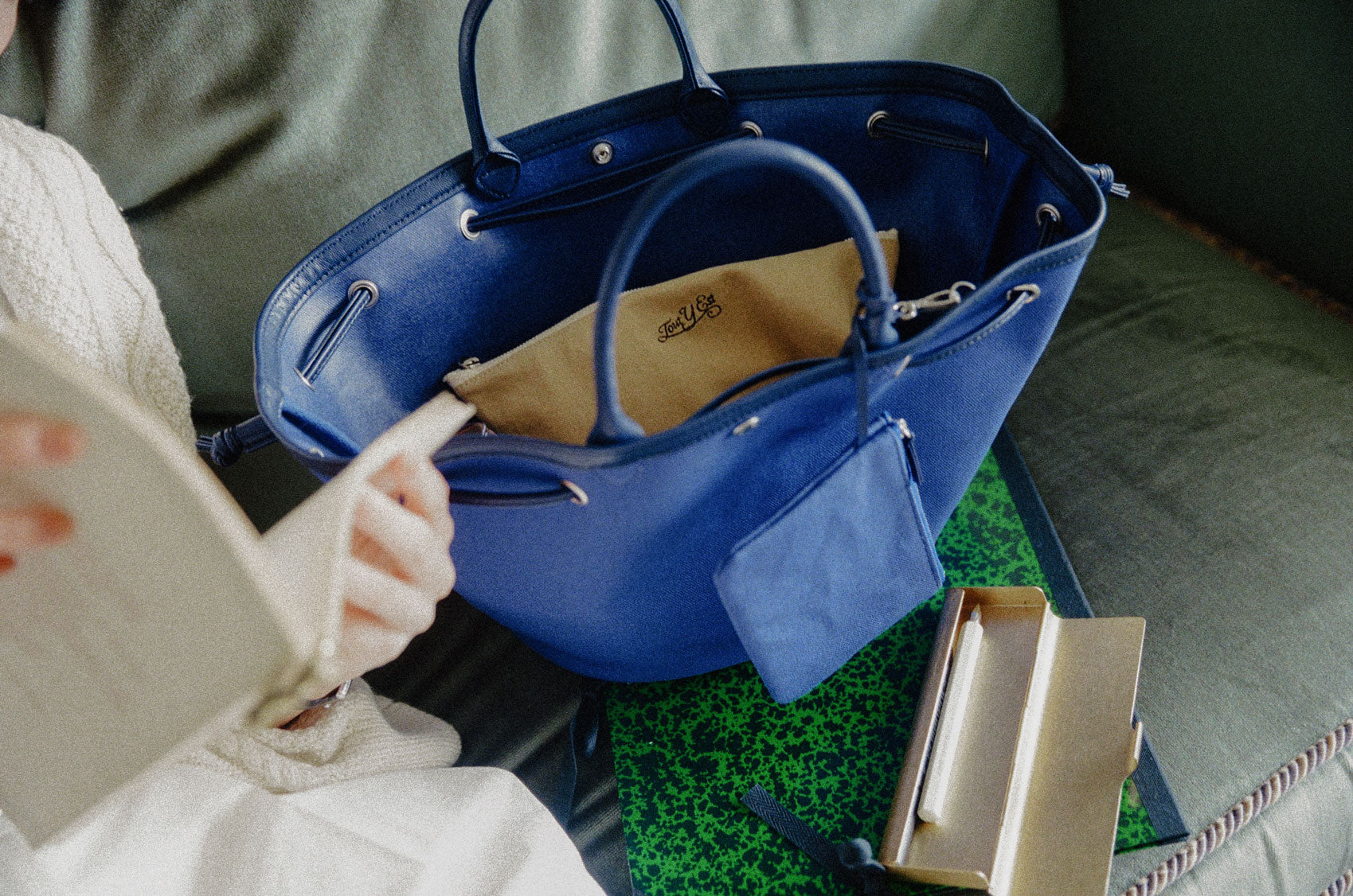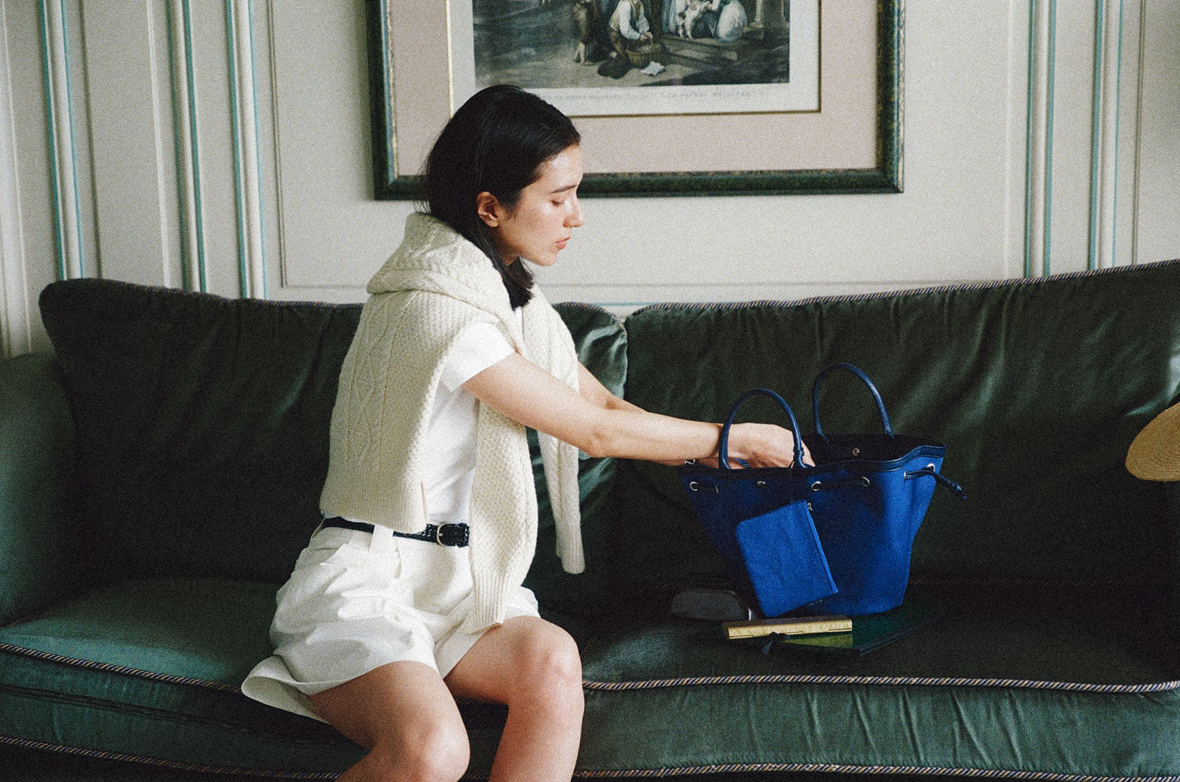 綿キャンバス素材に柔らかい羊革を加えて仕上げたショッパーバッグです。 coquilleはフランス語で貝殻を意味し、上部の革ストリングで自由に形の調節ができるカバンの特徴を盛り込んでいます。 持ち物が多いときは、広く広げてショッパーバッグ状に、あるいはストリングを締めてバケットバッグ状に使用できます。 中央にロゴスナップボタンが付いていてロックが可能です。 また、取り外しが可能なポーチを一緒に構成し、手がよく行く小さな持ち物の保管にも容易です。 柔らかく丸いストラップは所持品をたくさん入れても楽なグリップ感を提供し、丈夫な羊革で製作された下段はカバンを安定的に支えてくれます。