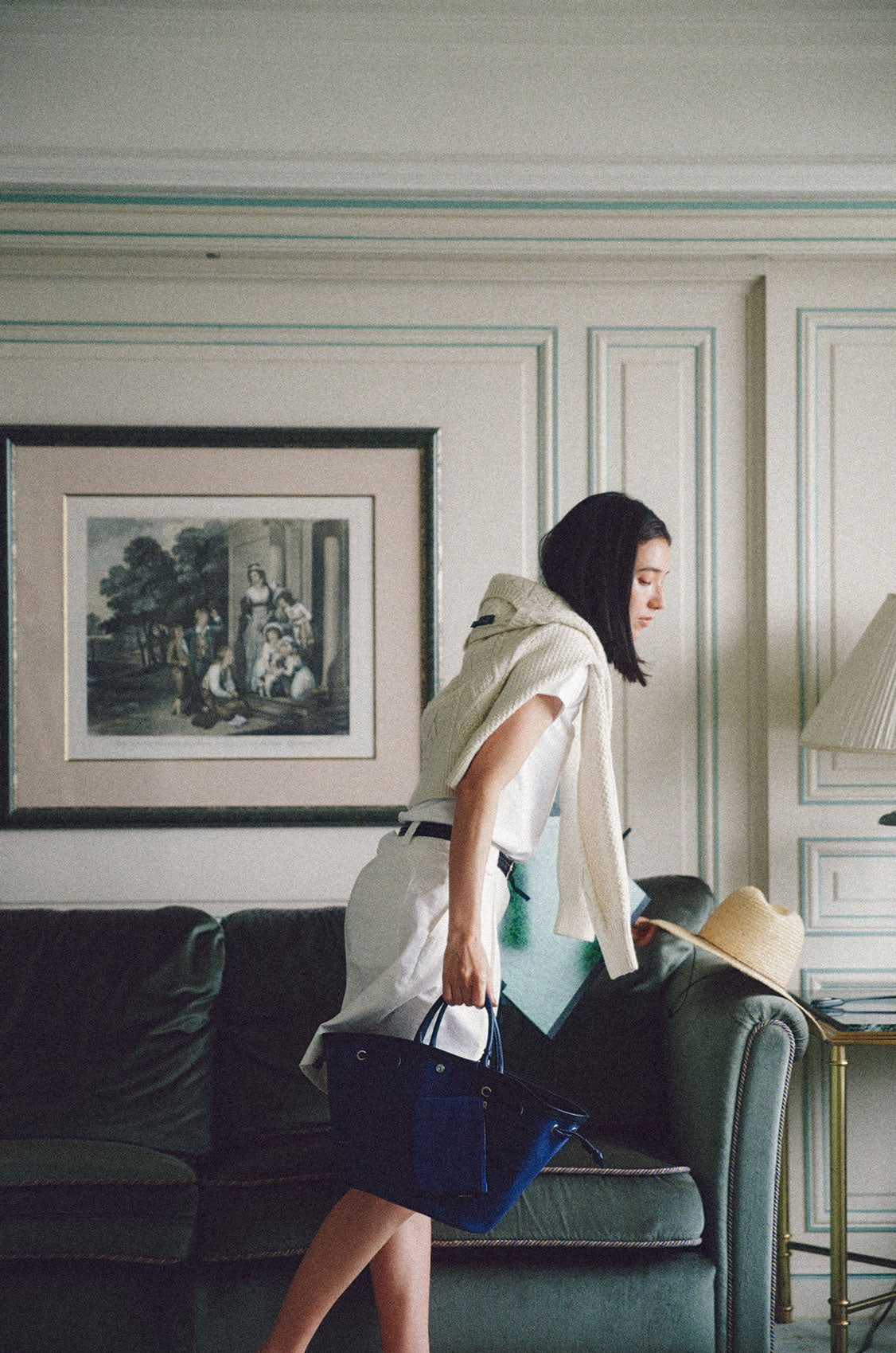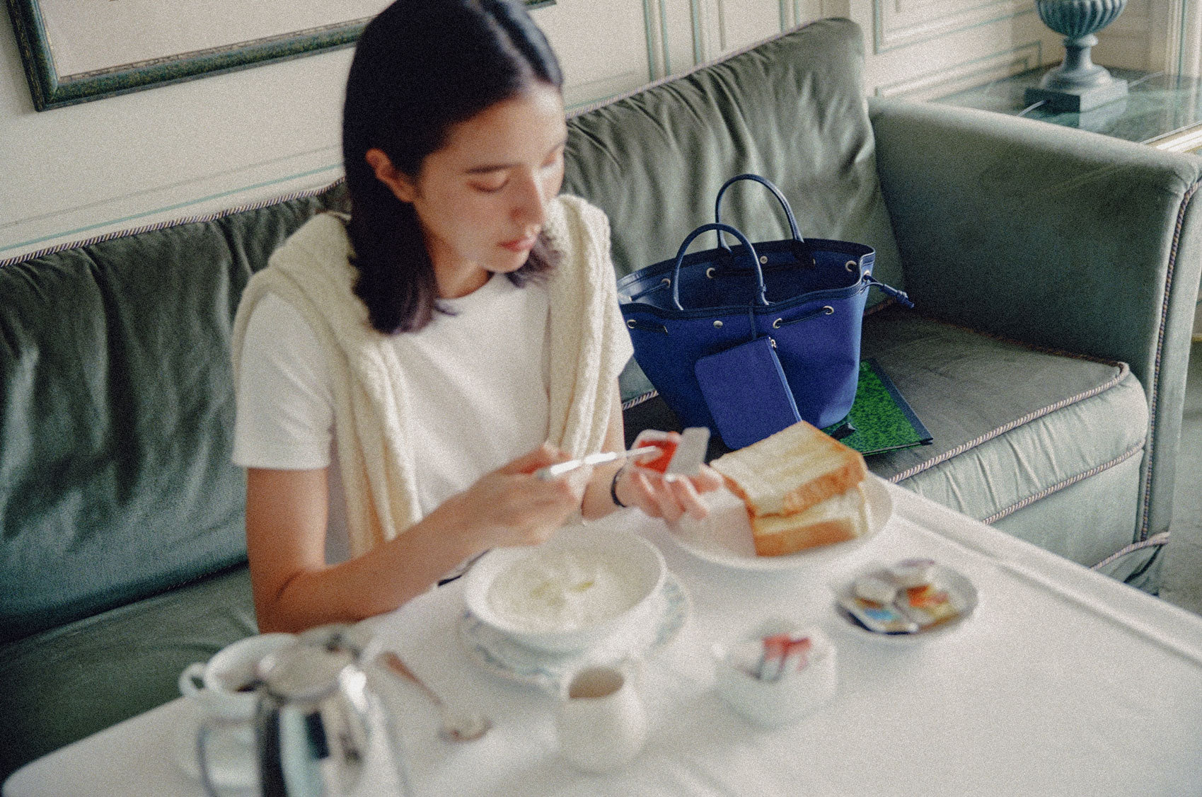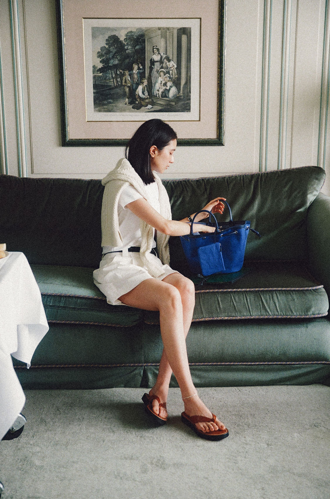 綿キャンバス素材に柔らかい羊革を加えて仕上げたショッパーバッグです。 coquilleはフランス語で貝殻を意味し、上部の革ストリングで自由に形の調節ができるカバンの特徴を盛り込んでいます。 持ち物が多いときは、広く広げてショッパーバッグ状に、あるいはストリングを締めてバケットバッグ状に使用できます。 中央にロゴスナップボタンが付いていてロックが可能です。 また、取り外しが可能なポーチを一緒に構成し、手がよく行く小さな持ち物の保管にも容易です。 柔らかく丸いストラップは所持品をたくさん入れても楽なグリップ感を提供し、丈夫な羊革で製作された下段はカバンを安定的に支えてくれます。