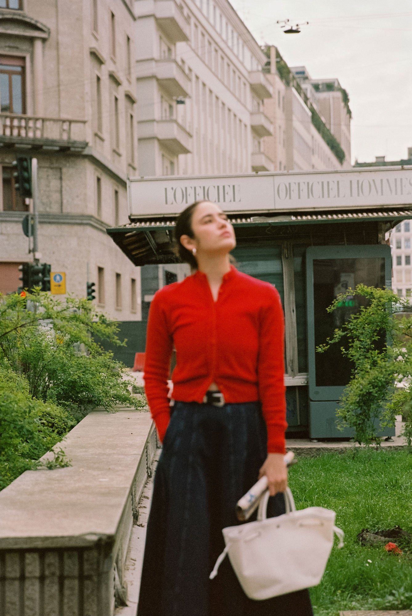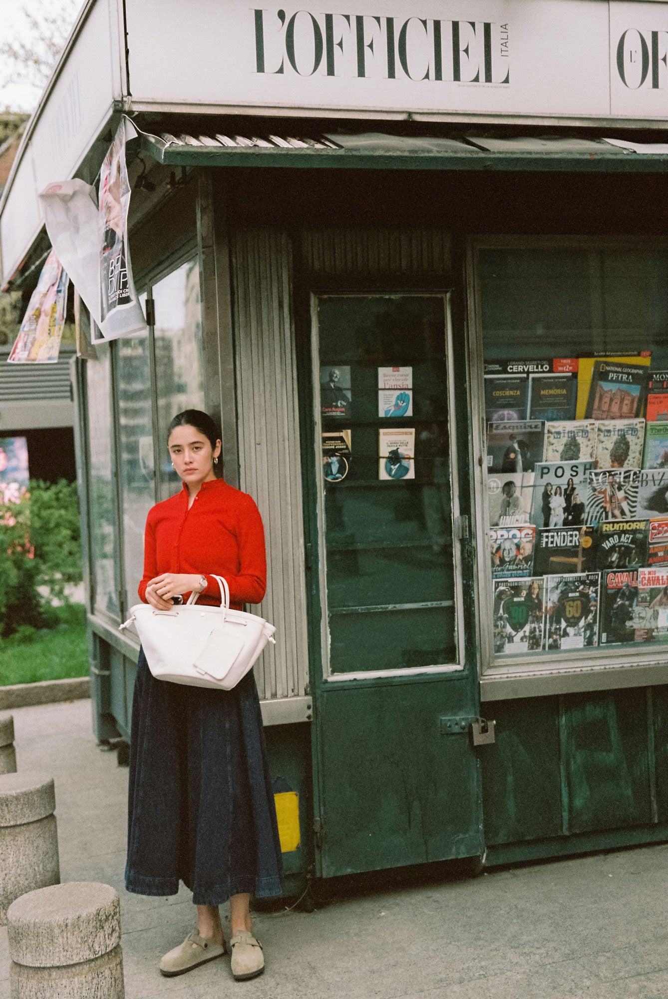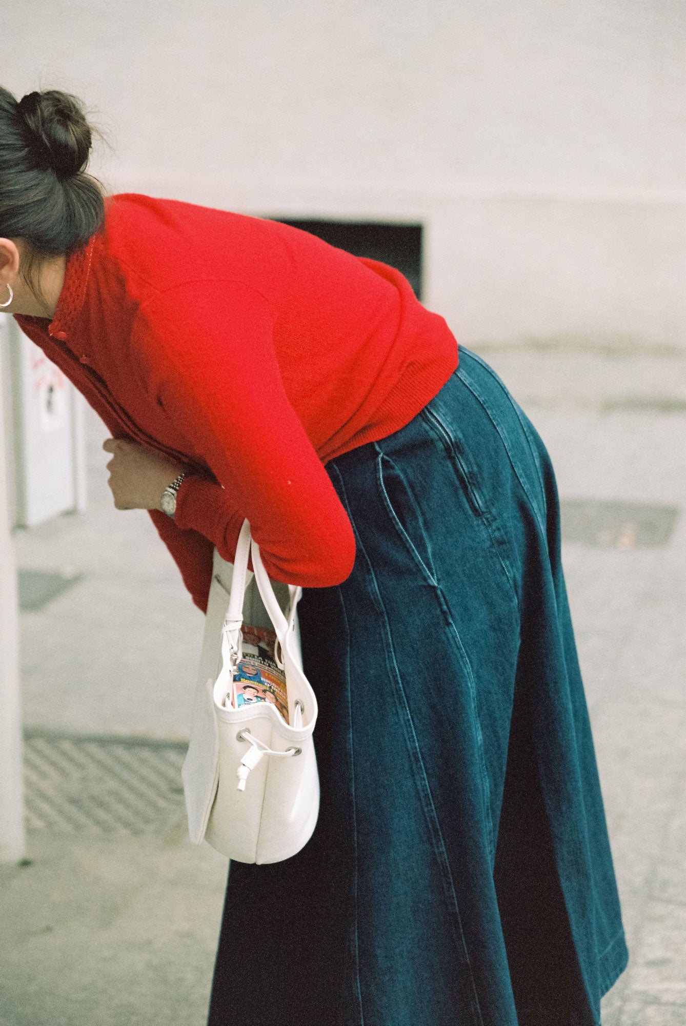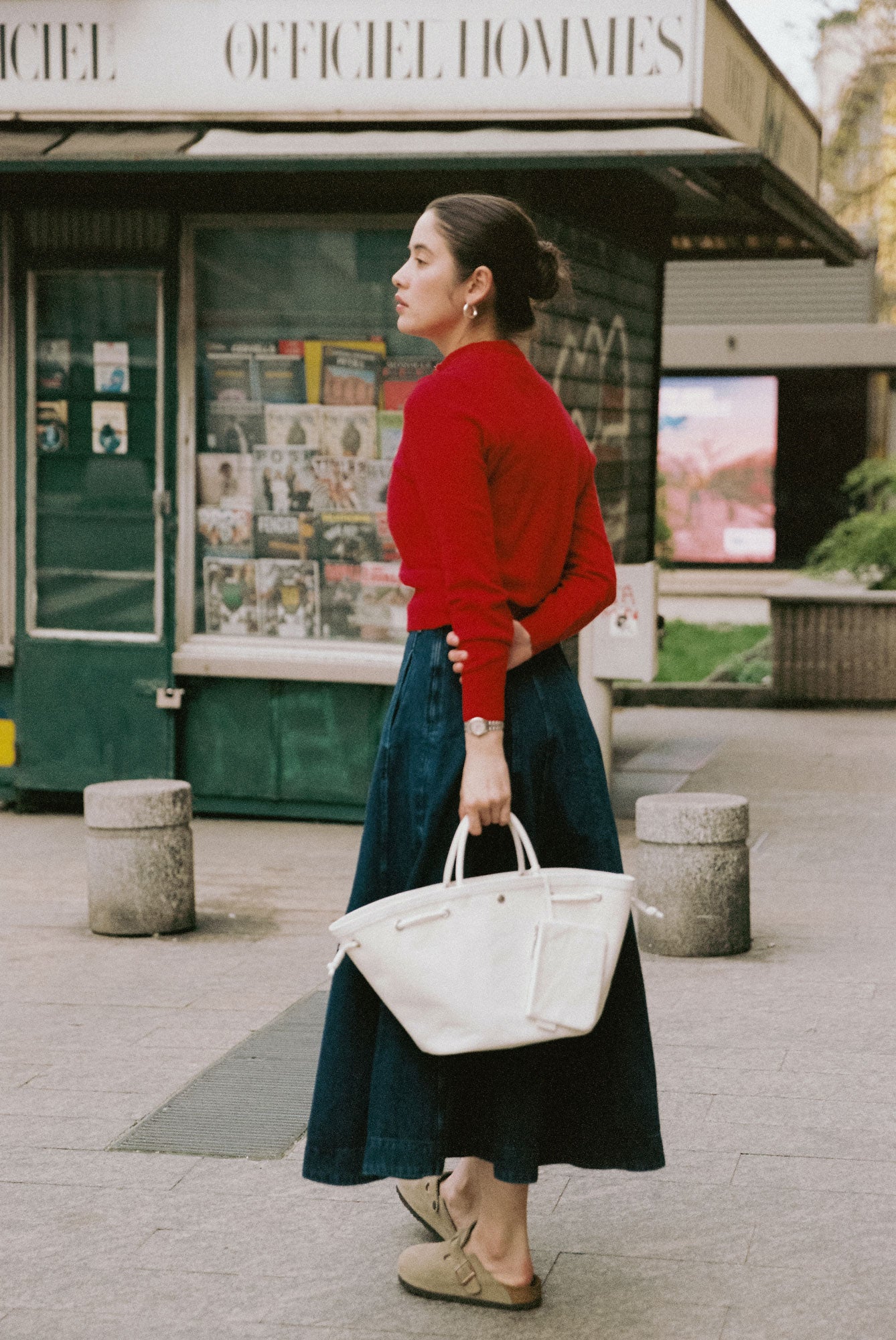 綿キャンバス素材に柔らかい羊革を加えて仕上げたショッパーバッグです。 coquilleはフランス語で貝殻を意味し、上部の革ストリングで自由に形の調節ができるカバンの特徴を盛り込んでいます。 持ち物が多いときは、広く広げてショッパーバッグ状に、あるいはストリングを締めてバケットバッグ状に使用できます。 中央にロゴスナップボタンが付いていてロックが可能です。 また、取り外しが可能なポーチを一緒に構成し、手がよく行く小さな持ち物の保管にも容易です。 柔らかく丸いストラップは所持品をたくさん入れても楽なグリップ感を提供し、丈夫な羊革で製作された下段はカバンを安定的に支えてくれます。