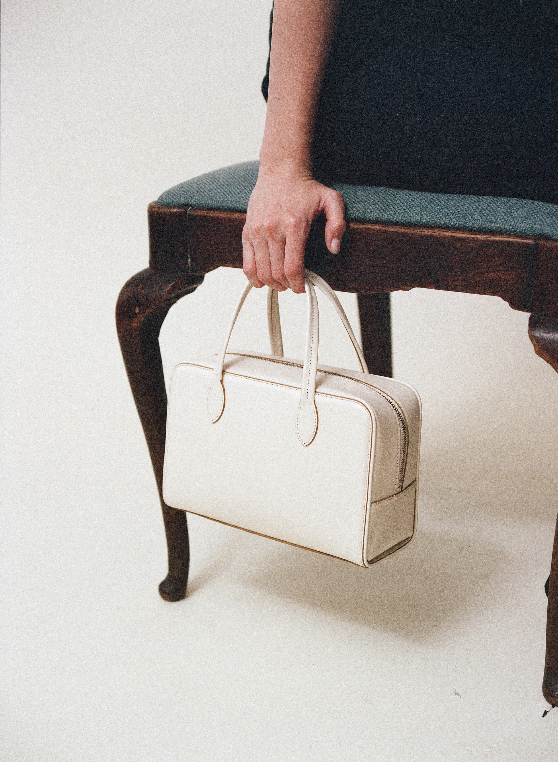 ロケバッグはクラシックな形に繊細な装飾を加え、トゥティエならではの色に仕上げました。ほのかな光を含んだオイル仕上げ革とタックロック金具でしっかりと閉まるジッパークロージング、バッグを丈夫に支えてくれる4つの足飾りで仕上げたロケバッグは安定した形でどの着装にも簡単にマッチングします。 厚手のリネンコットン裏地を使用して耐久性を高め、広く開くファスナーでゆったりとした収納力を誇ります。