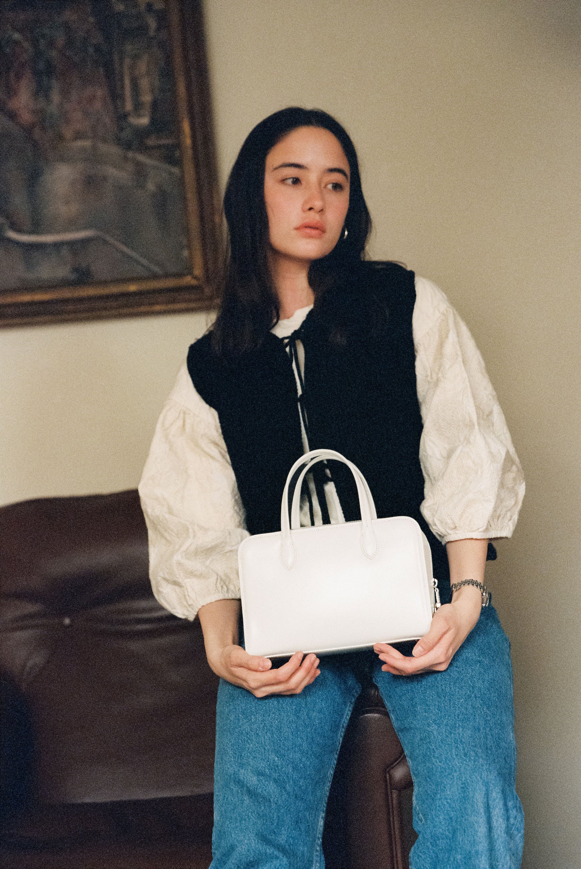 ロケバッグはクラシックな形に繊細な装飾を加え、トゥティエならではの色に仕上げました。ほのかな光を含んだオイル仕上げ革とタックロック金具でしっかりと閉まるジッパークロージング、バッグを丈夫に支えてくれる4つの足飾りで仕上げたロケバッグは安定した形でどの着装にも簡単にマッチングします。 厚手のリネンコットン裏地を使用して耐久性を高め、広く開くファスナーでゆったりとした収納力を誇ります。