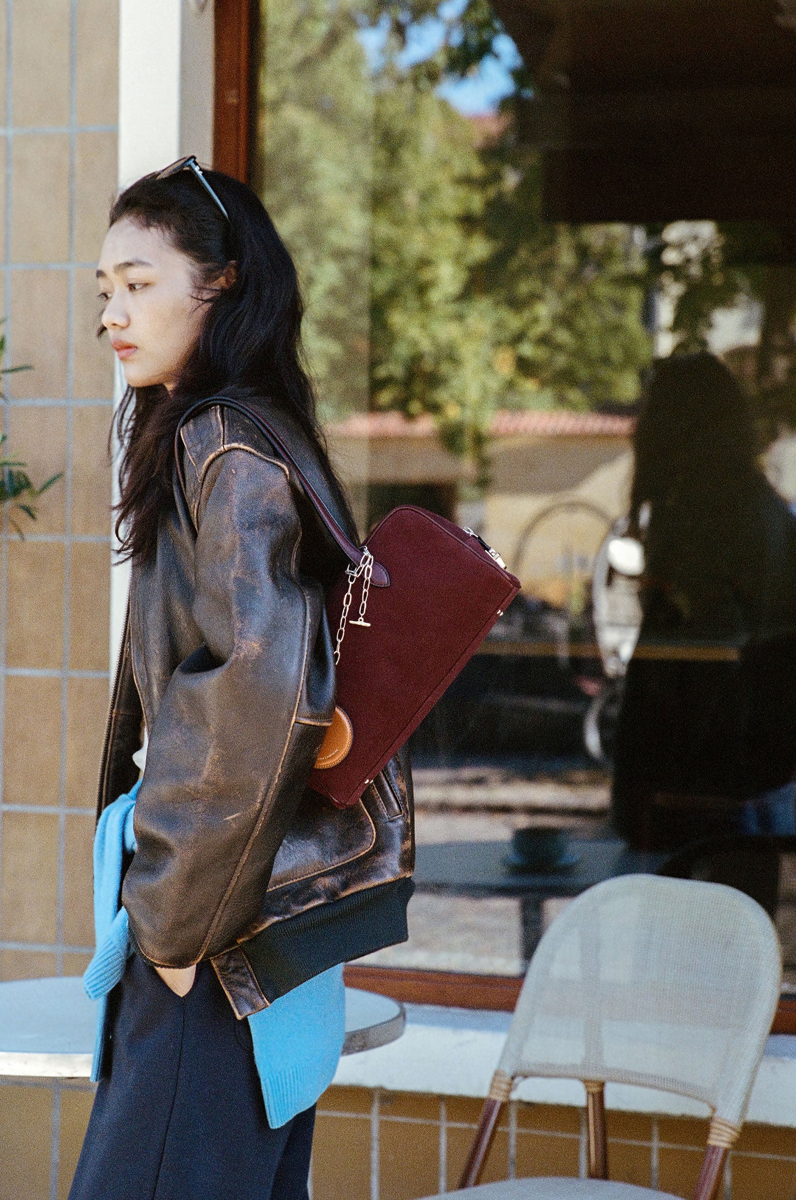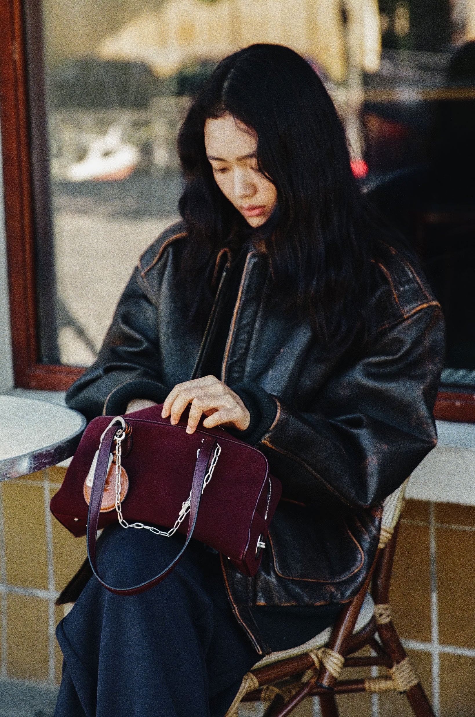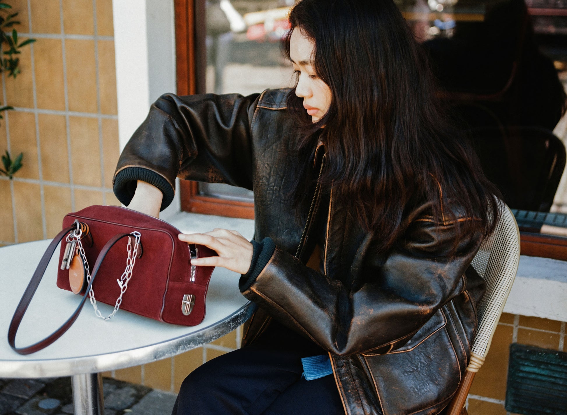 ロケバッグ ロングストラップバージョンに、コンパクトなスモールサイズが新たに加わりました。 ゴートスエード素材は光の加減によって表情が変わる上品な色合いが魅力で、ソフトな仕上げによりショルダーにかけた際には自然なフォルムを描き、快適な使い心地を提供します。 ストラップ部分にはカウレザーを使用し耐久性を高め、縁を囲むレザートリミングがバッグ全体のシルエットをしっかりと保ちます。 ライニングには厚手のリネンコットンを採用し、大きく開くジッパーにより収納力も十分。さらに約350gという軽さで、日常使いに心地よさを添えます。