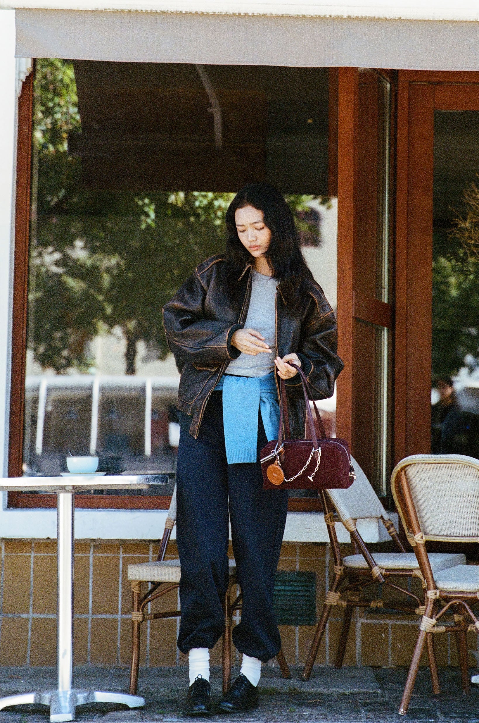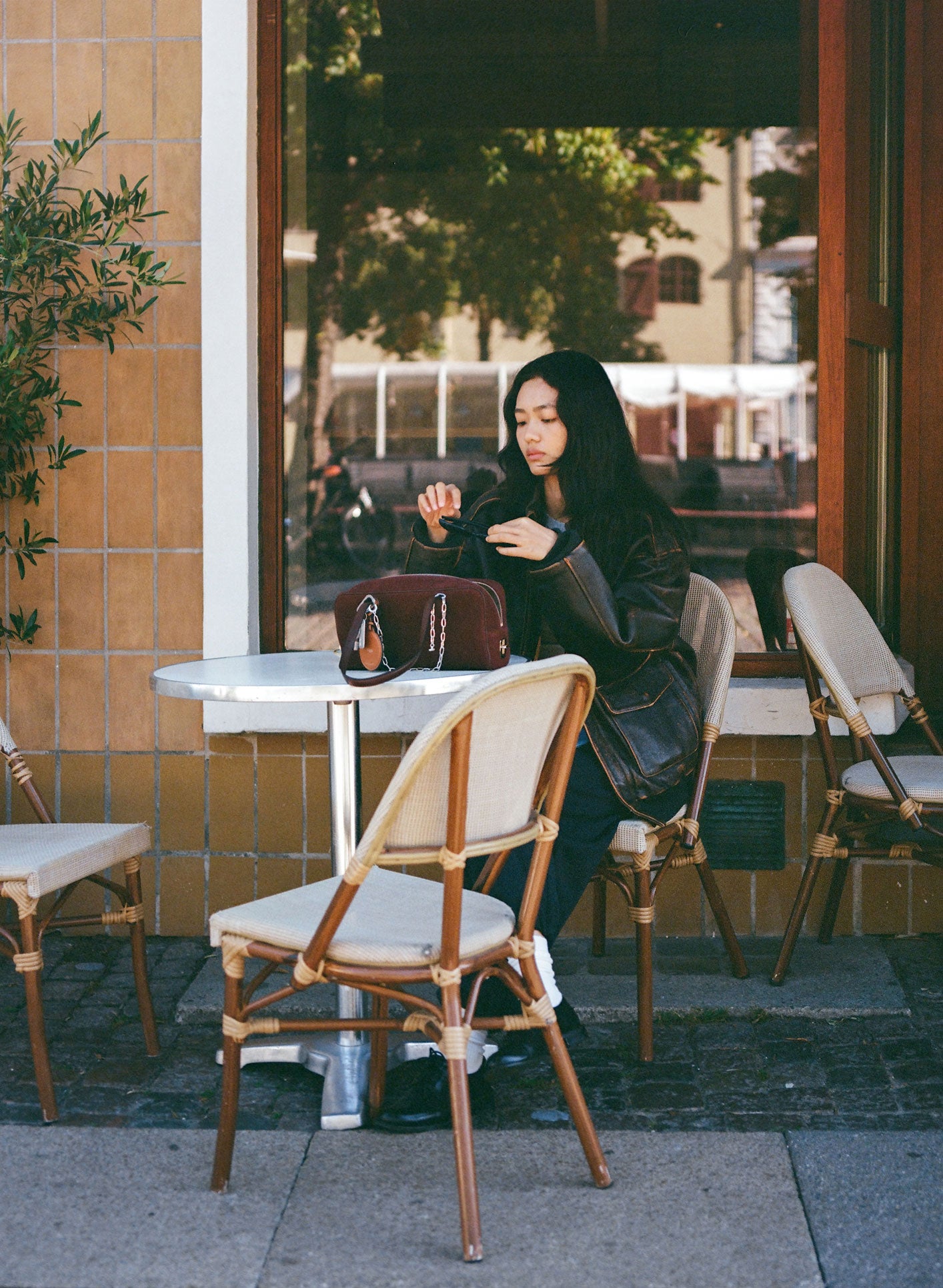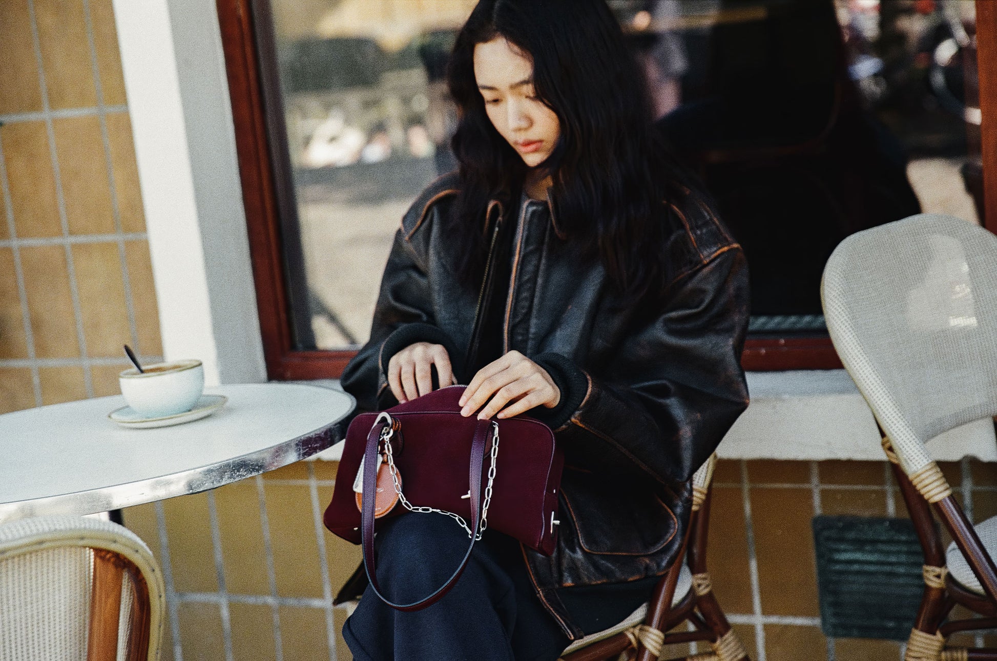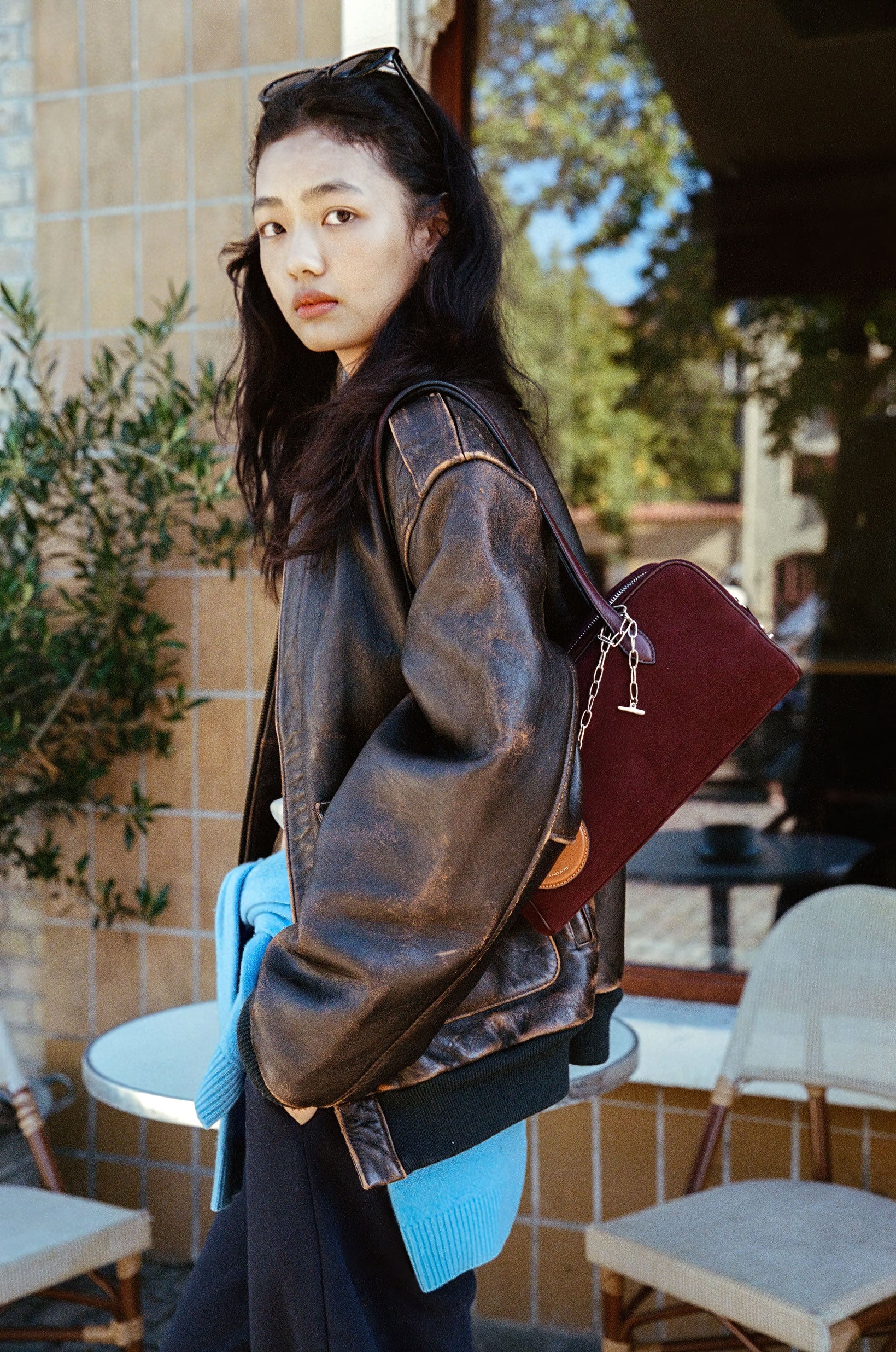 ロケバッグ ロングストラップバージョンに、コンパクトなスモールサイズが新たに加わりました。 ゴートスエード素材は光の加減によって表情が変わる上品な色合いが魅力で、ソフトな仕上げによりショルダーにかけた際には自然なフォルムを描き、快適な使い心地を提供します。 ストラップ部分にはカウレザーを使用し耐久性を高め、縁を囲むレザートリミングがバッグ全体のシルエットをしっかりと保ちます。 ライニングには厚手のリネンコットンを採用し、大きく開くジッパーにより収納力も十分。さらに約350gという軽さで、日常使いに心地よさを添えます。