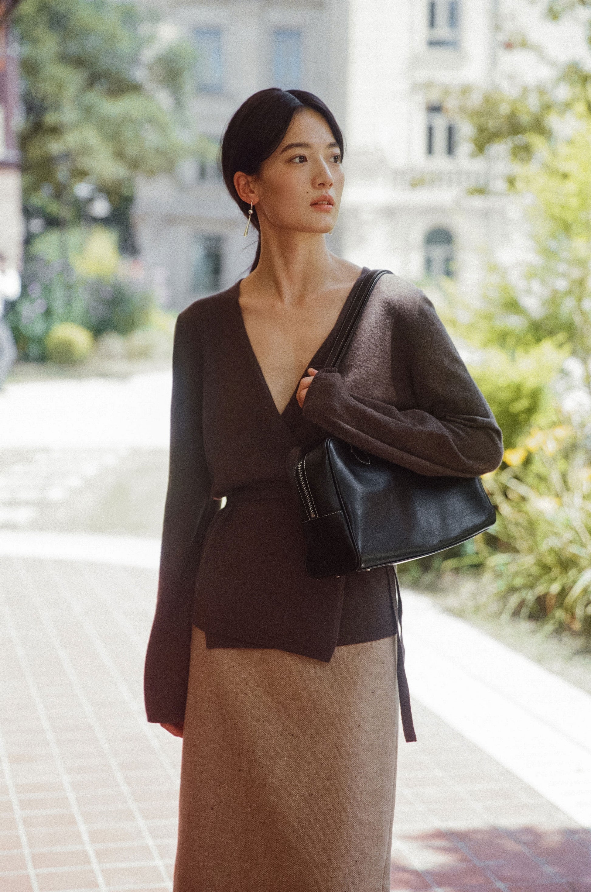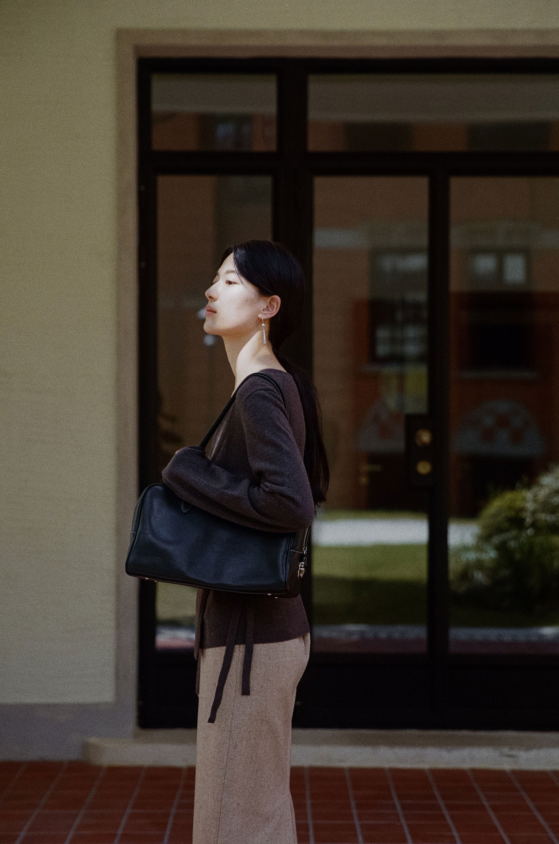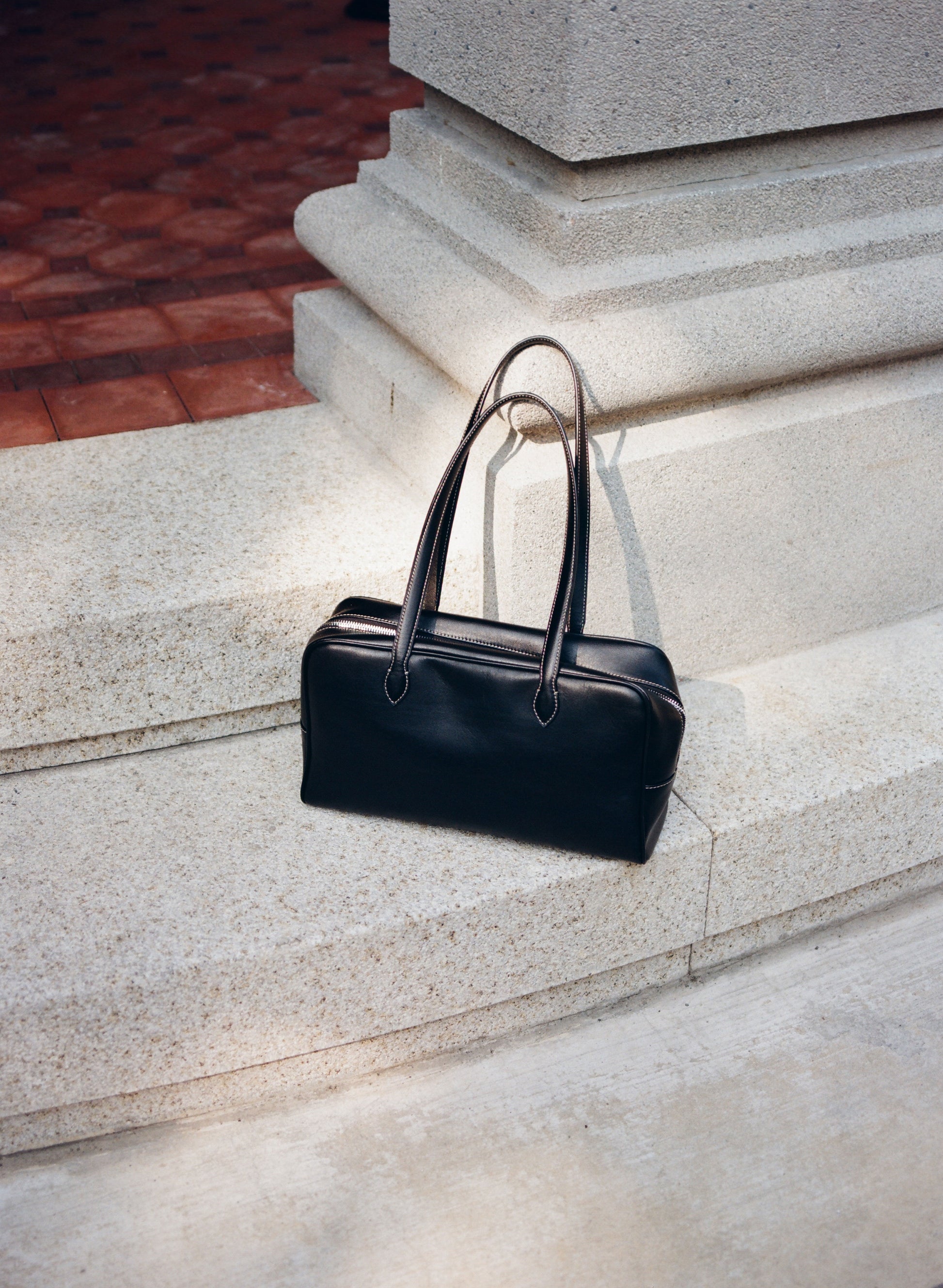 ロケバッグ オリジナルサイズのロングストラップバージョンは、ショルダーでの着用が可能で、さらに実用的です。控えめな光沢を持つオイル仕上げのレザーと、頑丈なターンロックジッパークロージング、バッグを保護する4つの底鋲が加わり、安定した形状を保ちながら、さまざまなスタイルに合わせやすいデザインです。明るいカラーのステッチで丁寧に仕上げられており、厚手のリネンコットンの裏地を使用して耐久性を強化しています。ジッパーは大きく開くため収納力も抜群で、ロングストラップにより、冬のアウターの上からでも快適にショルダーとして着用できるのが特徴です。
