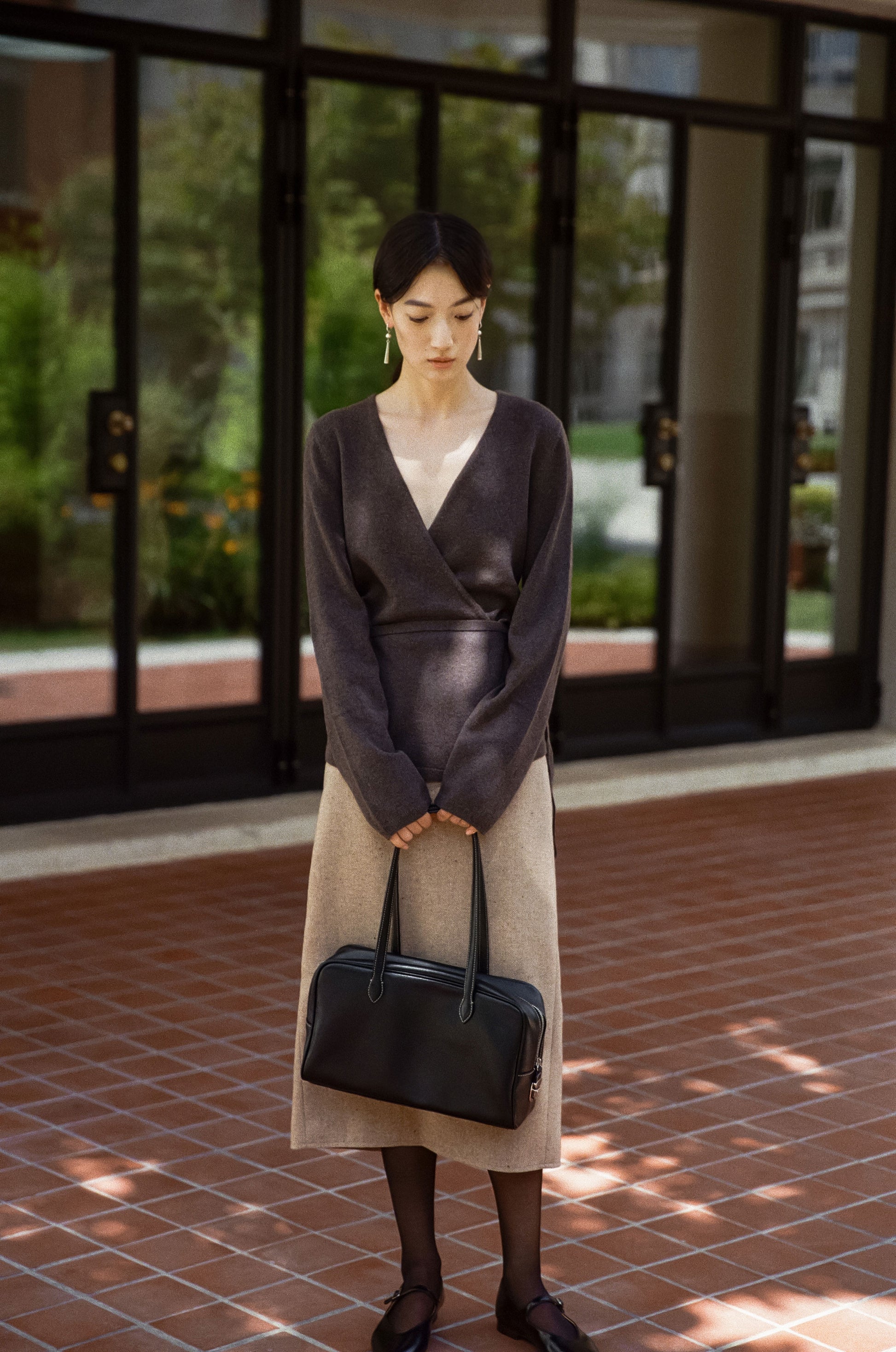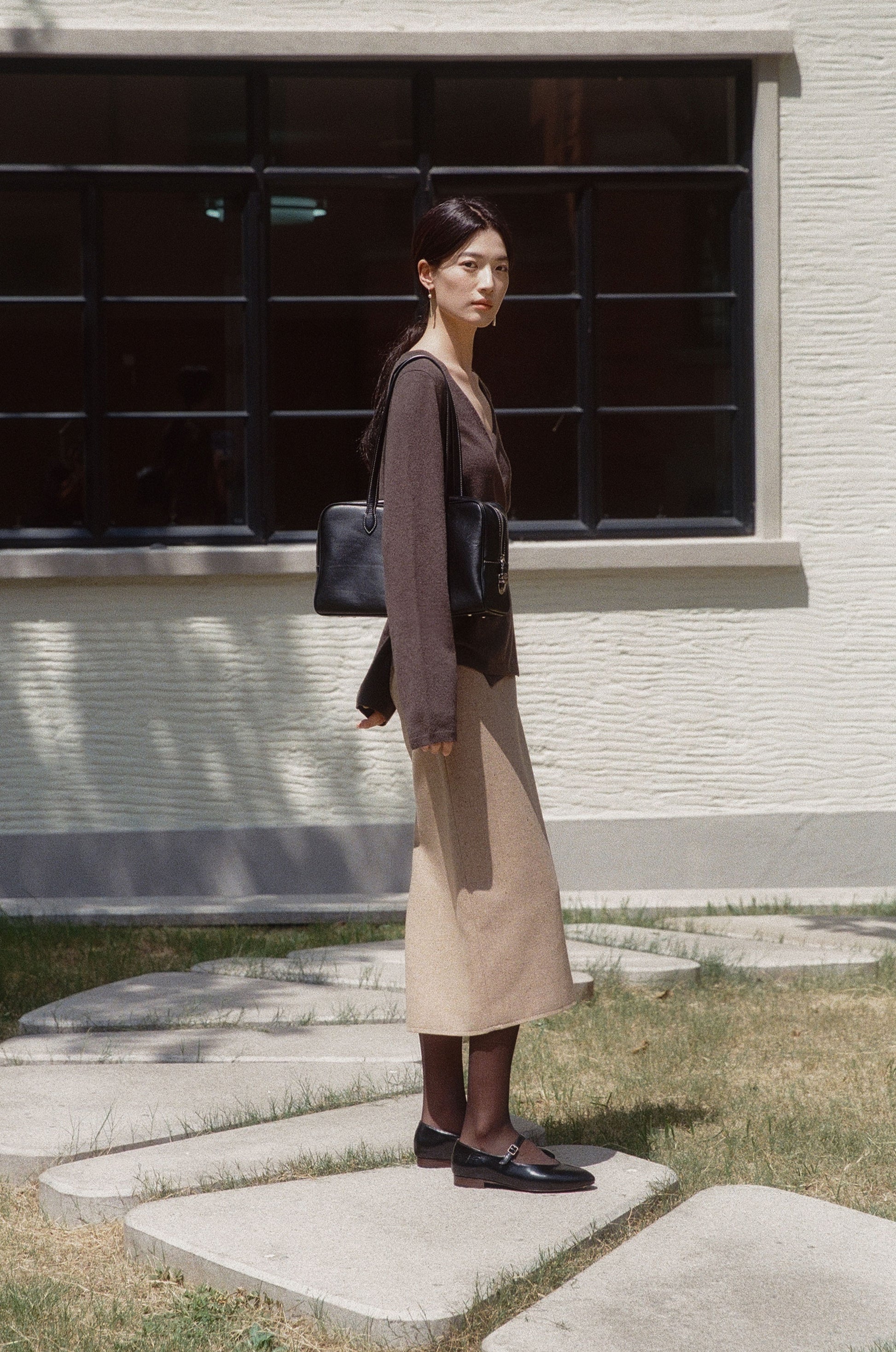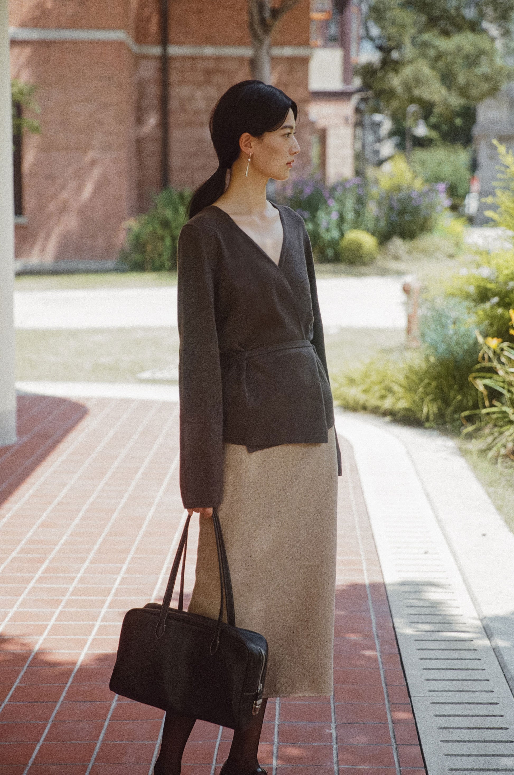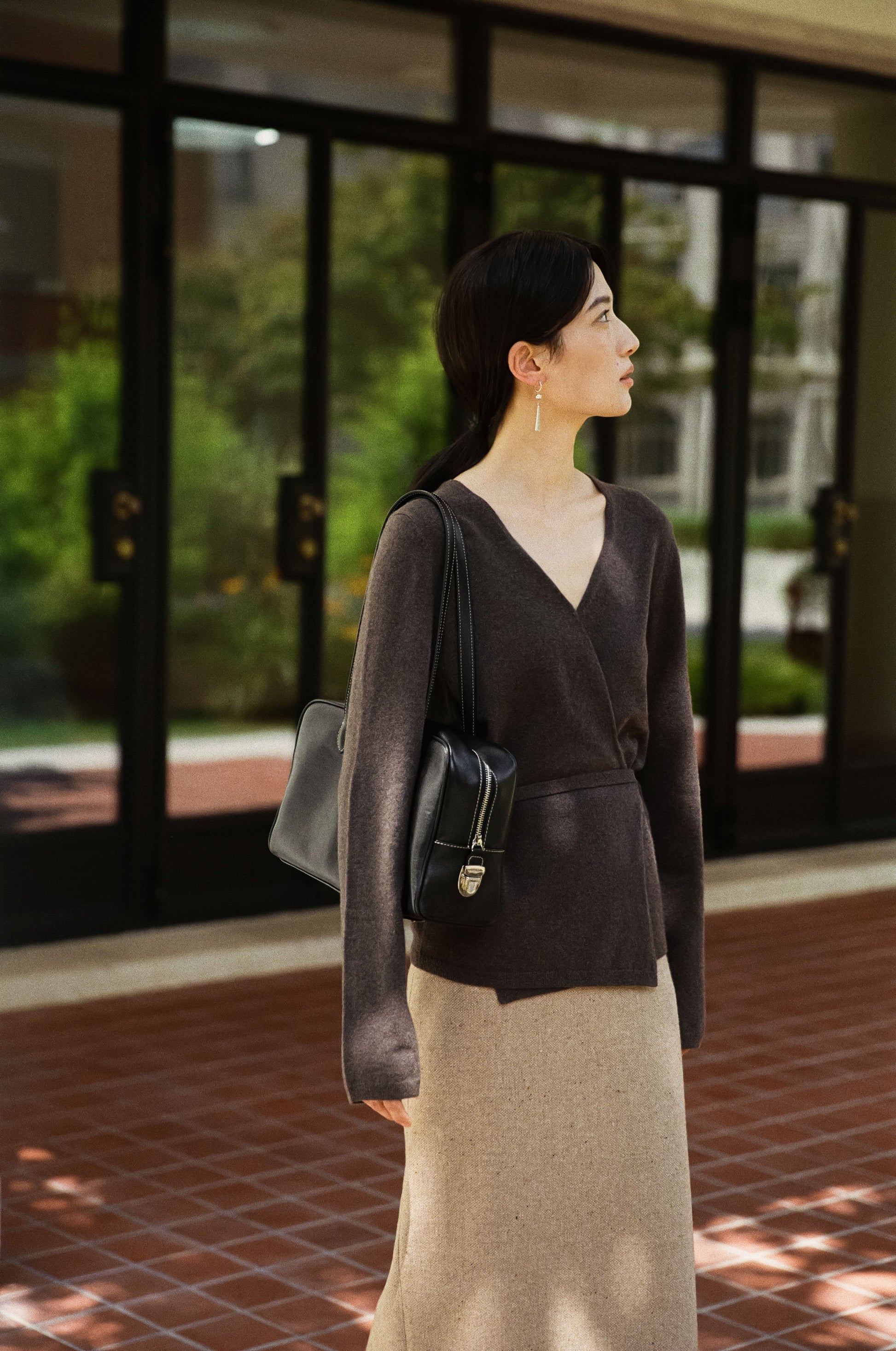 ロケバッグ オリジナルサイズのロングストラップバージョンは、ショルダーでの着用が可能で、さらに実用的です。控えめな光沢を持つオイル仕上げのレザーと、頑丈なターンロックジッパークロージング、バッグを保護する4つの底鋲が加わり、安定した形状を保ちながら、さまざまなスタイルに合わせやすいデザインです。明るいカラーのステッチで丁寧に仕上げられており、厚手のリネンコットンの裏地を使用して耐久性を強化しています。ジッパーは大きく開くため収納力も抜群で、ロングストラップにより、冬のアウターの上からでも快適にショルダーとして着用できるのが特徴です。