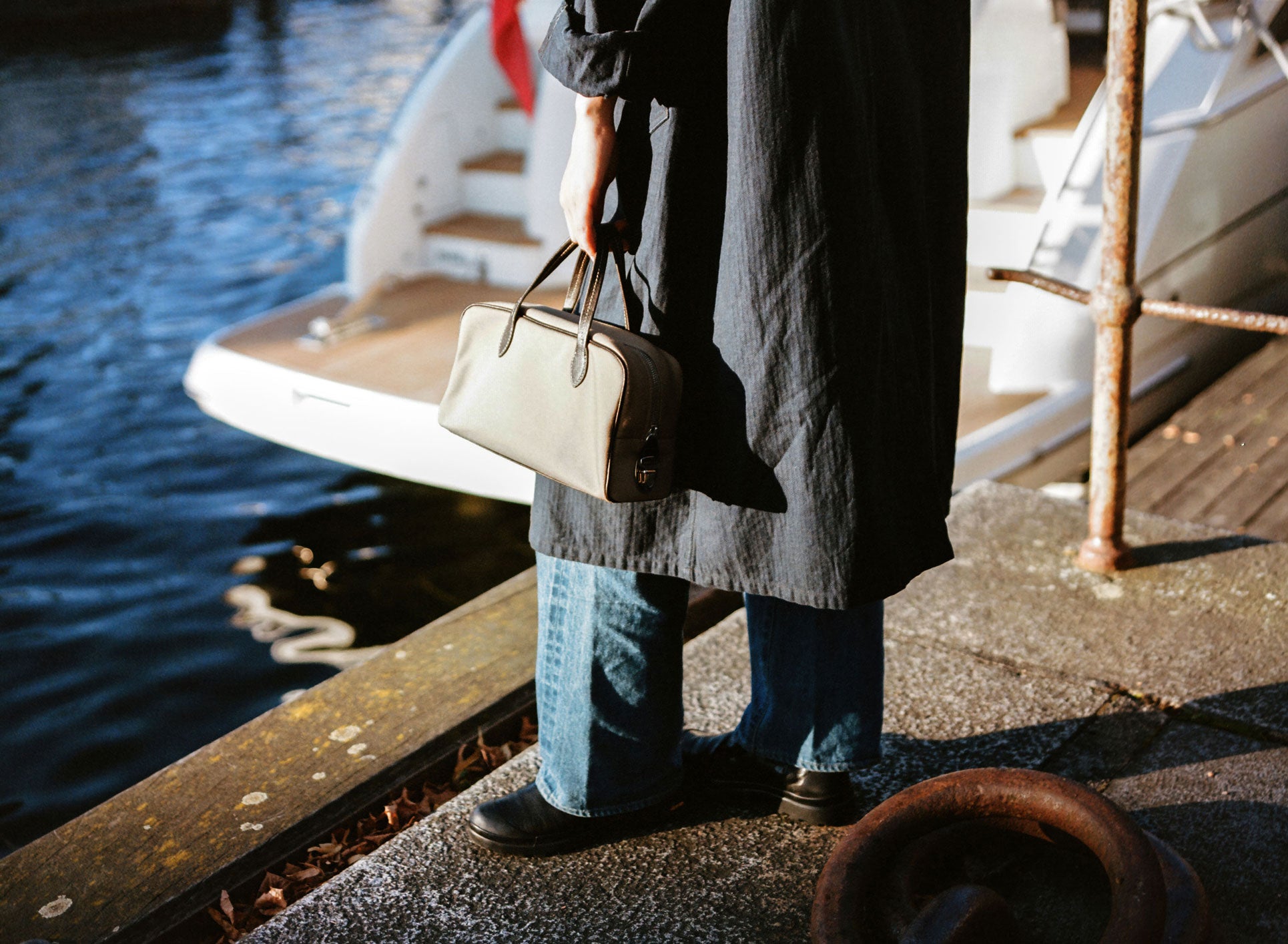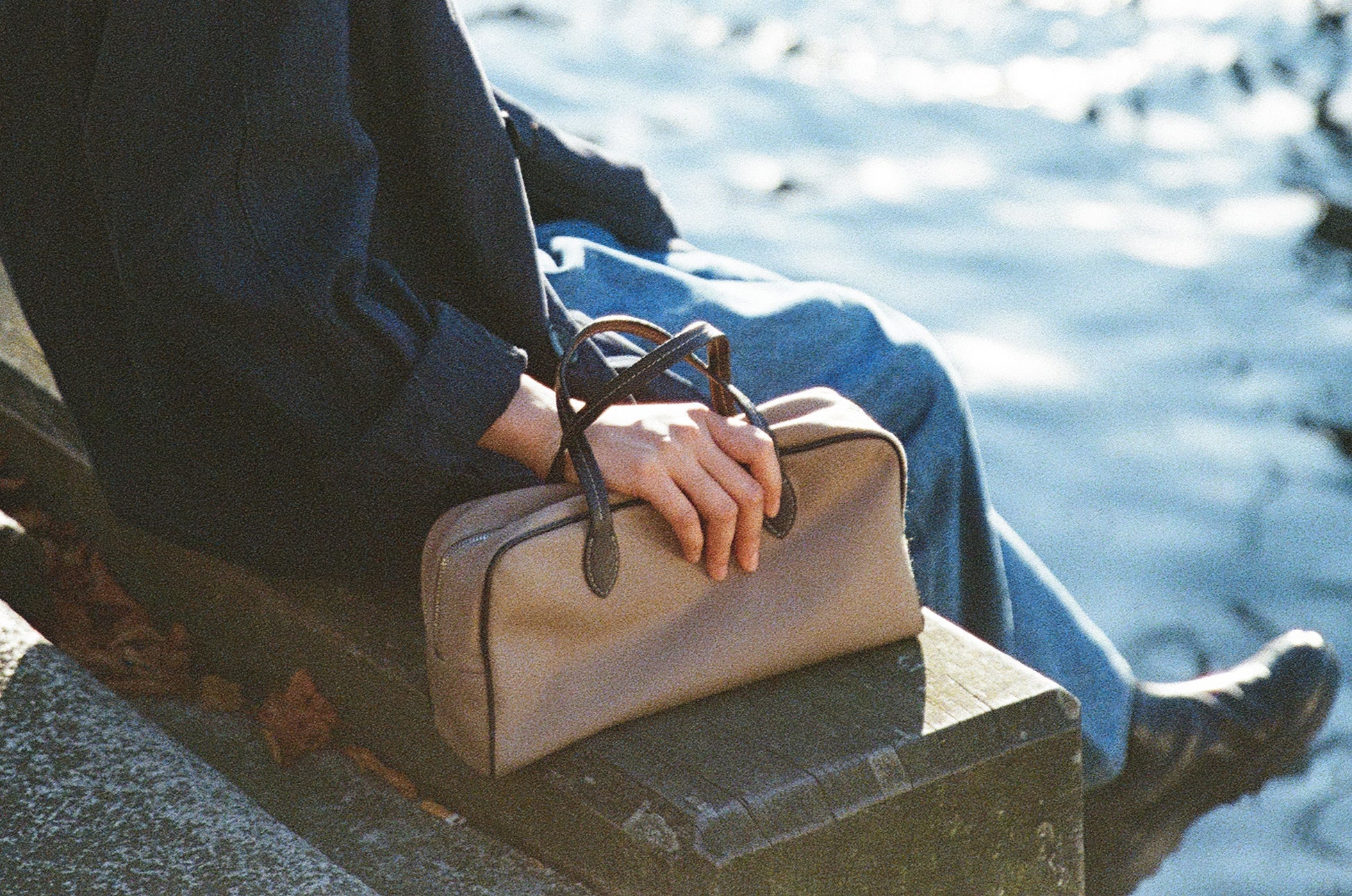 TOUT Y ESTのシグネチャーアイテムであるロケバッグを、コットンのように柔らかな風合いを持つキャンバス素材でご紹介します。ソフトな仕上げにより着用時に自然な形が生まれ、快適な使い心地を提供します。ストラップとバッグの底面には牛革を使用して耐久性を高め、縁を囲むレザートリムがフォルムを安定して保ちます。汚れに強く、柔らかなコットンの質感を活かしたキャンバス素材を採用しているため、季節を問わず気軽にお使いいただけます。裏地には厚手のリネンコットンを使用。大きく開くジッパーで収納力に優れ、わずか320gの軽さも魅力です。
