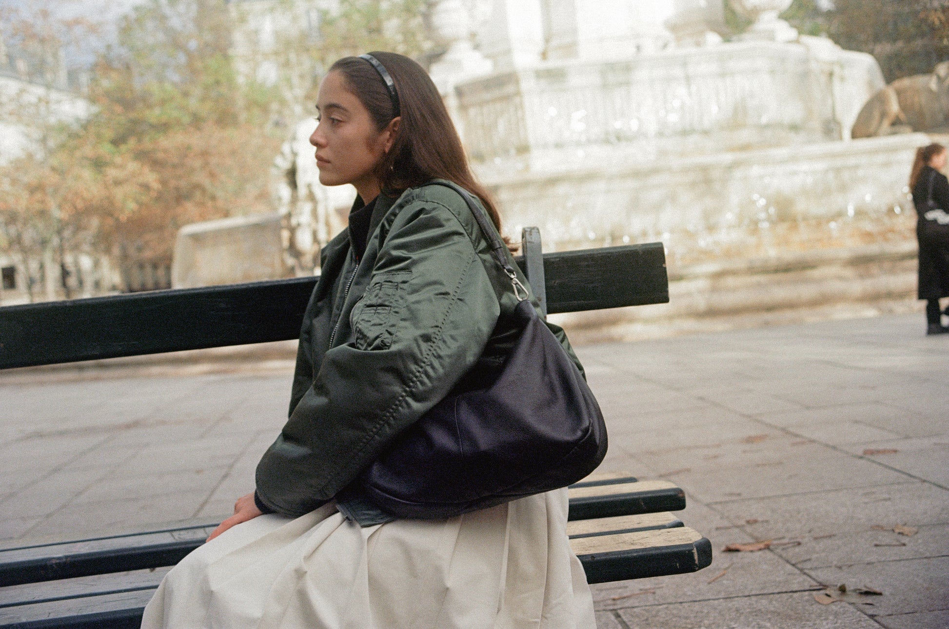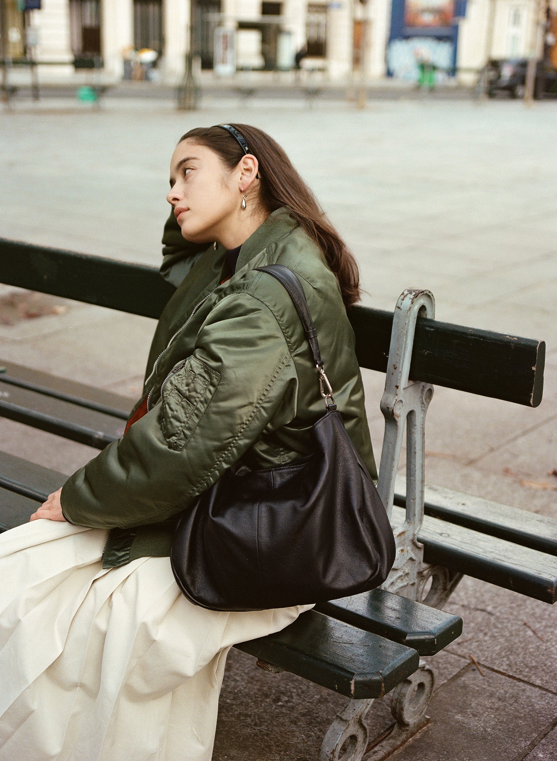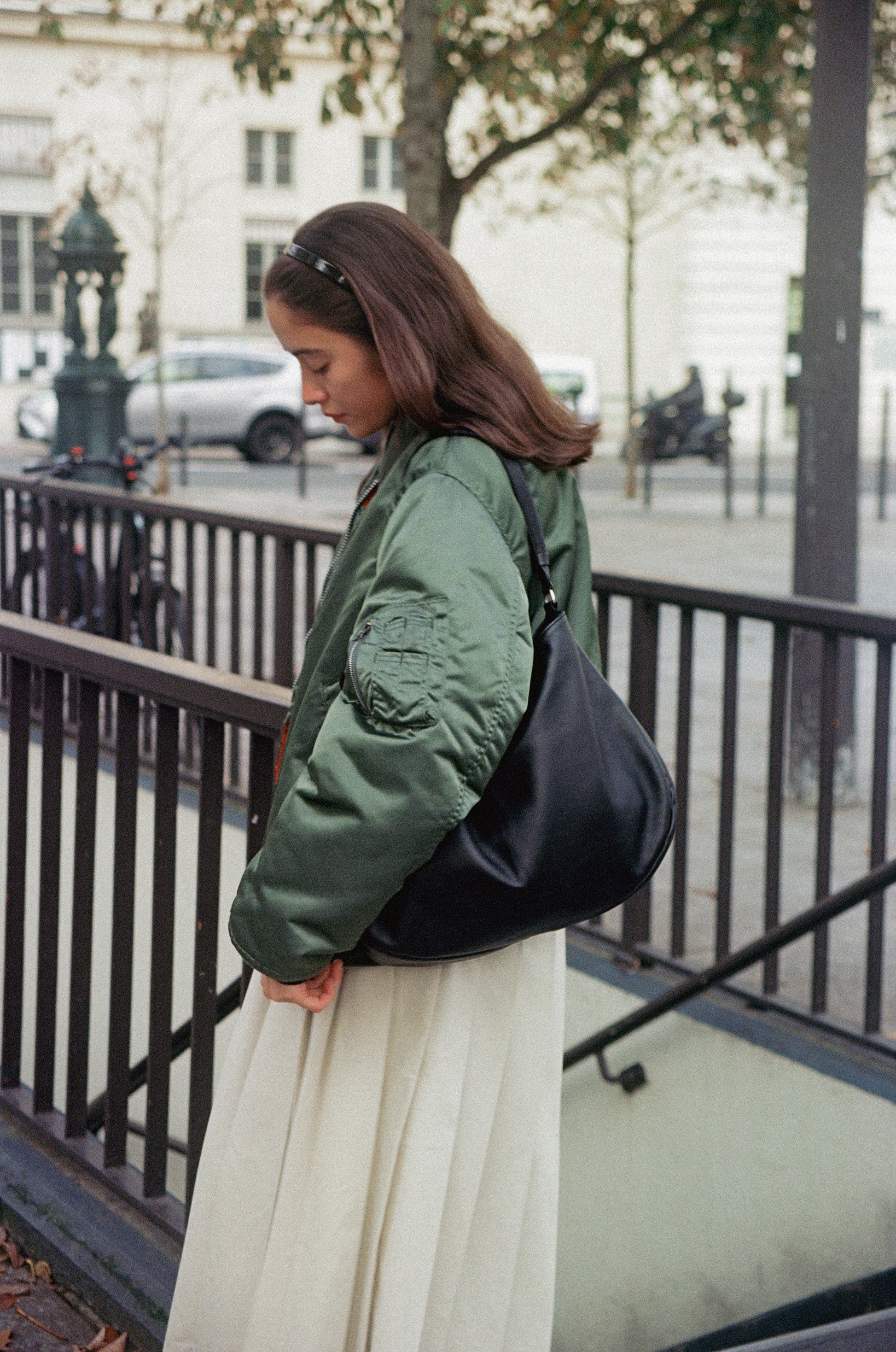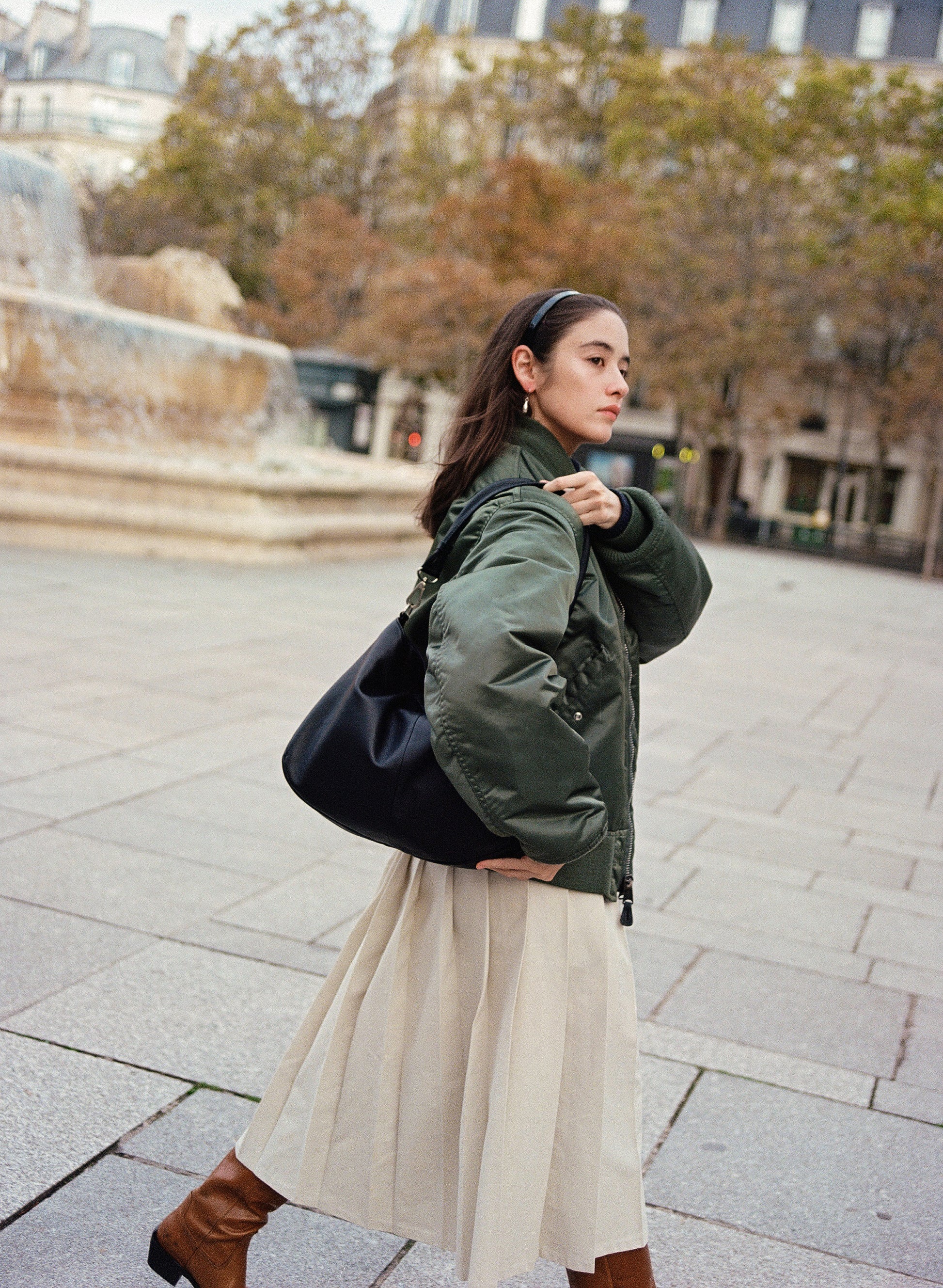小さな船を意味するフランス語の「Nacelle」をイメージしたナセルバックは、柔軟な革で作られたホーボーバッグです。ソフトな肌触りの革は収納する物によって柔軟に形が整えられ、二重に作られたストラップは楽な着用感を提供します。ストラップの一端にはロゴが刻印された輪飾りを使用しています。内部は2間に分かれており、中央パネルにはファスナーを付けて収納ができるようになっています。シンプルな形にバックル飾りと切開ポイントをつけたナセルバックは、軽い軽量感で四季折々どんな服装にもよく似合います。