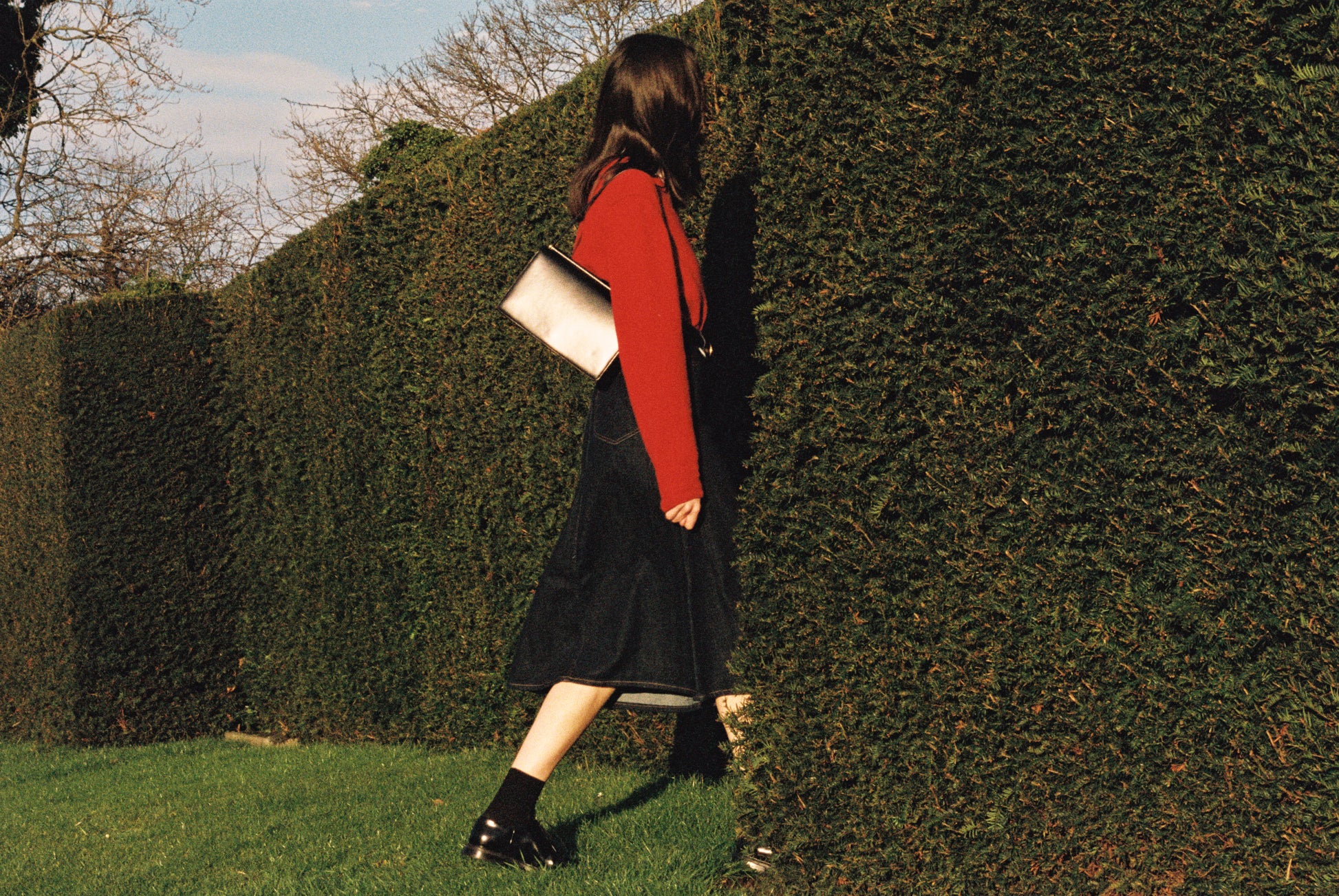 ポメルバッグは四角い端正な形で、トゥティエのシグネチャーモデルの一つです。簡潔なボディの形とトゥティエの象徴的なブラスバー装飾をつなぐ一つのストラップが特徴的です。ショルダーで着用でき、表と裏それぞれにフラップがあるので両方収納が可能です。