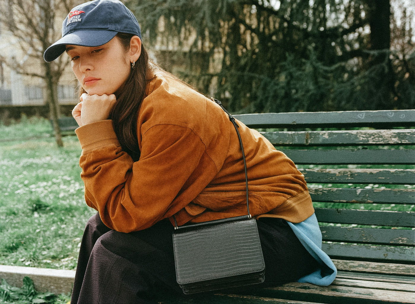 ポメル ミニバッグは四角い端正な形のバッグで、トゥティエのシグネチャーモデルの一つです。簡潔なボディの形とトゥティエの象徴的なブラスバー装飾をつなぐ一つのストラップが特徴的です。長さ調整が可能なストラップでショルダーまたはクロス着用が可能。両側に開くフラップ構造は柔軟な収納力を誇ります。オイル仕上げでほのかな光を含んだ革にブラス装飾を加えたポメル ミニバッグは無駄のないデザインで端正な趣をもっています。